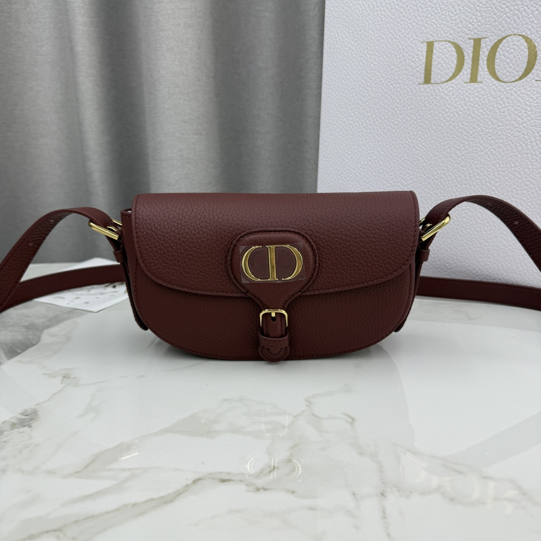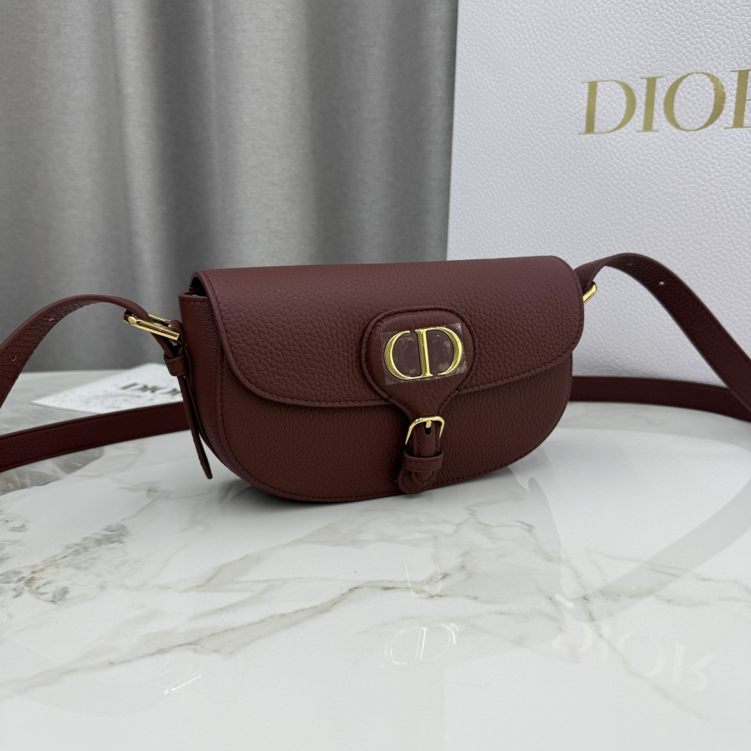 This Dior Bobby East-West handbag is a new product from the early spring 2025 collection. It reinterprets the dumpling bag silhouette with elegant lines and balanced proportions, showcasing Dior's style. Crafted from burgundy grained calfskin, it features vintage gold-tone metal details that enhance its sophistication. The detachable and adjustable shoulder strap can be adjusted with an elegant pin buckle, allowing it to be carried by hand or over the shoulder for a refined daytime or evening look. It can also be worn crossbody for a sporty style.