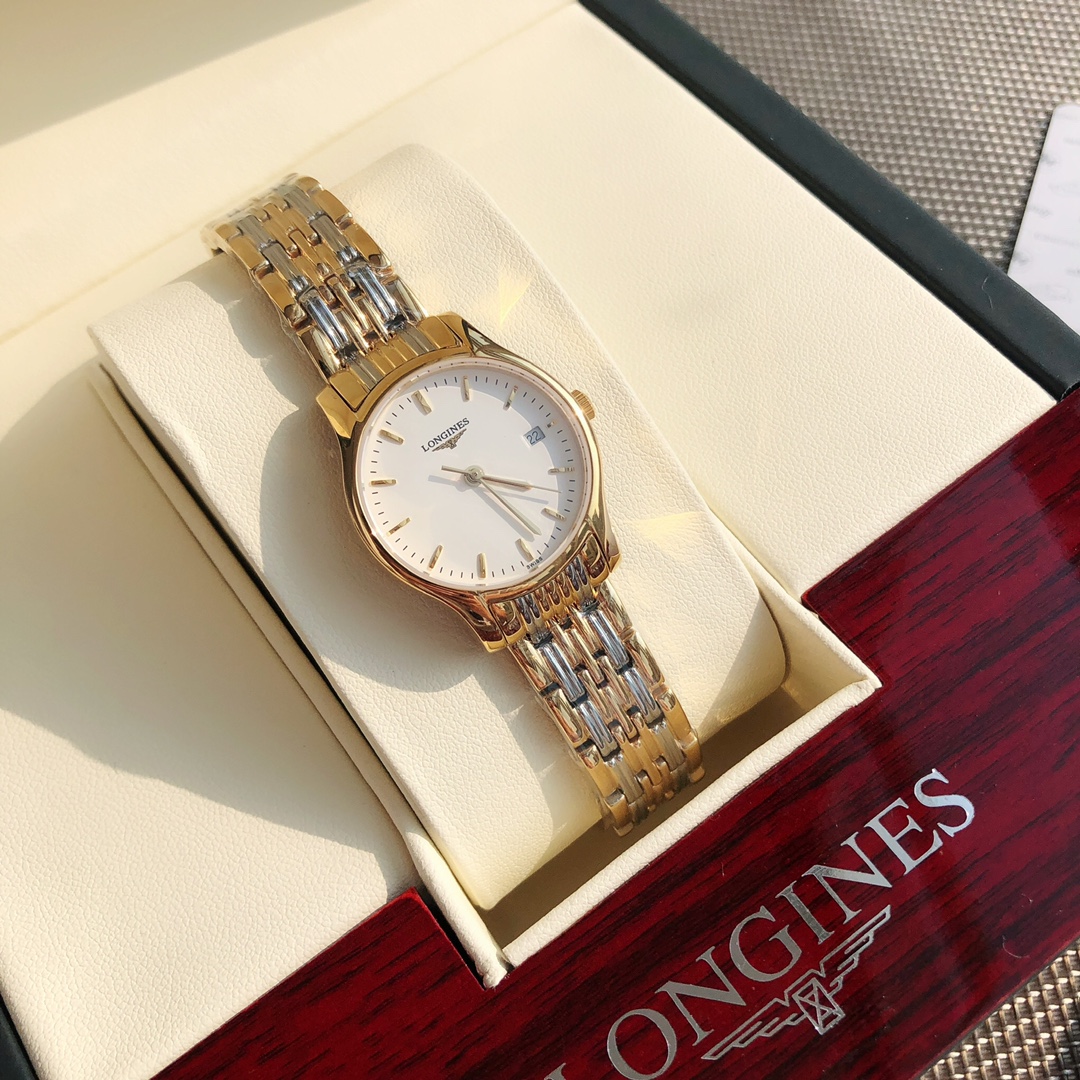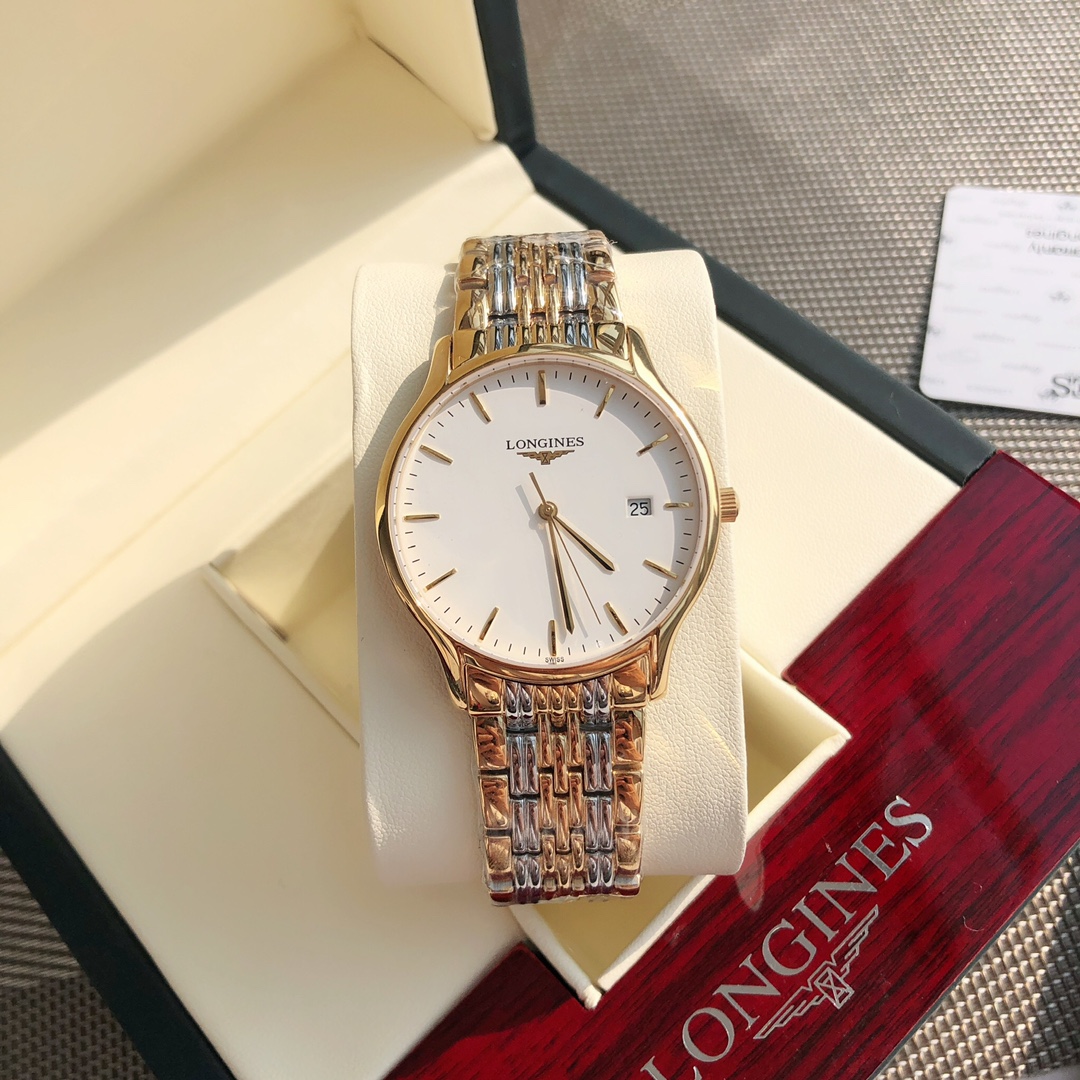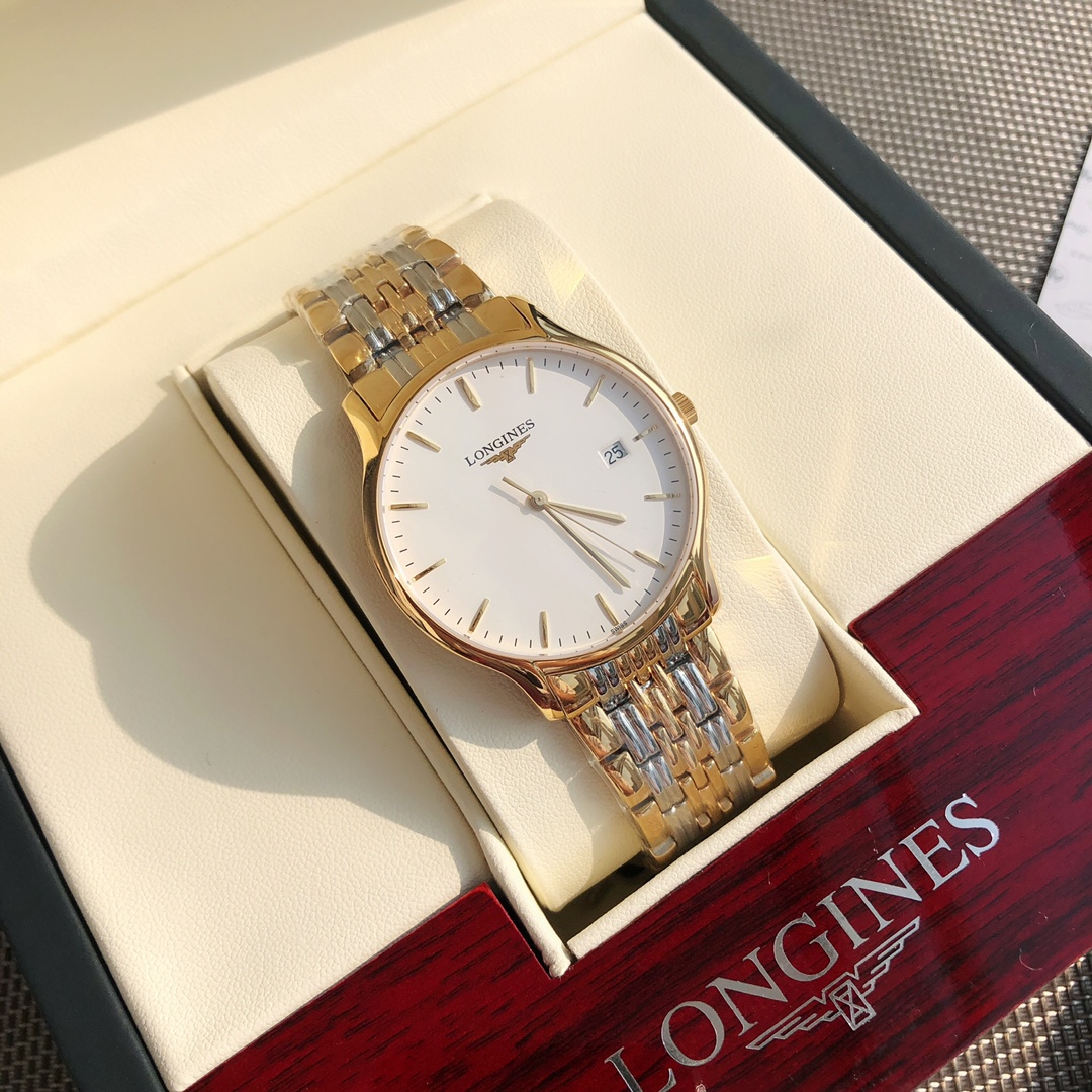 This time, we bring you a couple's Longines watch from the OEM factory channel. The men's version has a 38.5mm diameter, and the women's version has a 25mm diameter, both at the same price! The classic and timeless Longines Elegant Collection—casual and fashionable ladies' quartz watch—embodies the oldest manufacturing aesthetics of the Longines brand, renowned for its winged hourglass emblem. The uniquely designed case, with its ultra-thin silhouette, creates eternal beauty. The men's version features a Swiss Ronda 515 quartz movement, while the women's version features a Swiss Ronda 585 quartz movement. Both are equipped with scratch-resistant sapphire crystal, a triple-fold safety clasp, and a push-button opening mechanism. The simple silver hands add elegance to the entire dial. Original large accessories highlight the essence of the watch, and it comes with a lifetime warranty.