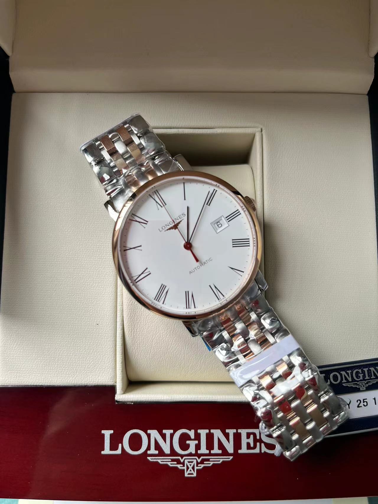 Longines Bo-Ya Men's Series, original ETA-2892 automatic mechanical movement, sapphire crystal, white matte dial surface simple and elegant, inlaid bar-shaped scales paired with black hands clear and eye-catching, the watch dial is very thin and light, this watch is also very versatile, simple design suits any clothing, high cost performance, tag bottom cover with card three codes in one, independent coding one watch one code, comes with full set of packaging.