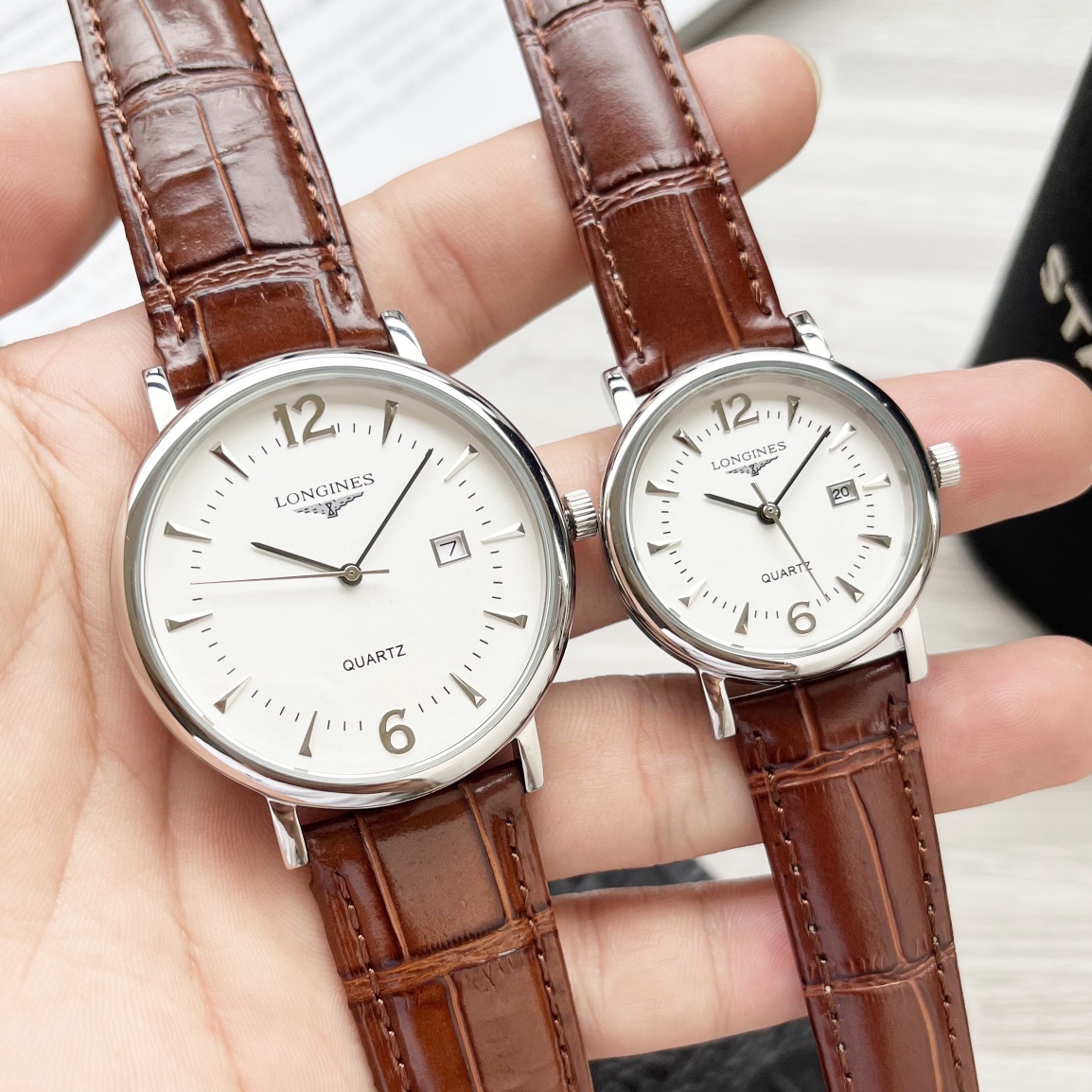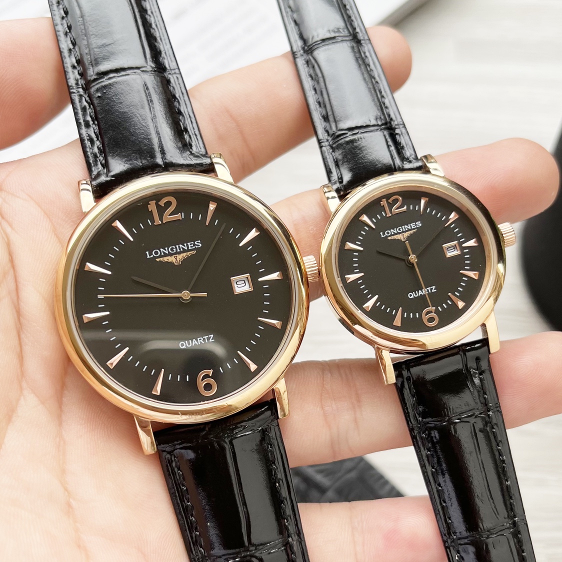 Home • Watch • White case: 190, Gold case: 210, Steel bracelet +20. Longines couples watch, imported quartz movement, mineral glass, 316L steel case. Men's 40mm, women's 30mm, 8mm thick.