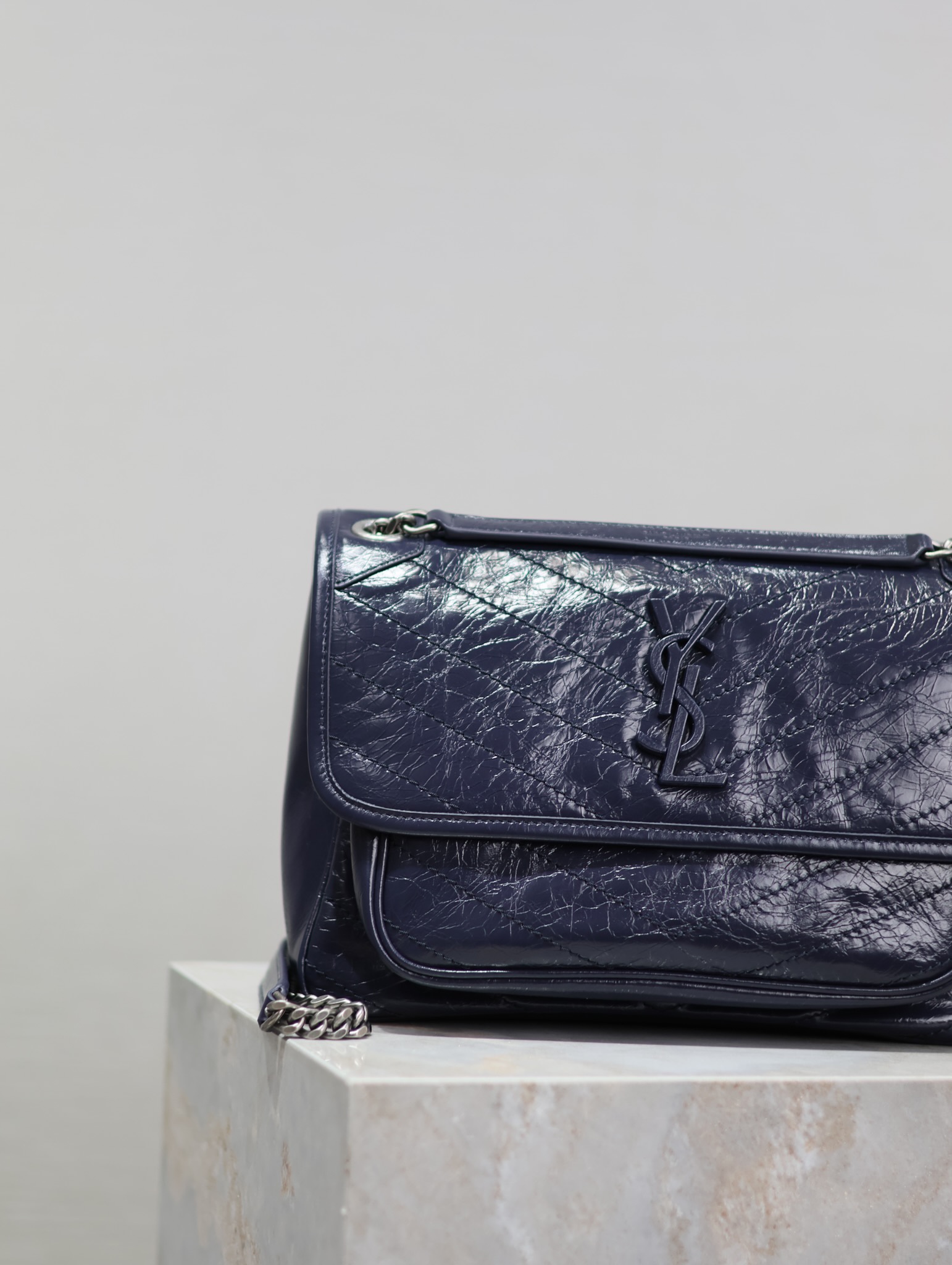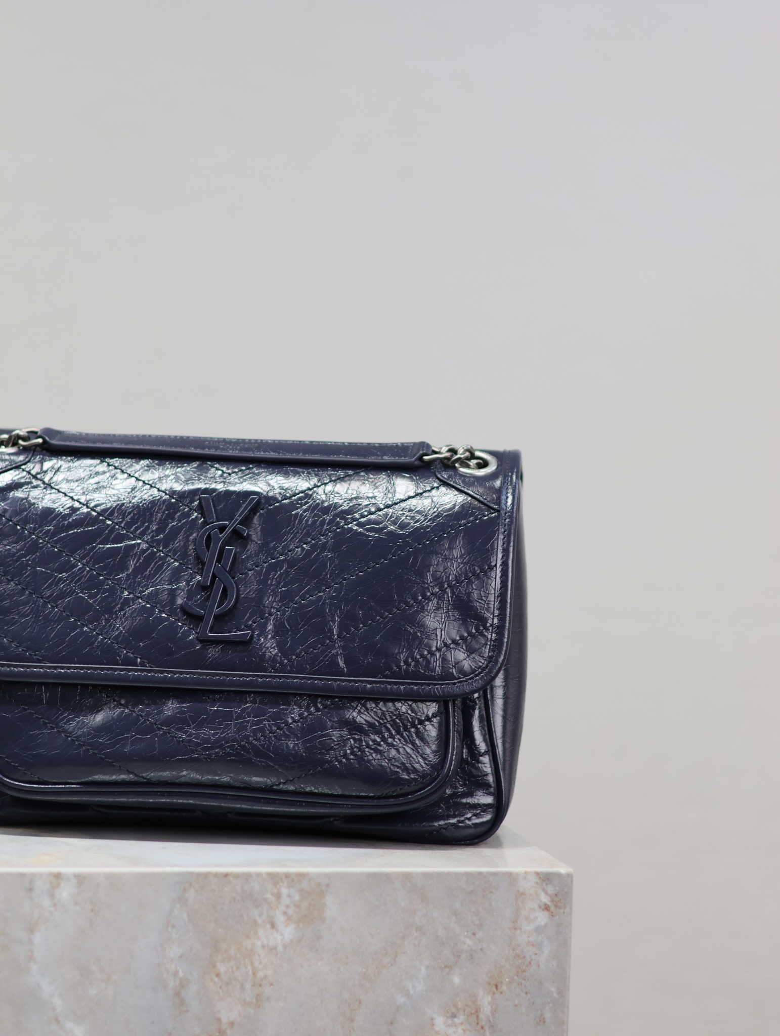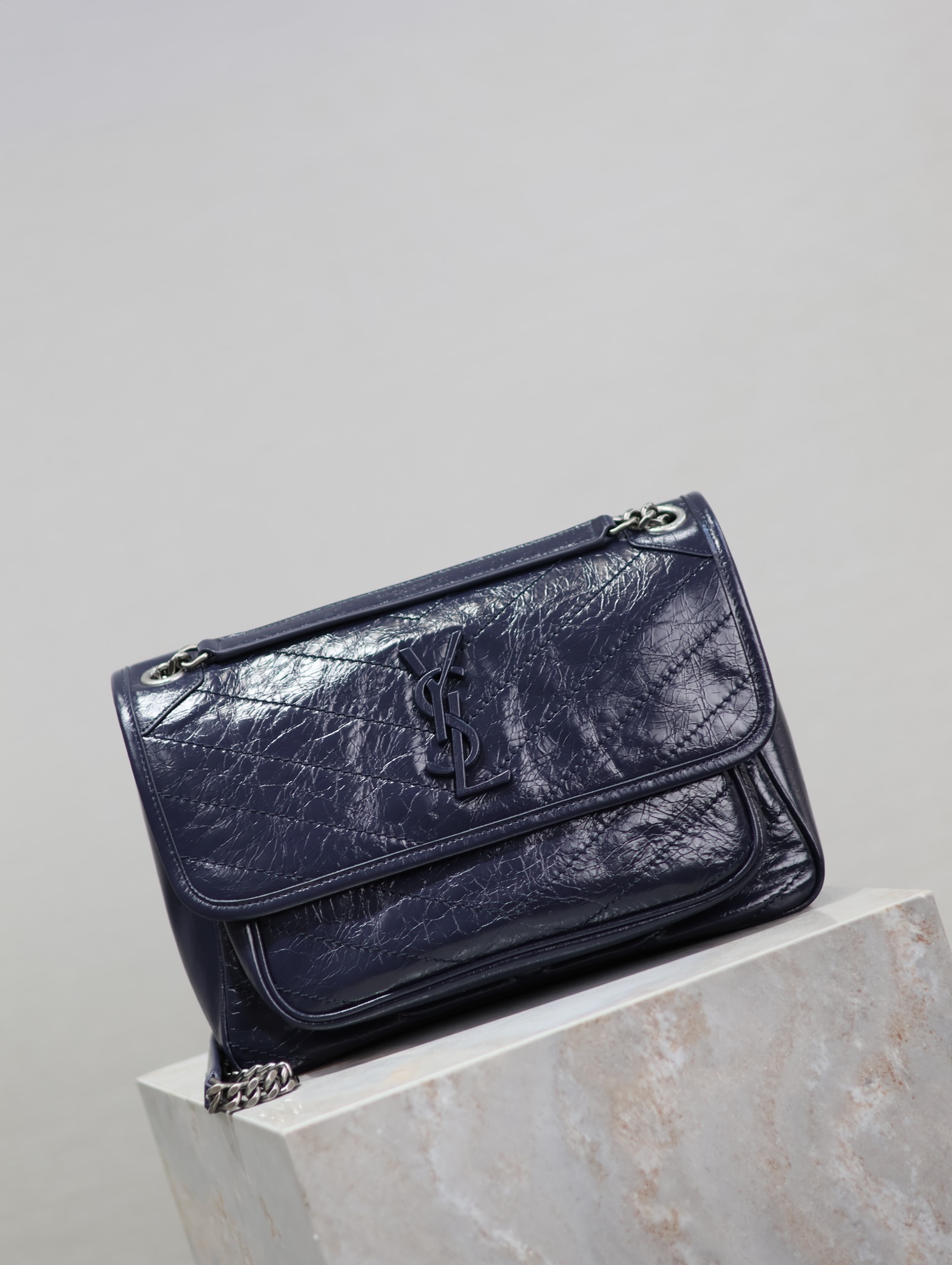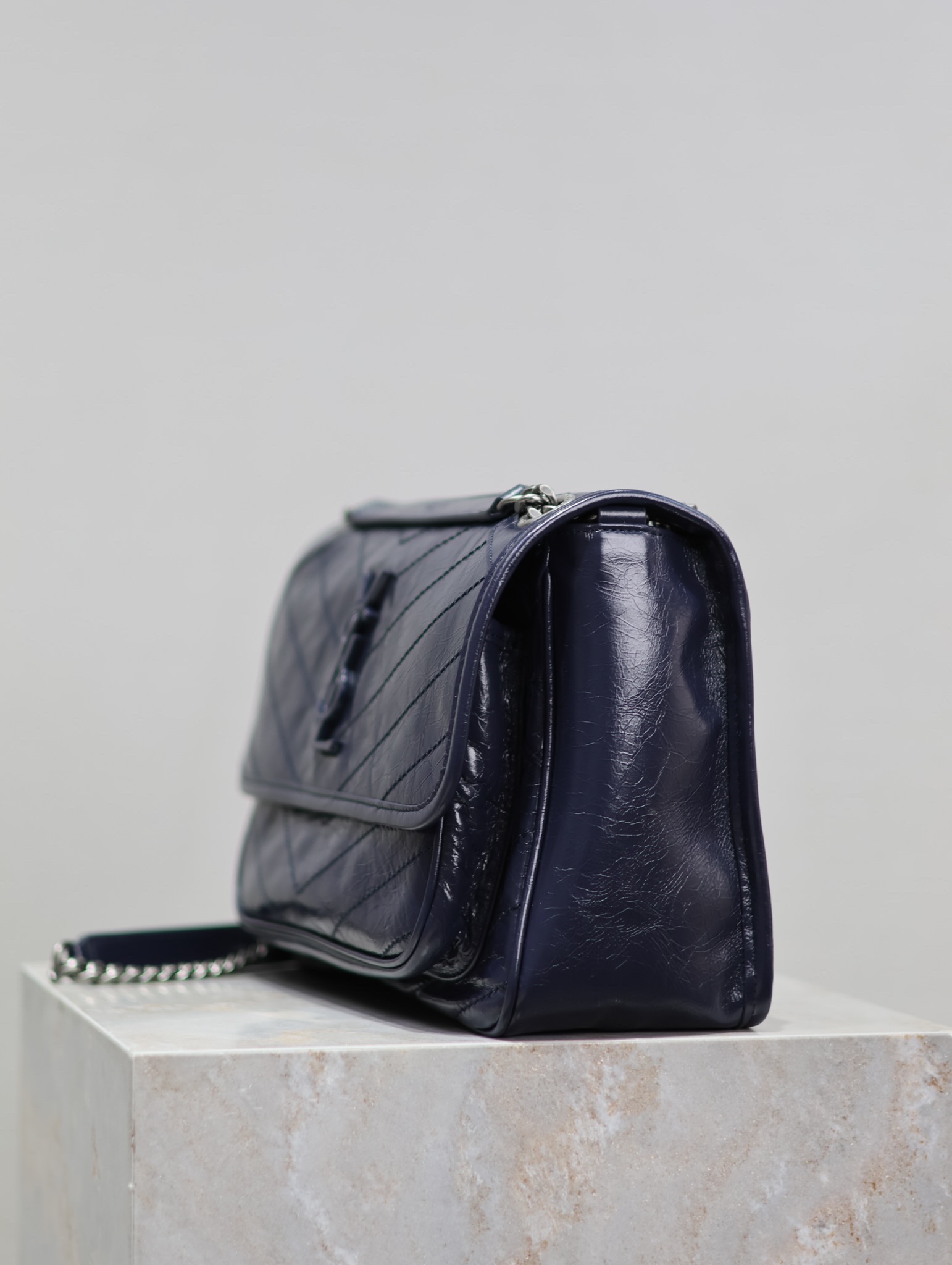 Navy blue oil wax leather · 28cm