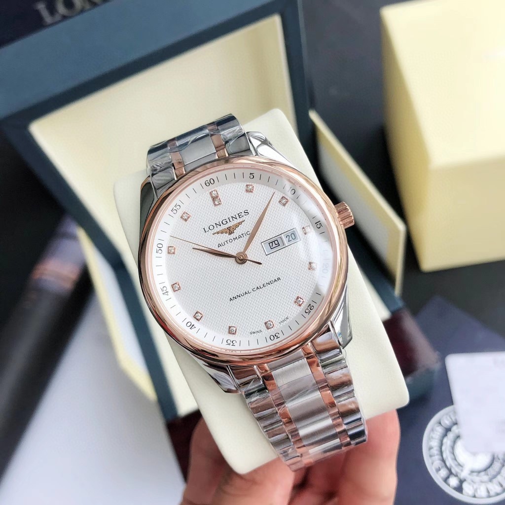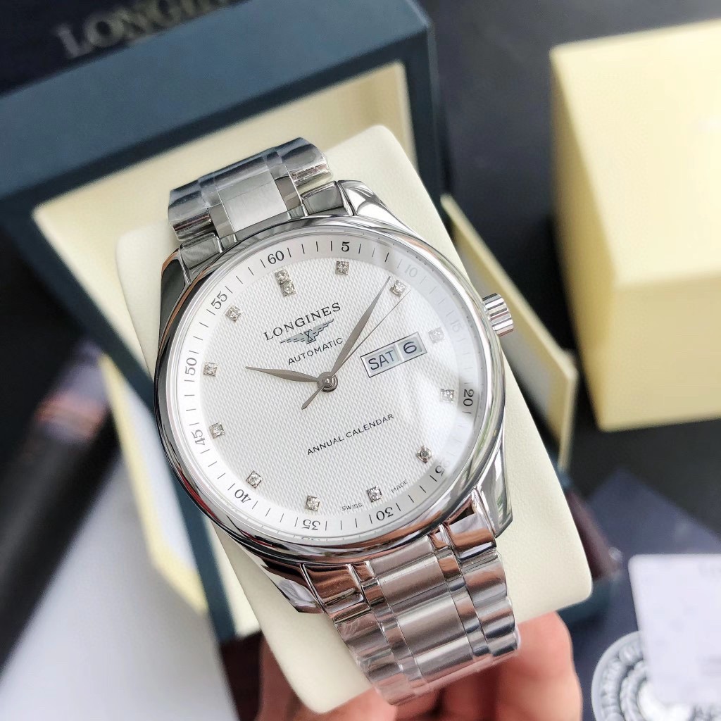 Batch. One watch, one code, one card, exclusive latest model Longines Master Collection fashionable automatic mechanical stainless steel men's watch 40mm. This model features an ultra-thin case, including the movement fixing seat, waterproof ring, the thickness of English numbers on the back cover, especially the color and length of the hands. Can enter the counter without pressure, supports return and exchange if the protective film is removed, free lifetime warranty for non-human damage.