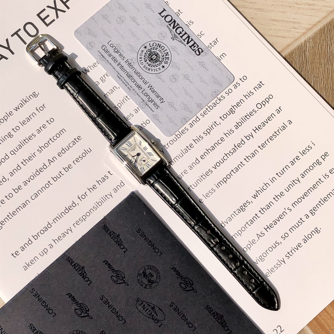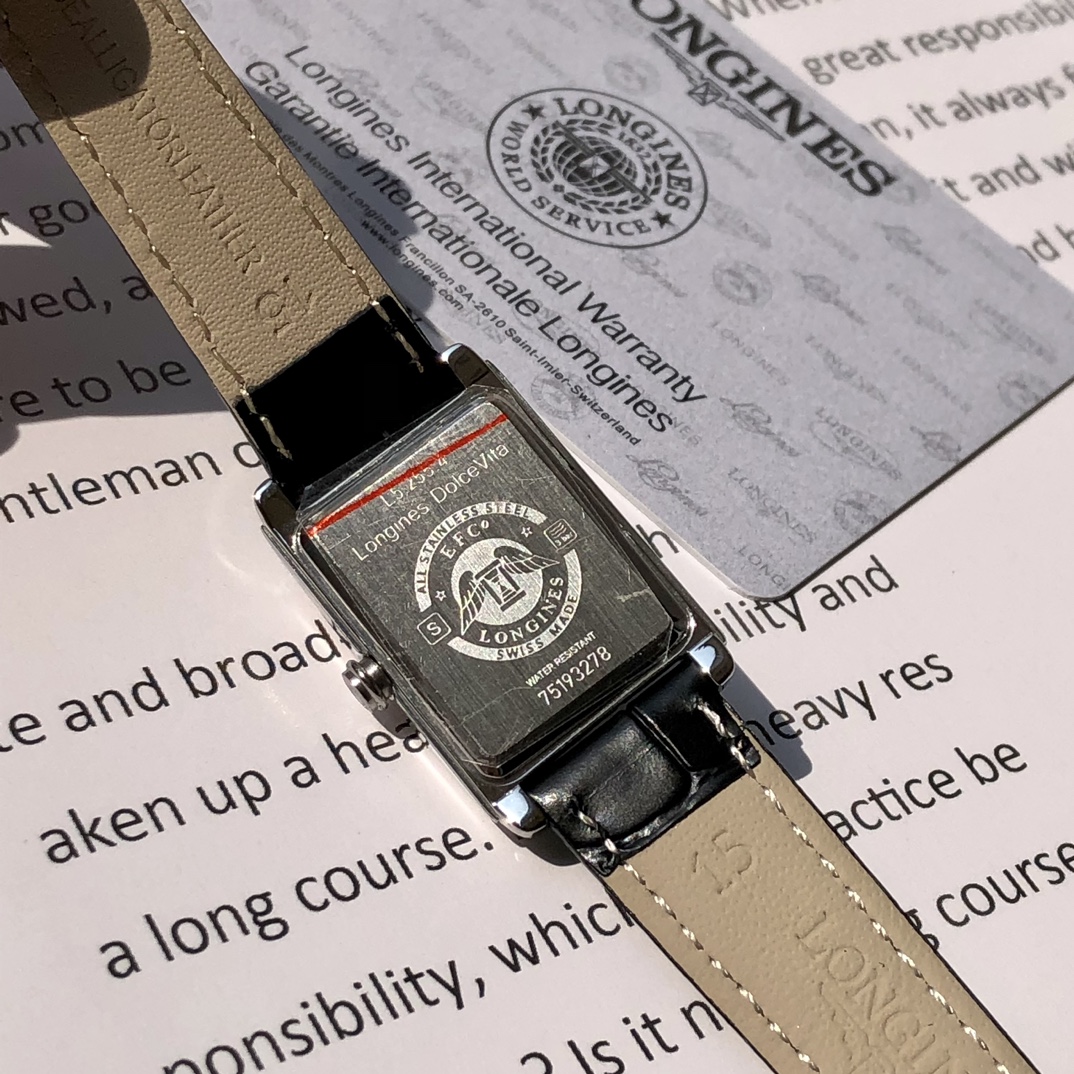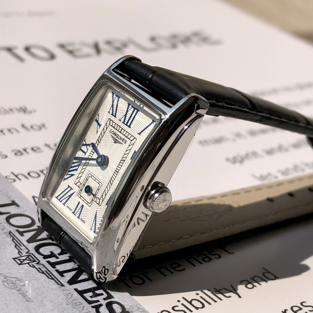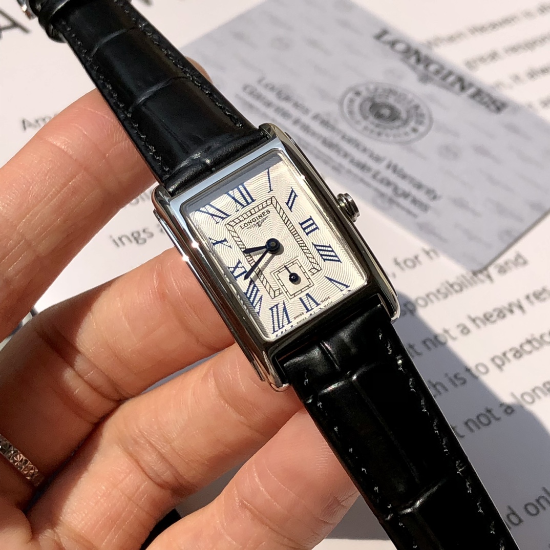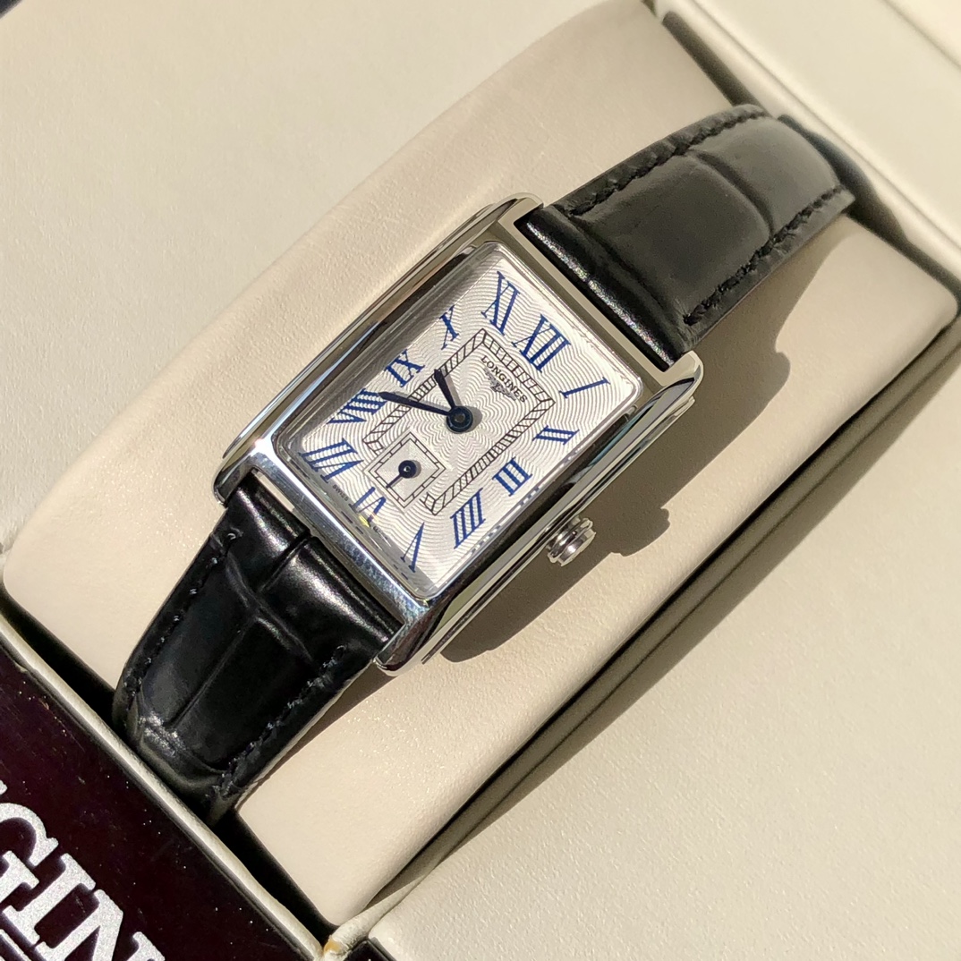 Batch. Longines DolceVita series! Women's quartz watch, uniquely designed case with an ultra-thin side profile creates timeless beauty, wave pattern/mother-of-pearl dial looks very textured, paired with blue steel hands, 17.40 X 27.00 mm case diameter is lightweight and exquisite. Swiss quartz movement! Scratch-resistant sapphire crystal, comes with full packaging!