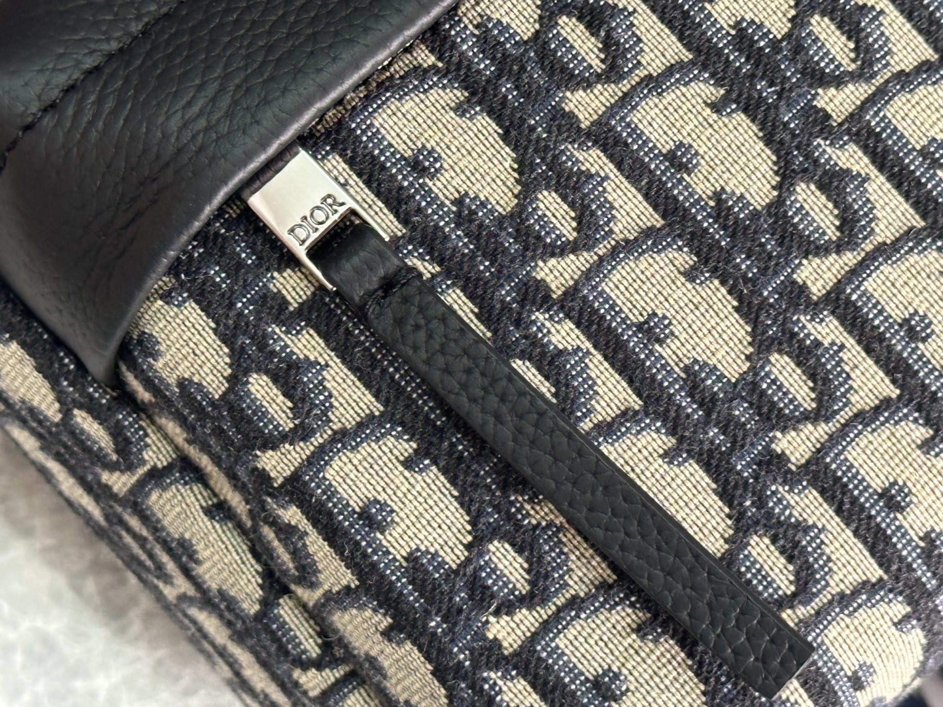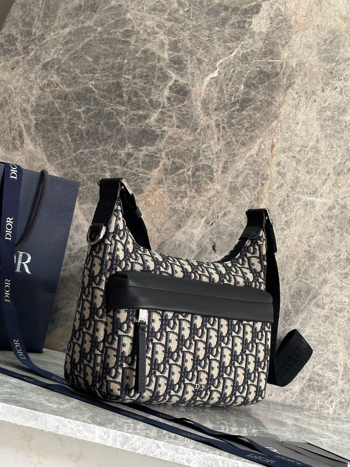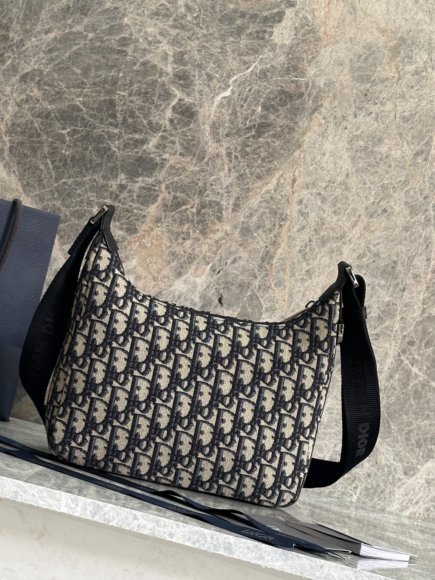 Top-tier original single piece. This Rider Soft dumpling bag is a new product from the Fall/Winter 2025 menswear collection, combining practical functionality with fashionable design. Meticulously crafted from materials such as beige and black Oblique printed fabric, adorned with black grained calfskin leather details to enhance the style. Features a zippered compartment and a front zippered pocket, capable of storing various daily essentials. A practical small-sized style, paired with an adjustable shoulder strap, can be carried on the shoulder or cross-body.