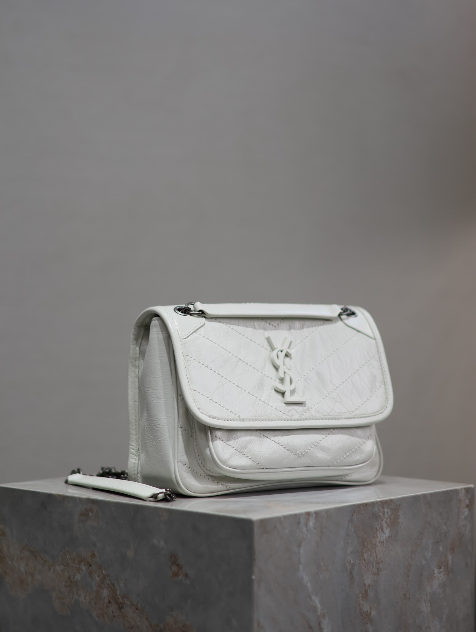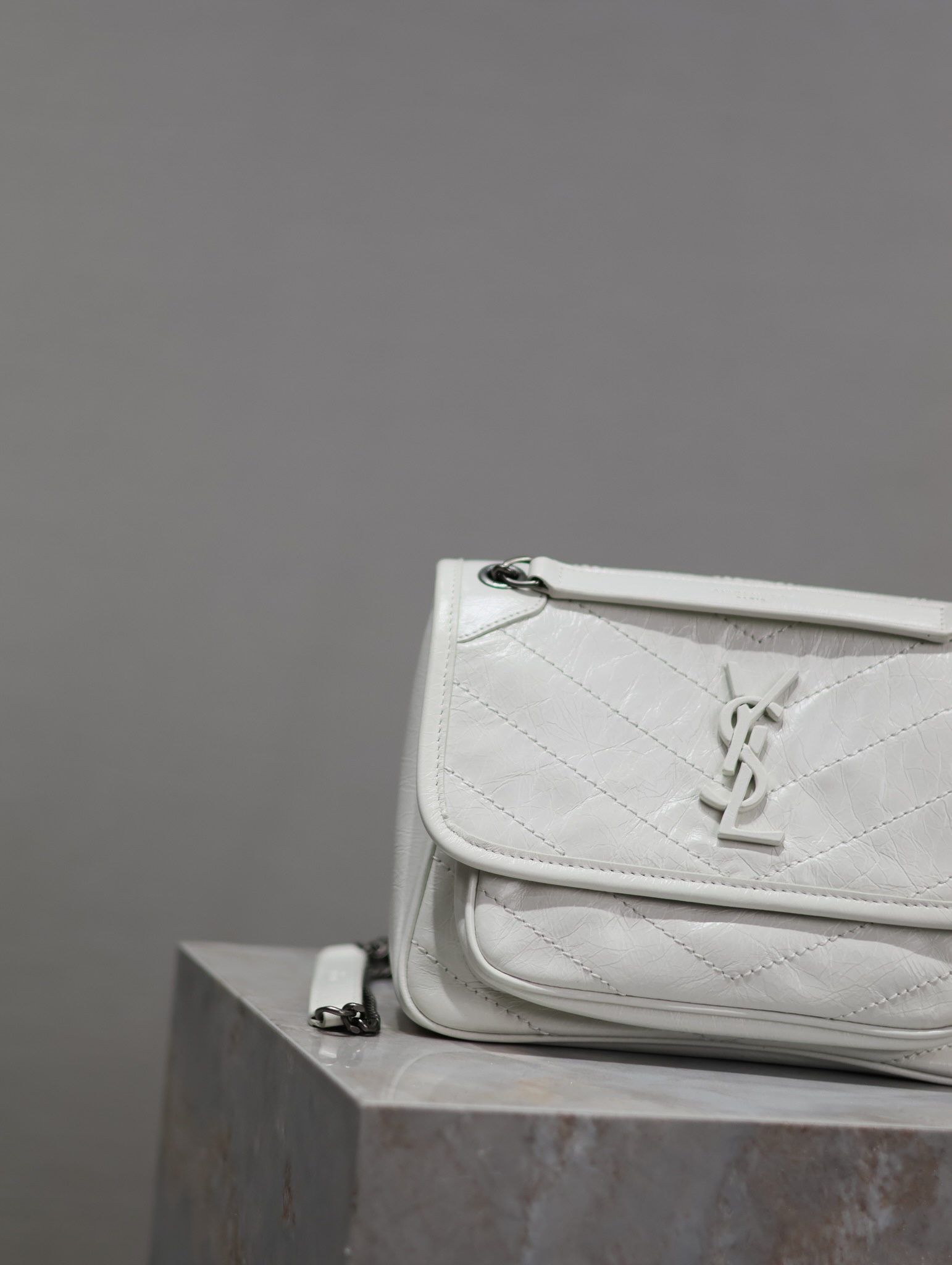 Pure white wax leather · 22cm