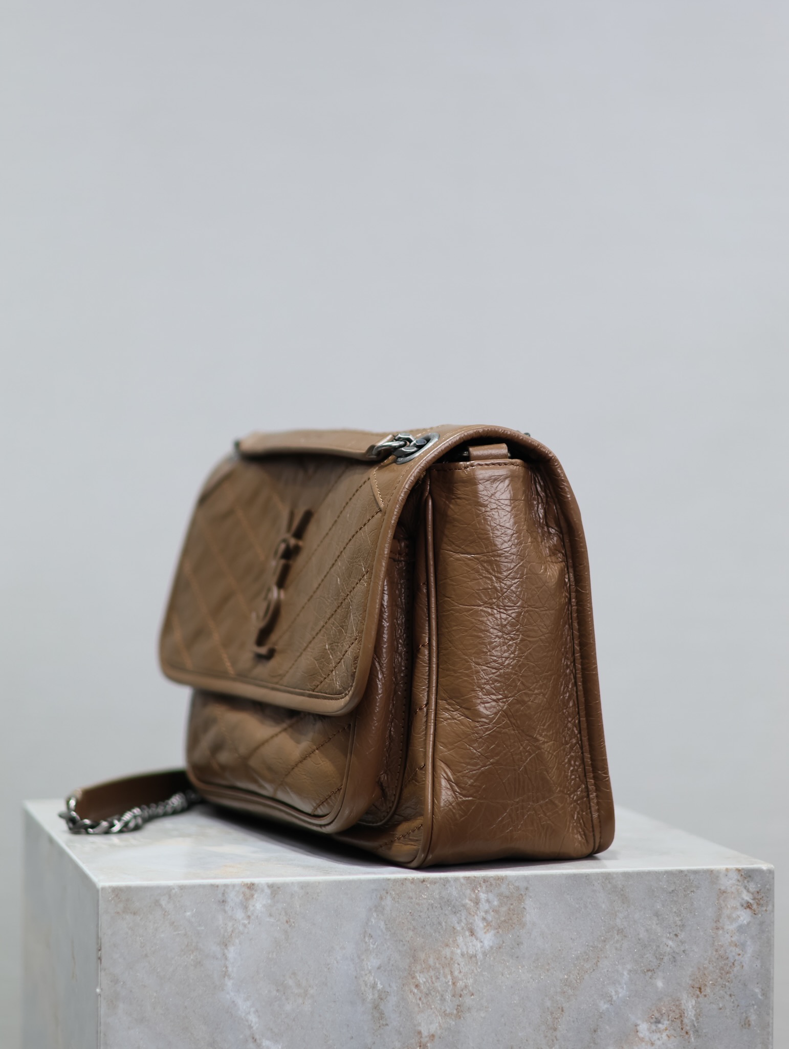 Deep khaki silver buckle oil wax leather·