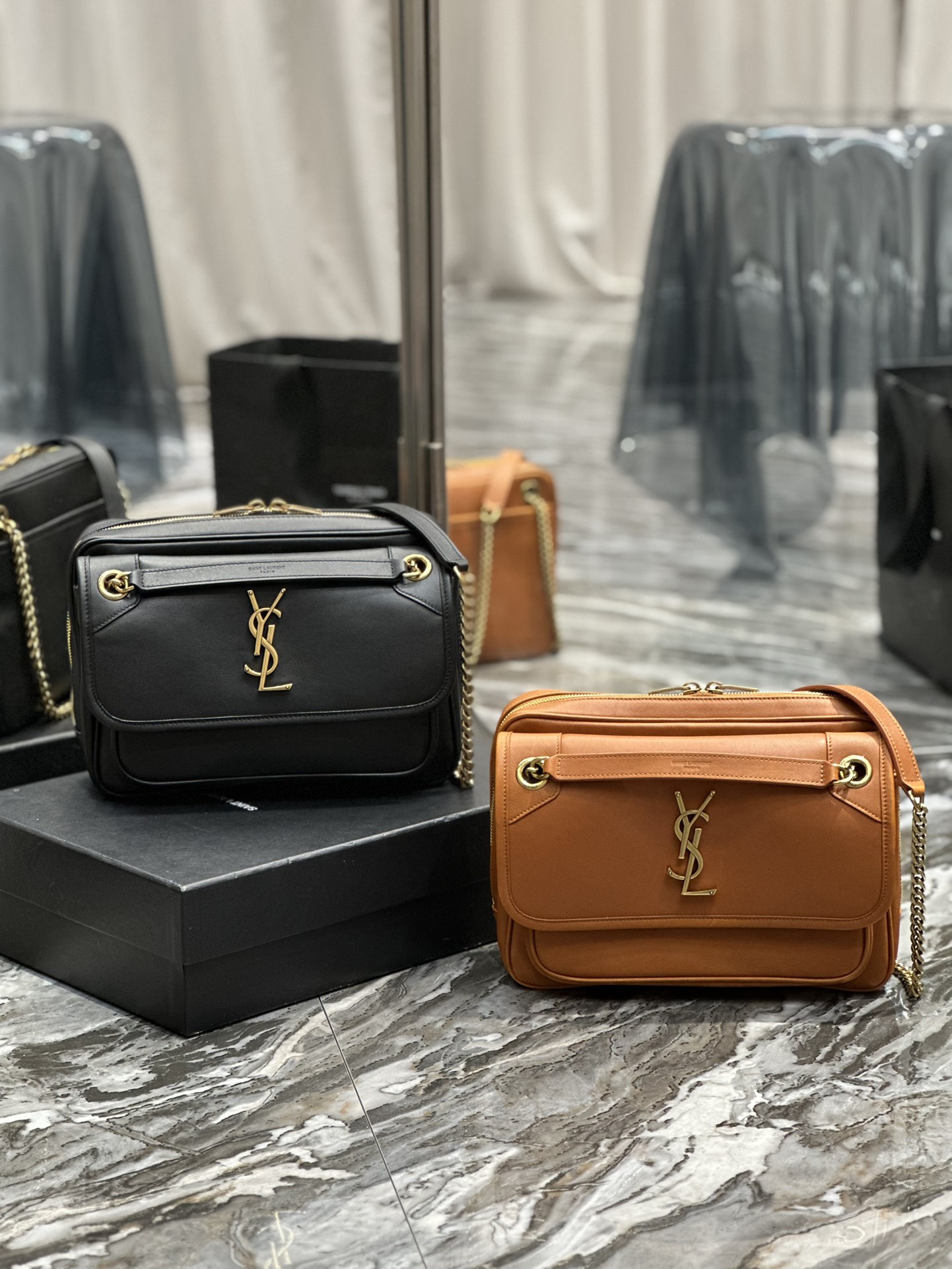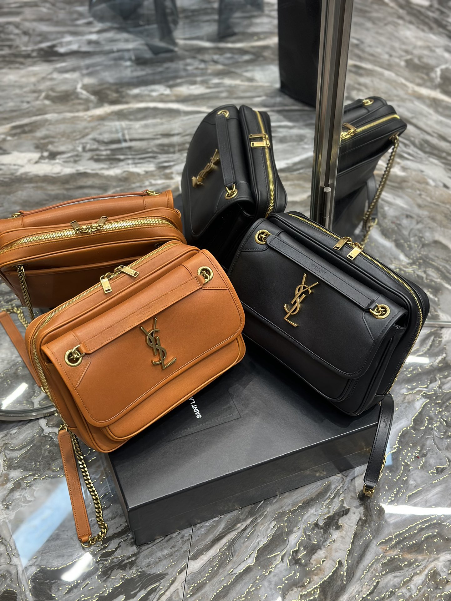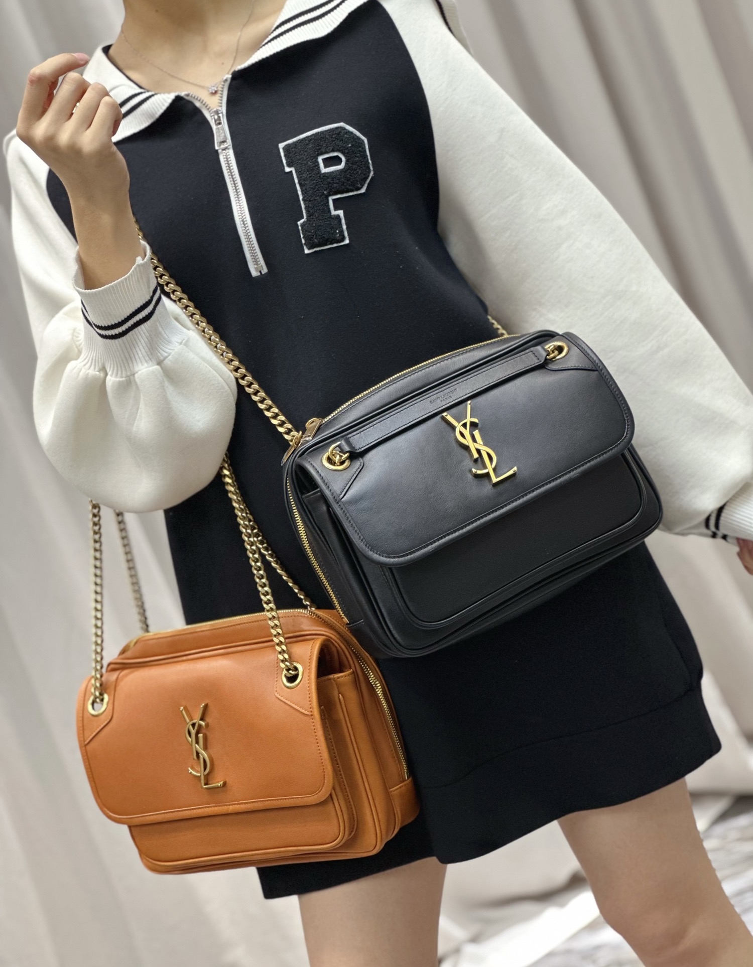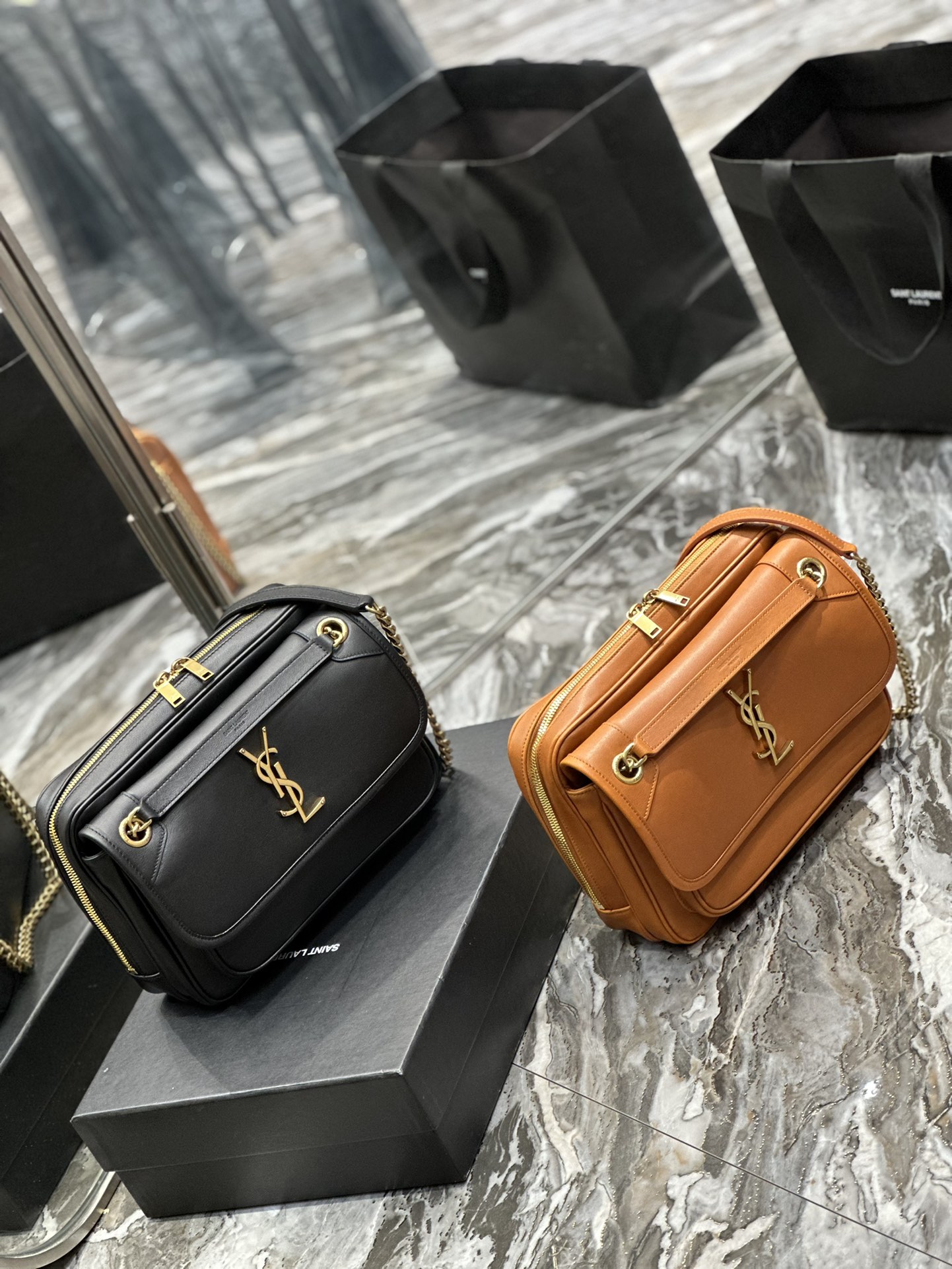 YSL Saint Laurent Niki Camera Bag/Crossbody Bag Black/Cognac Gold with Gold Hardware