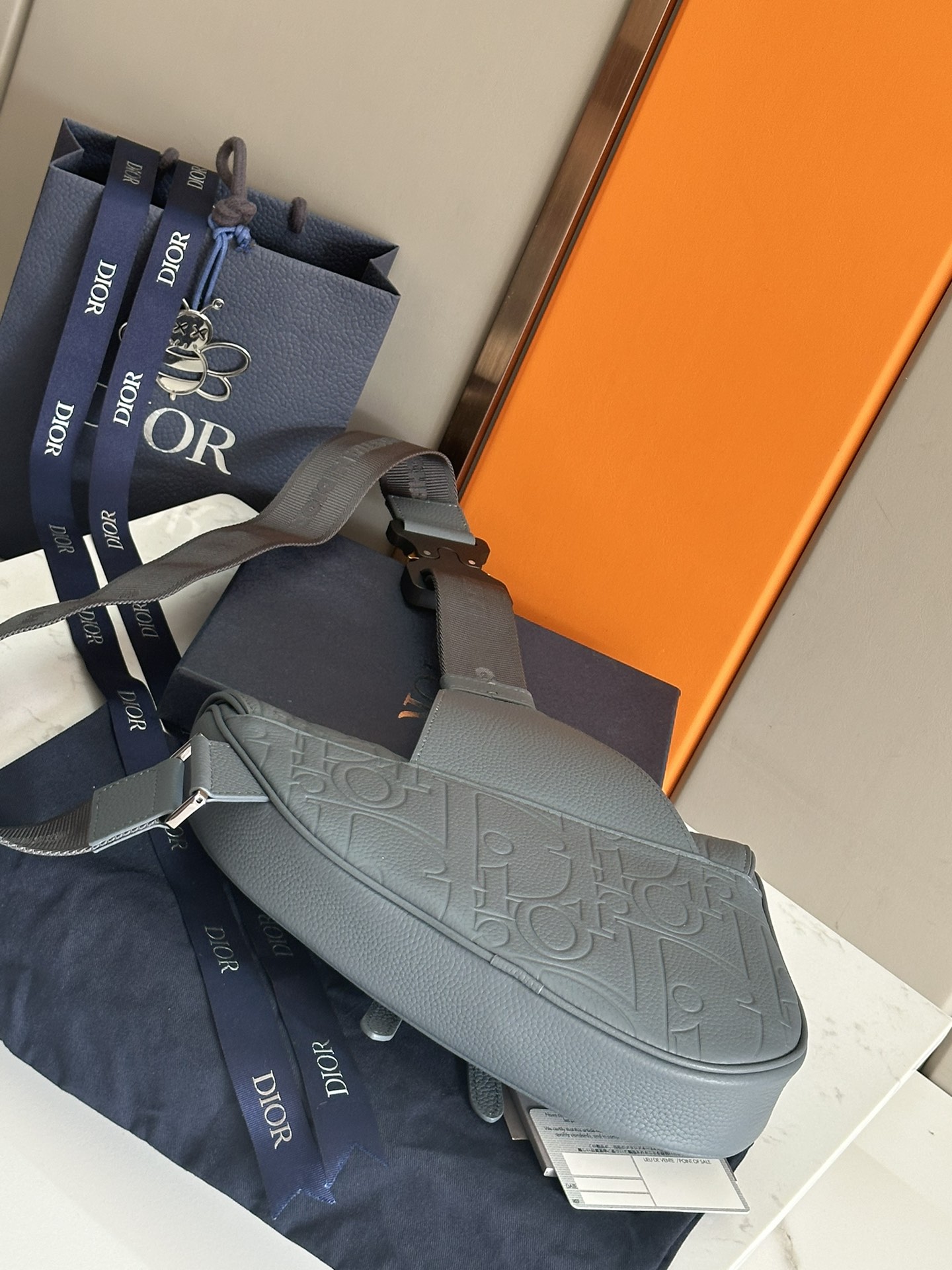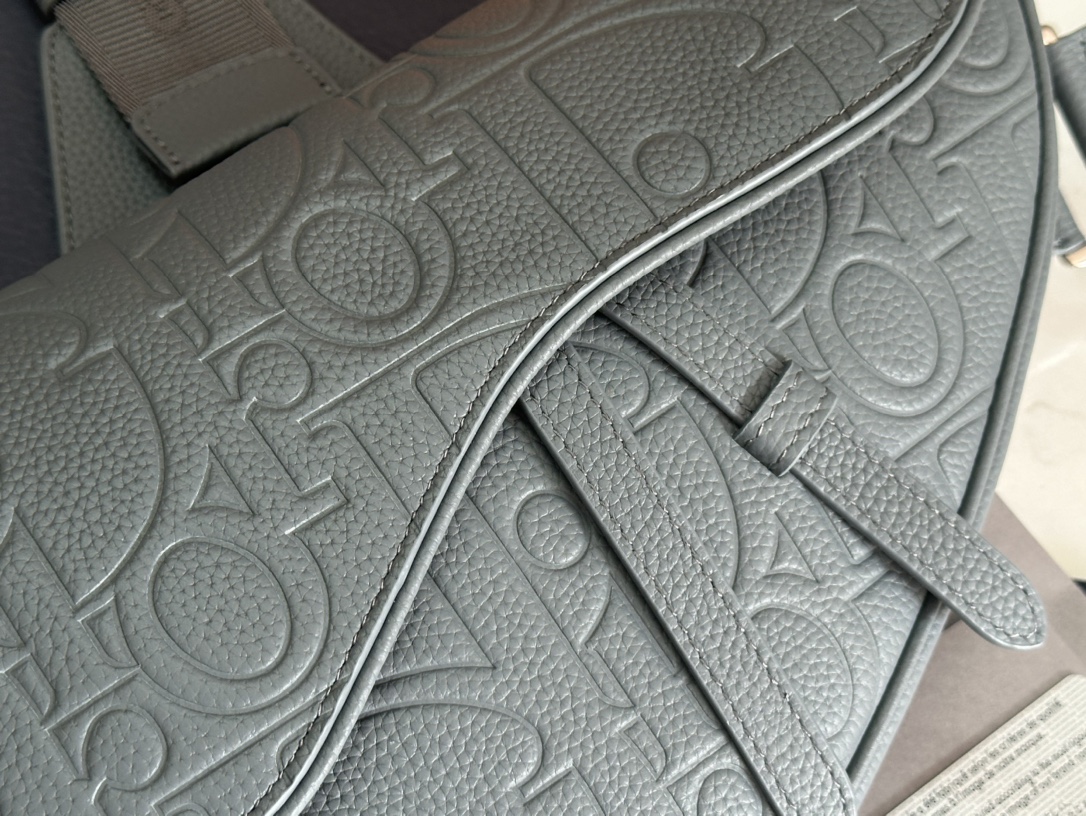 This saddle bag is fashionable and classic. Dior Gravity printed leather uses embossing technology to exquisitely present the classic pattern on gray cowhide, adorned with details of grained cowhide in the same tone, highlighting the exquisite craftsmanship of the Dior atelier. It features a classic magnetic flap and a hidden zippered pocket for safely storing various daily essentials. The adjustable strap is decorated with a Christian Dior logo jacquard pattern and can be worn on the shoulder or across the body.