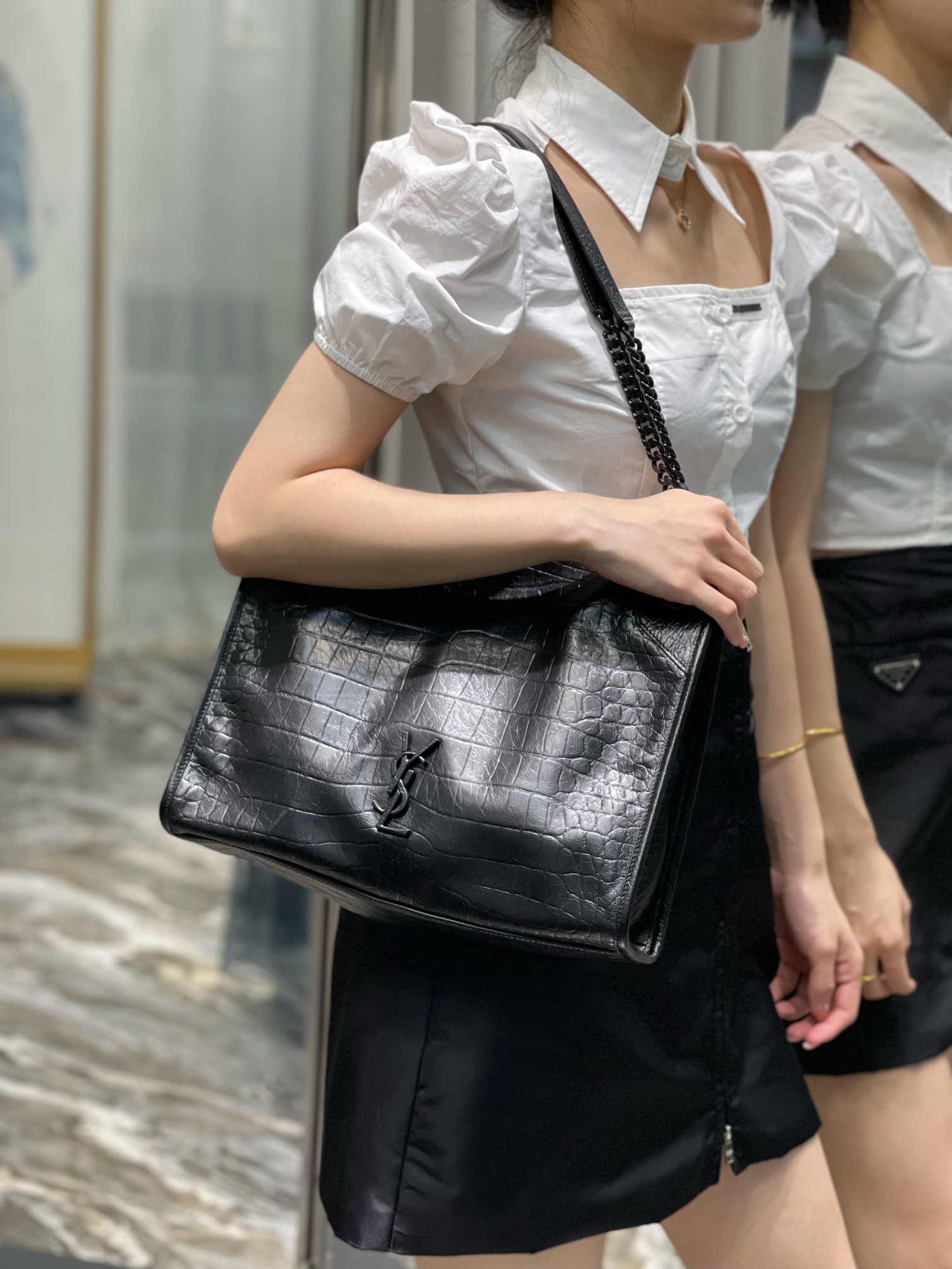 YSL Saint Laurent Niki shopping bag, black medium crocodile print.