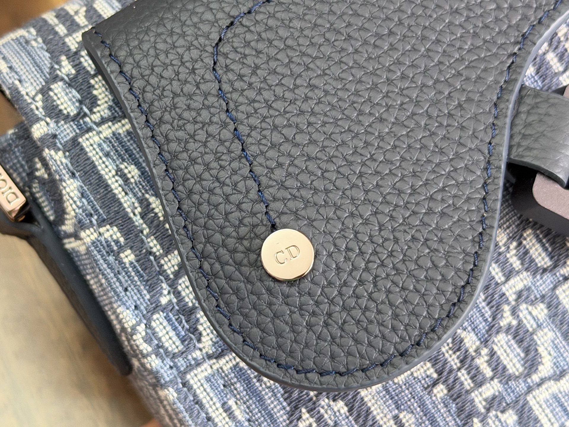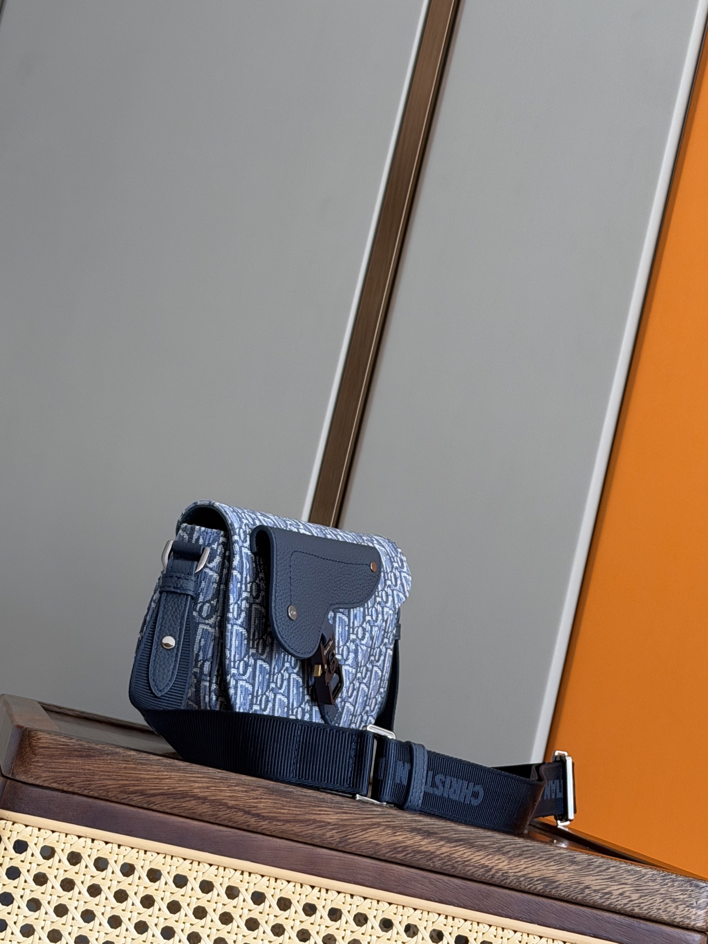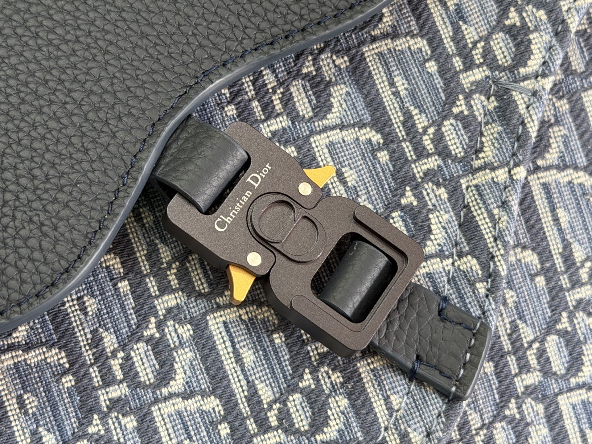 This saddle messenger bag is exquisite and stylish. Meticulously crafted from blue Oblique printed fabric and other materials, it features a saddle flap in grained calfskin leather of the same tone, enhanced with an aluminum buckle for added elegance. The spacious interior includes a slip pocket to accommodate various daily essentials. It comes with an adjustable Christian Dior nylon jacquard shoulder strap, allowing for shoulder or cross-body wear.
