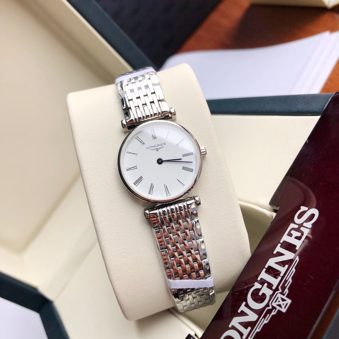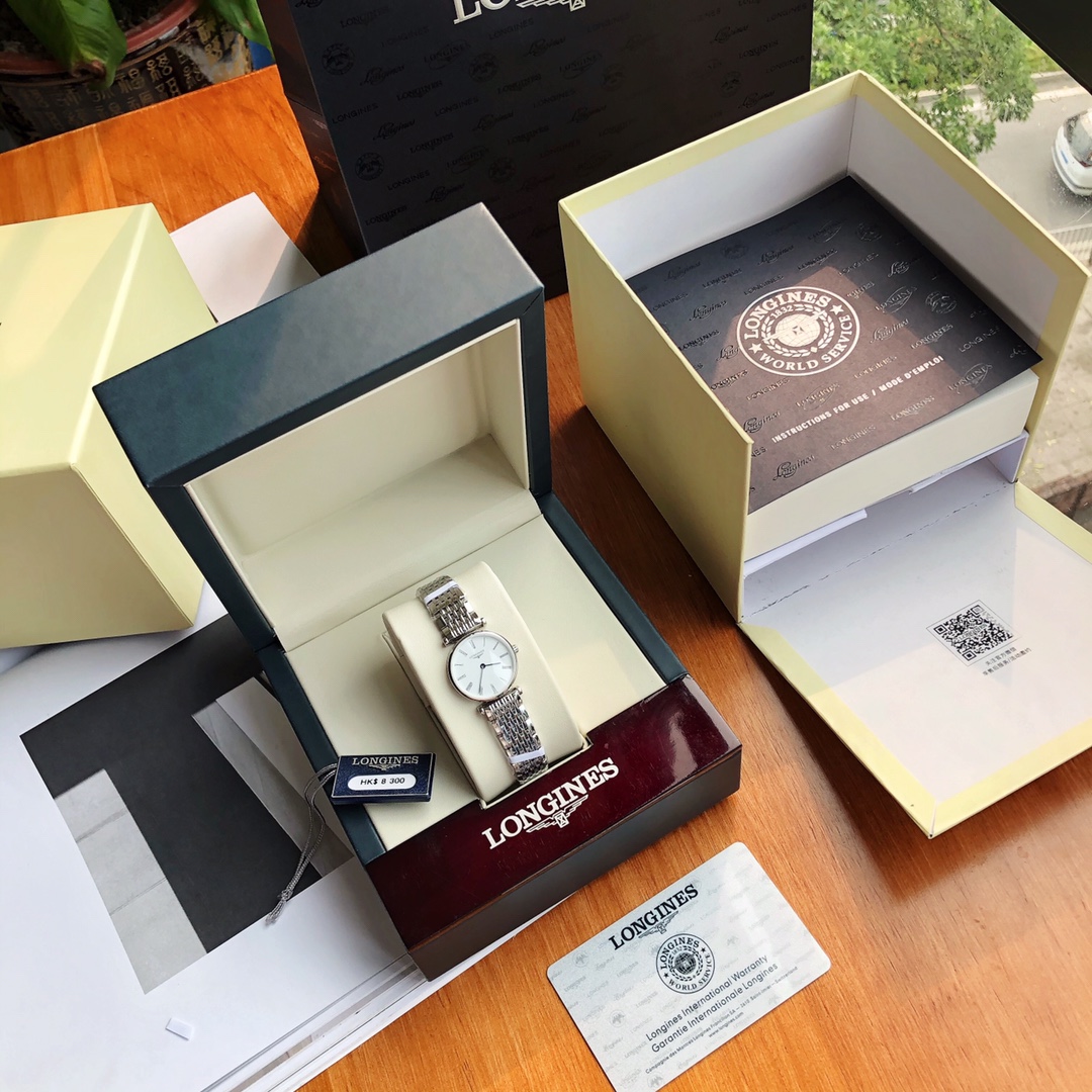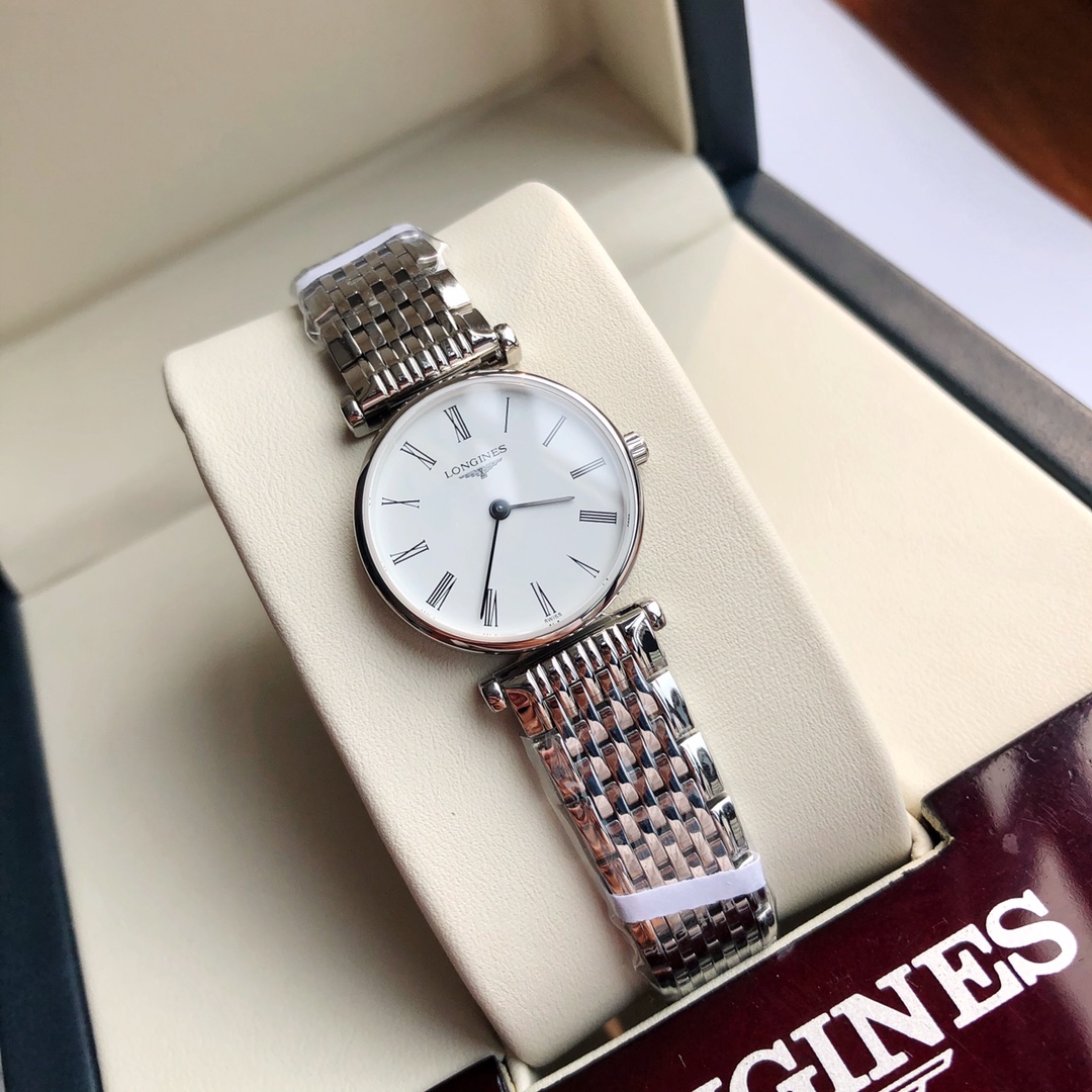 Batch Ultra-thin 4mm... Classic Roman numerals! Longines La Grande series - casual and fashionable ladies' quartz watch, size 24mm. The Longines La Grande embodies the oldest manufacturing aesthetics of the Longines brand, renowned for its winged hourglass emblem. The uniquely designed case, with its ultra-thin profile, creates timeless beauty. Equipped with an original Swiss L.209 quartz movement, scratch-resistant sapphire crystal, triple-fold safety clasp and push-button opening mechanism. Black hands add refinement to the entire dial. Original large components highlight the essence of the watch. One watch, one code. The watch case back, tag, and warranty card have matching codes. Exclusive supply.