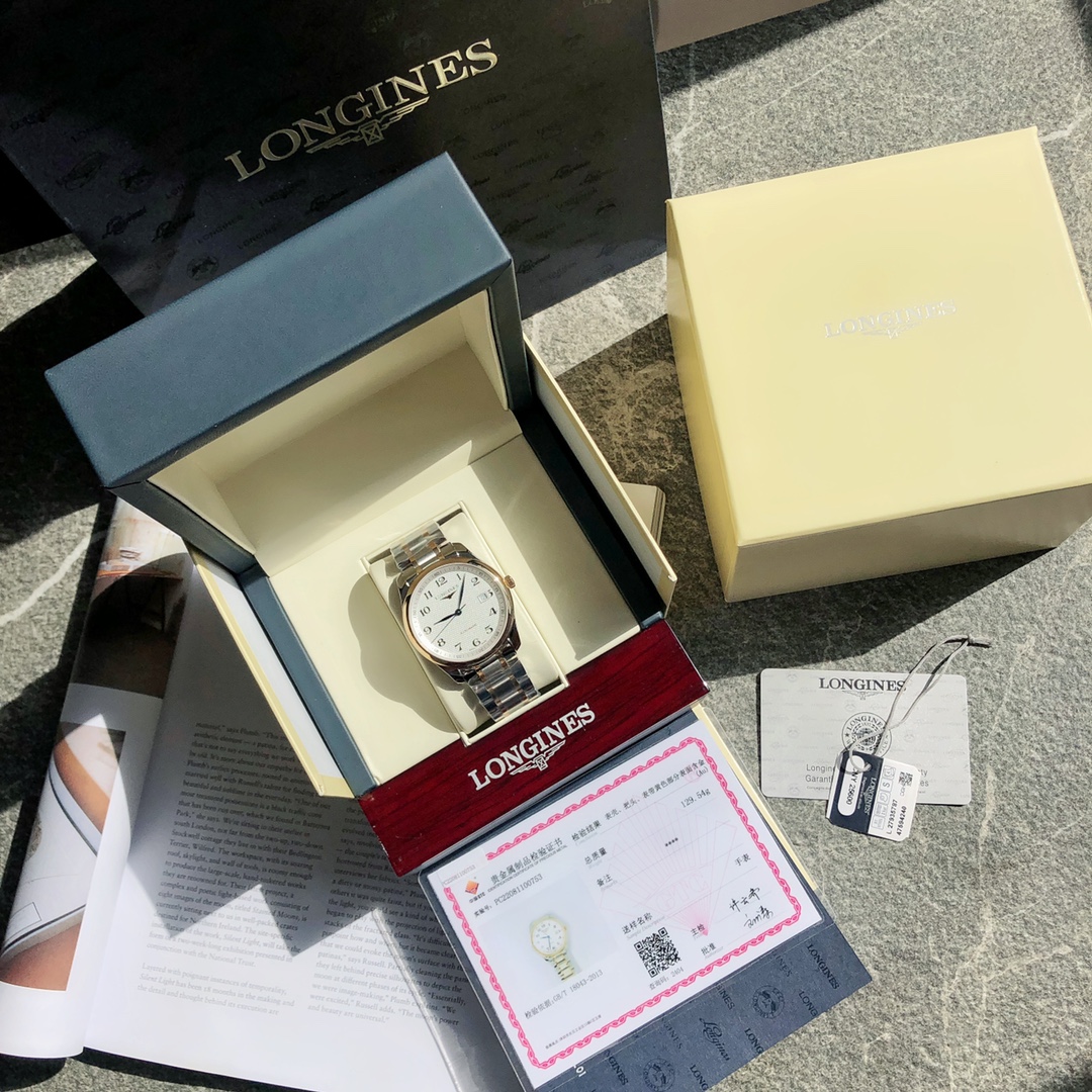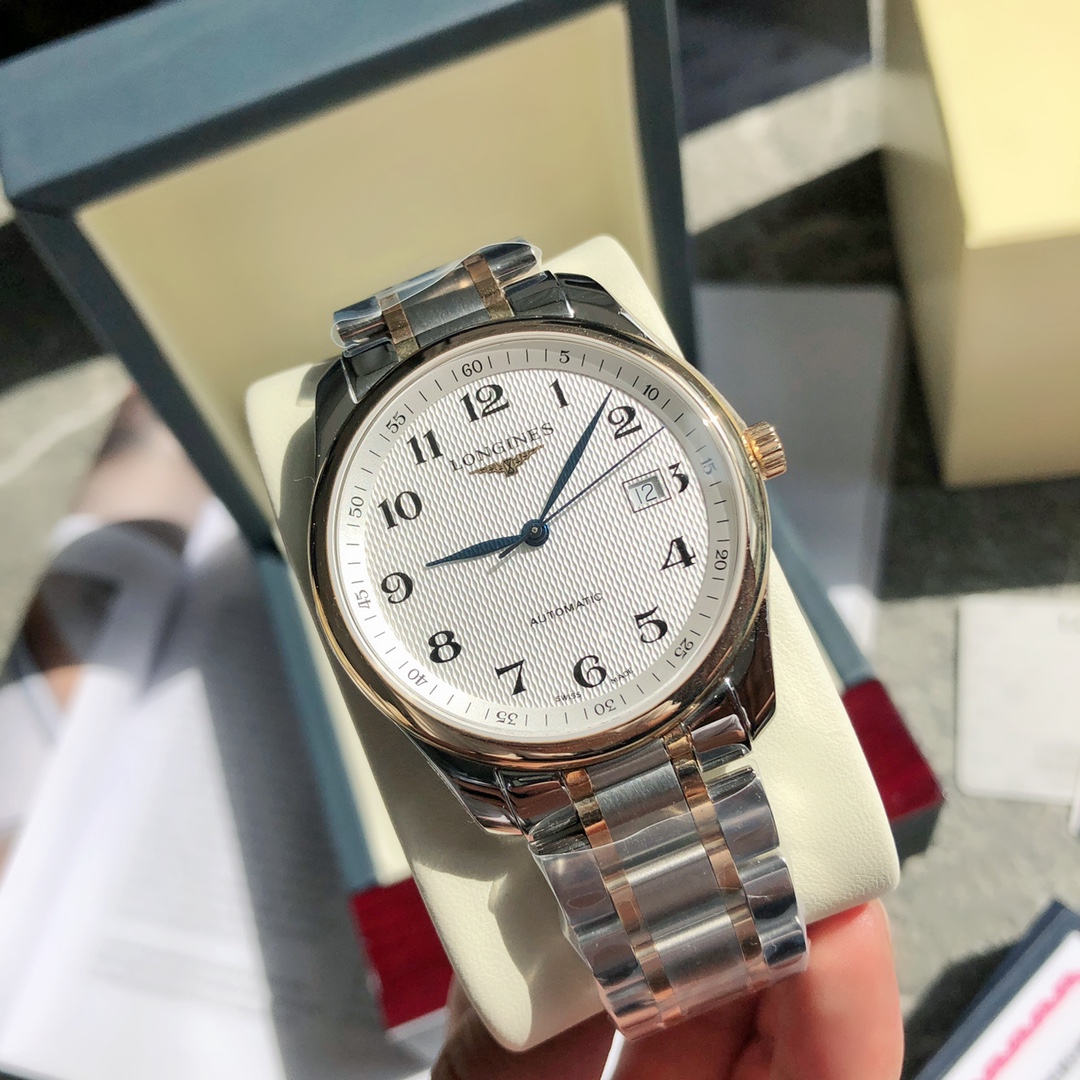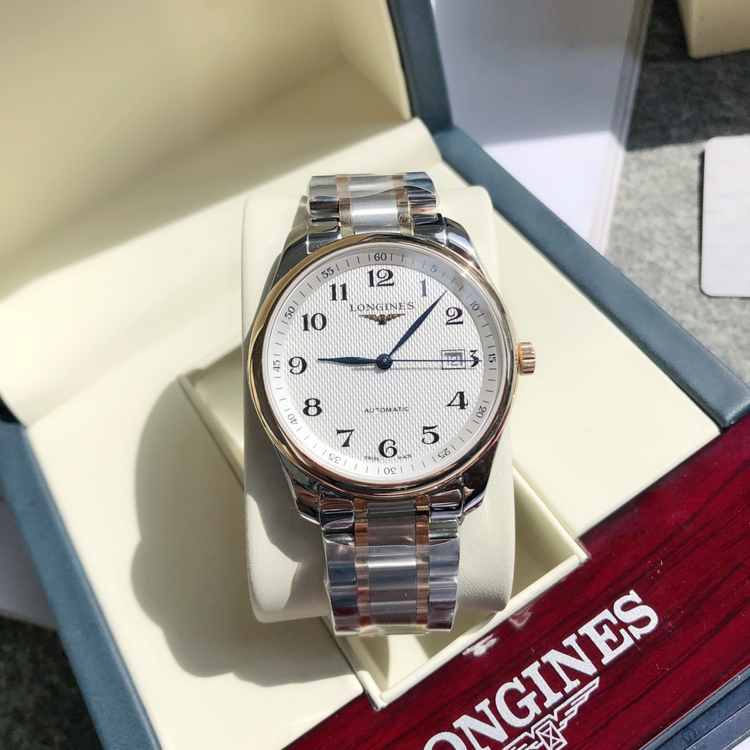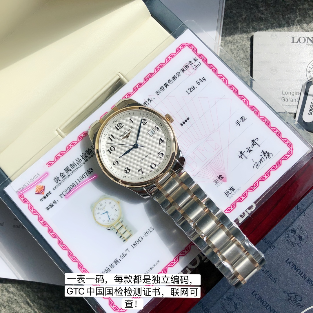 Top-grade bull goods! Longines "Master Real Gold Edition" – the "only one in the city" using genuine materials and real gold crafting! The watch head, crown, and golden parts of the strap are made of authentic 18k gold plating, never worrying about fading. The thickness of the gold plating is clearly visible at the cross-section of the strap! Original century-old classic, ultra-thin design style presents a minimalist quality on the wearer's wrist. Case diameter 40mm, with a two-tone gold three-fold safety clasp and push-button opening mechanism, "see-through" Swiss fully automatic mechanical movement, the movement's dynamics are clear at a glance! Water resistance 30 meters, lug width 21mm. Dial features white "barley grain" pattern, each watch comes with a genuine gold certificate issued by China's authoritative GTC certification body, ensuring each watch is made of genuine 18k gold plating. One watch, one number – each certificate has a unique serial number that is never repeated. Scan the QR code on the organization's official website to verify authenticity. Blued steel polished hands, scratch-resistant synthetic sapphire glass crystal, adorned with elegant numeral hour markers, complementing the simple and beautiful central blued steel large three hands, making time display clear and intuitive. The movement uses the Swiss 2892 observatory-certified highest grade fully automatic mechanical movement, with original parts from factory channels. The strap, clasp, and case are all made of Swiss factory-designated standard 316 stainless steel, offering super wear resistance and corrosion resistance! Ultra-clear English and numeric information on the case back, visible craftsmanship of hand color and length, one watch one code, case back code, hang tag, and warranty card – three codes unified. Unremoved protective film supports returns, movement free from human damage enjoys lifetime free warranty.