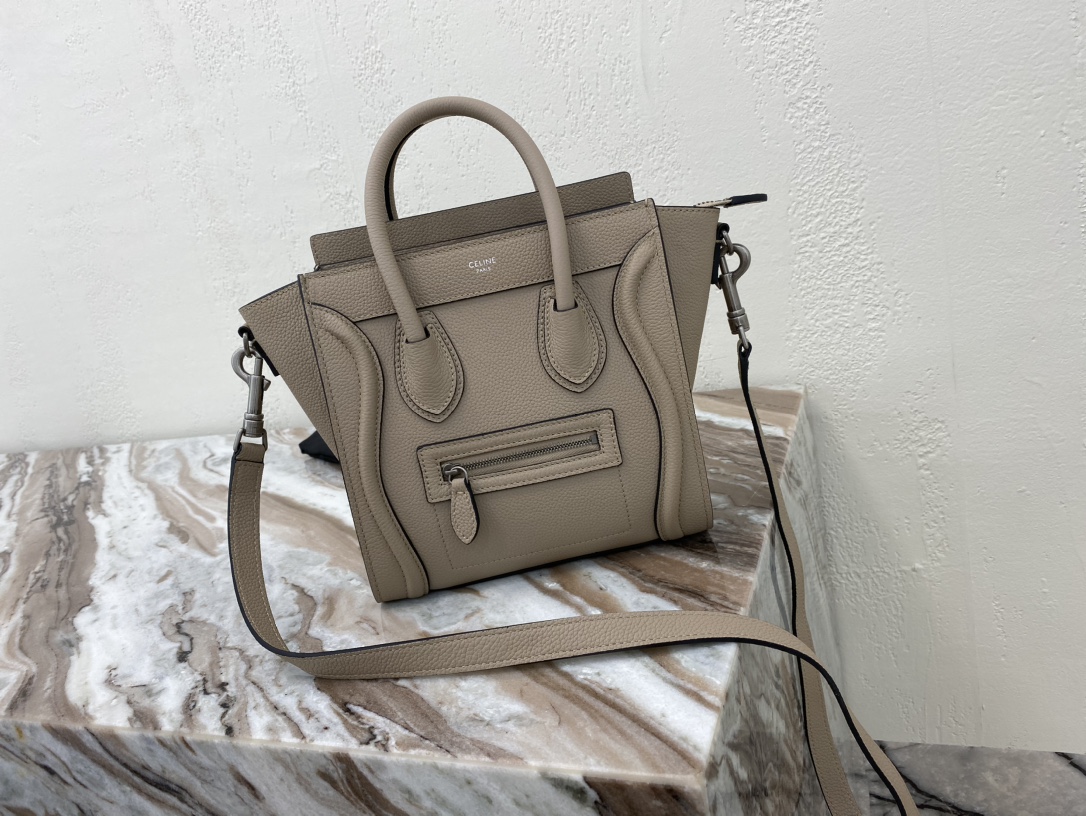 [Upgraded New Logo] CELINE Classic Luggage Bag Italian Overseas Parallel Import [Small 20CM] LUGGAGE Two-Tone Calfskin Handbag/Crossbody Bag Top zipper closure. Simple flat interior pocket. Antique gold metal fittings