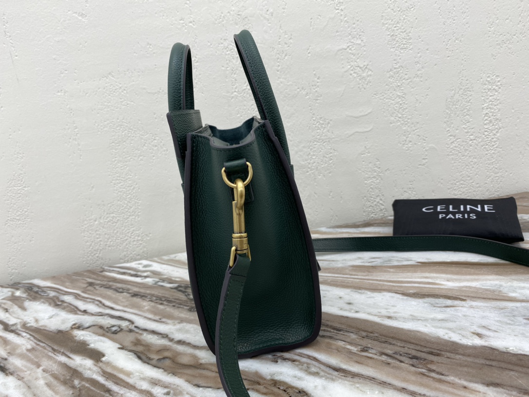[Upgraded New Logo] CELINE Classic Luggage Bag Italian Overseas Parallel Import [Small 20CM] LUGGAGE Two-Tone Calfskin Handbag/Crossbody Bag Top zipper closure. Features a simple flat interior pocket. Antique gold metal fittings