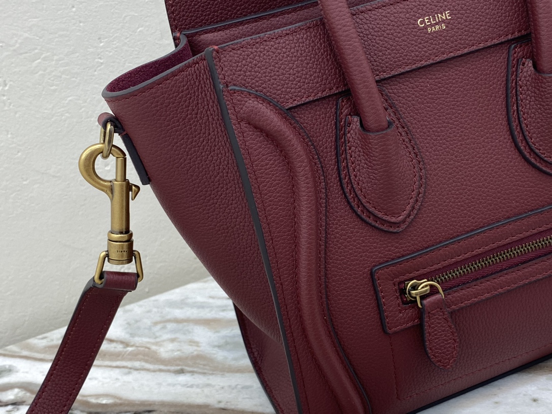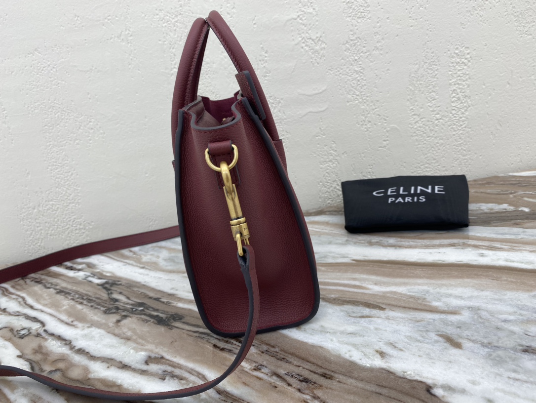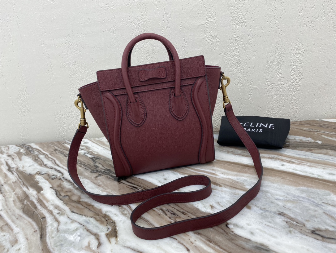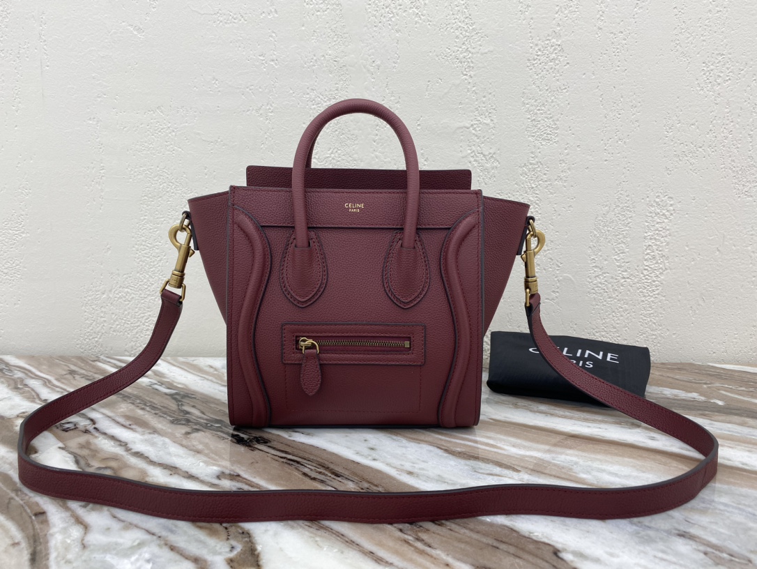 [Upgraded New Logo] CELINE Classic Luggage Bag Italian Overseas Parallel Import [Small 20CM] LUGGAGE Two-Tone Calfskin Handbag/Crossbody Bag Top zipper closure. Simple flat interior pocket. Antique gold metal fittings
