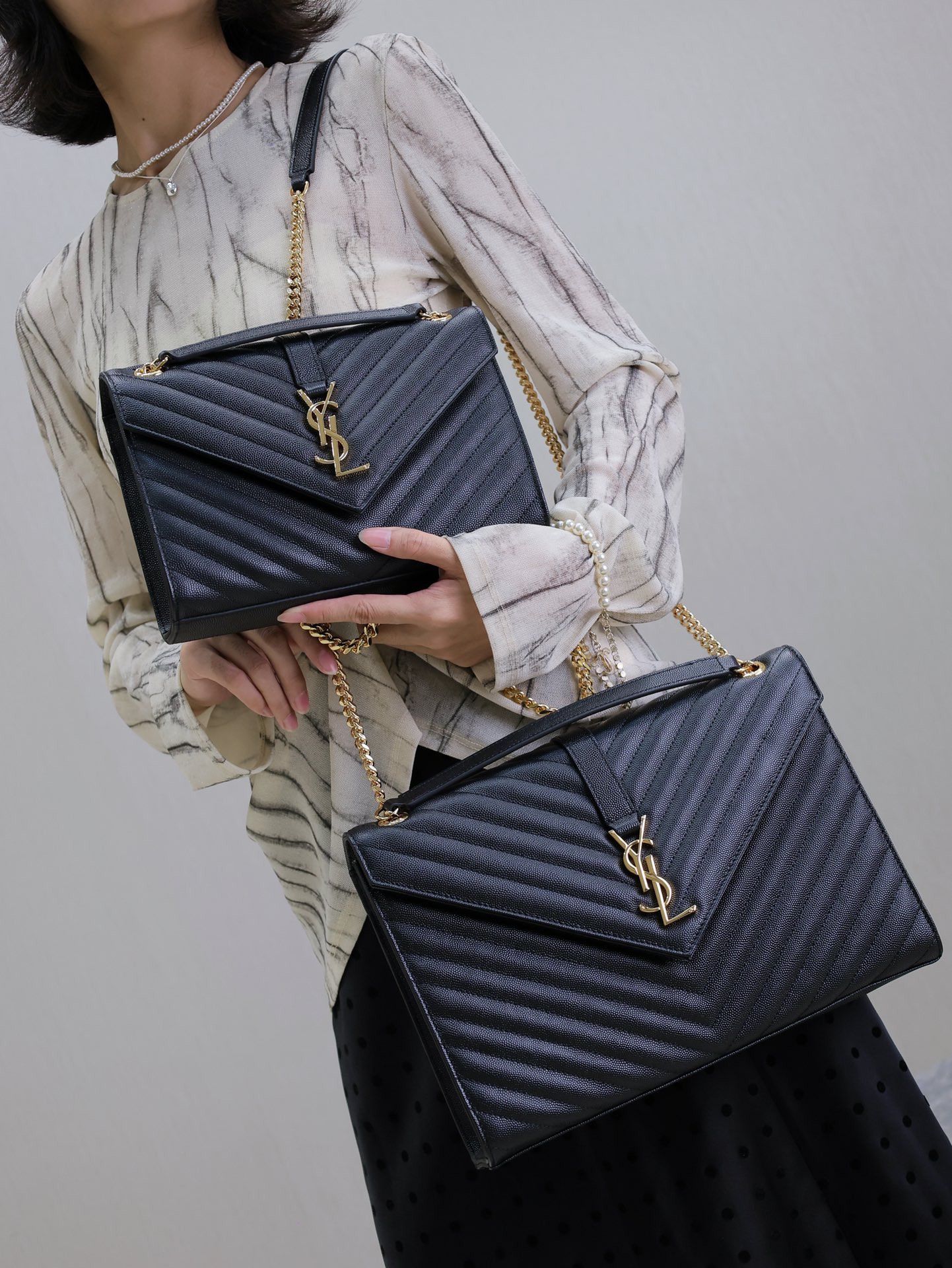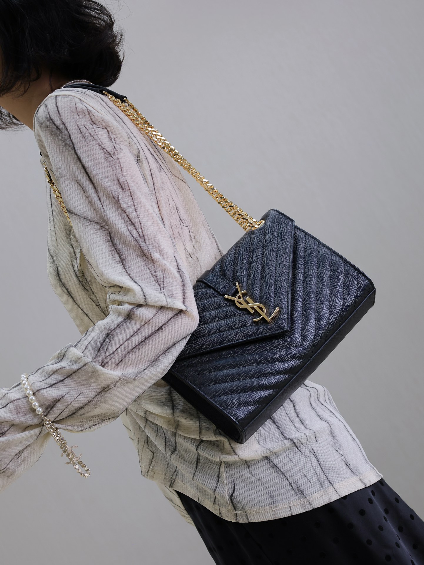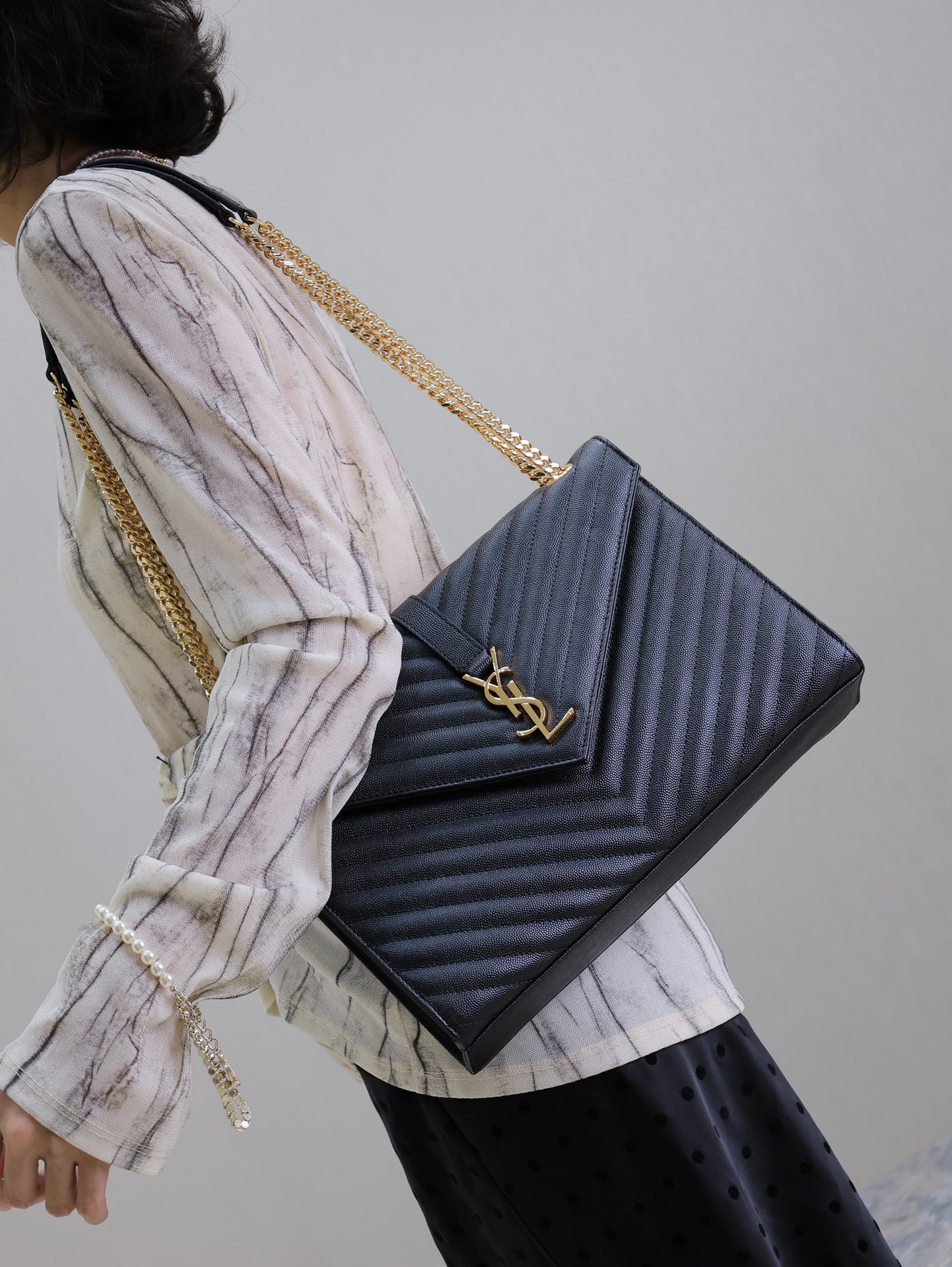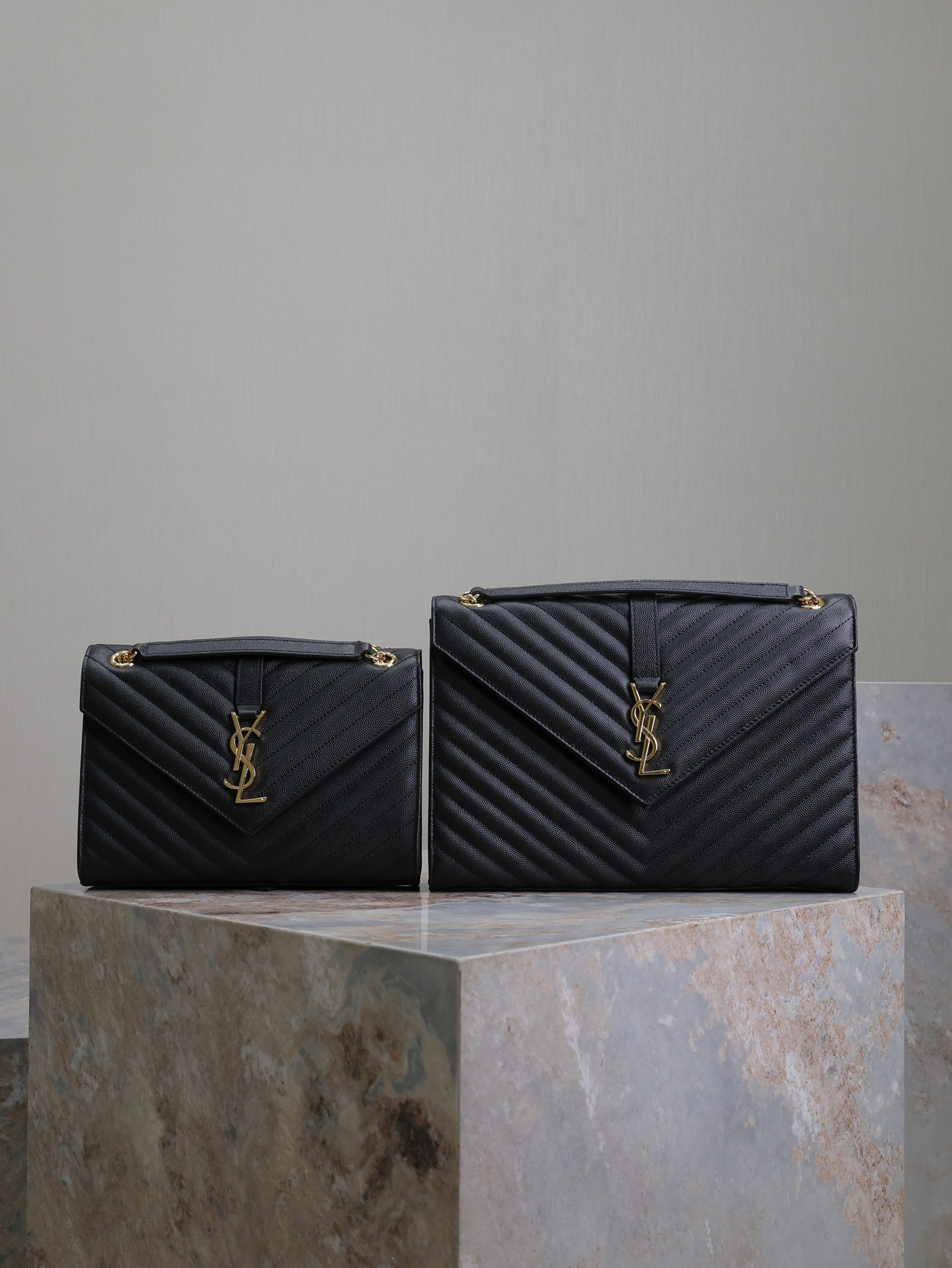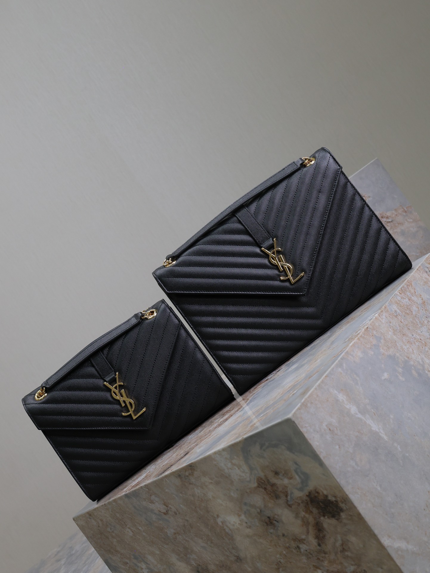 YSL Saint Laurent Monogram Envelope Bag Black Gold Buckle V Pattern 24/31cm