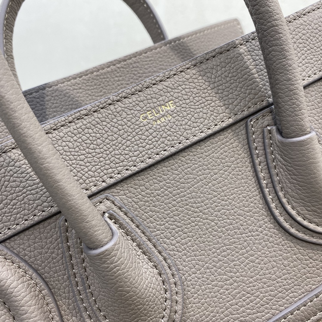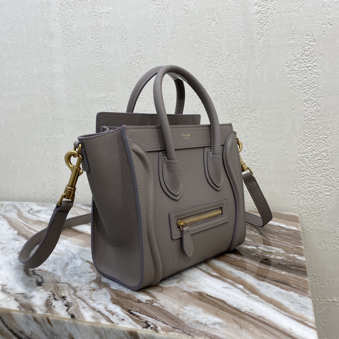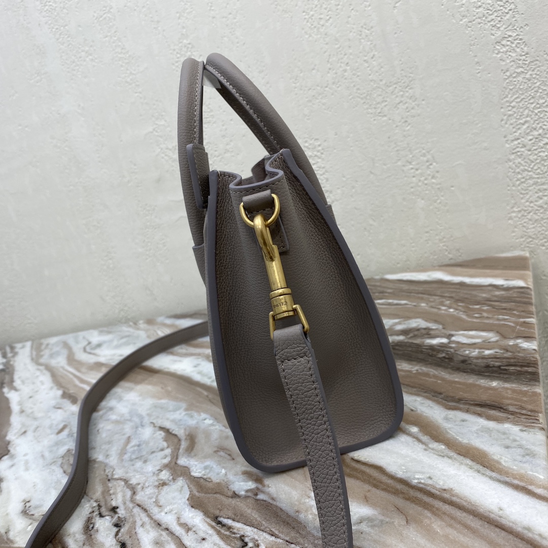 [Upgraded New Logo] CELINE Classic Luggage Bag Overseas Parallel Import [Small 20CM] LUGGAGE Two-Tone Calfskin Handbag/Crossbody Bag Top zipper closure. Simple flat interior pocket. Antique gold metal fittings