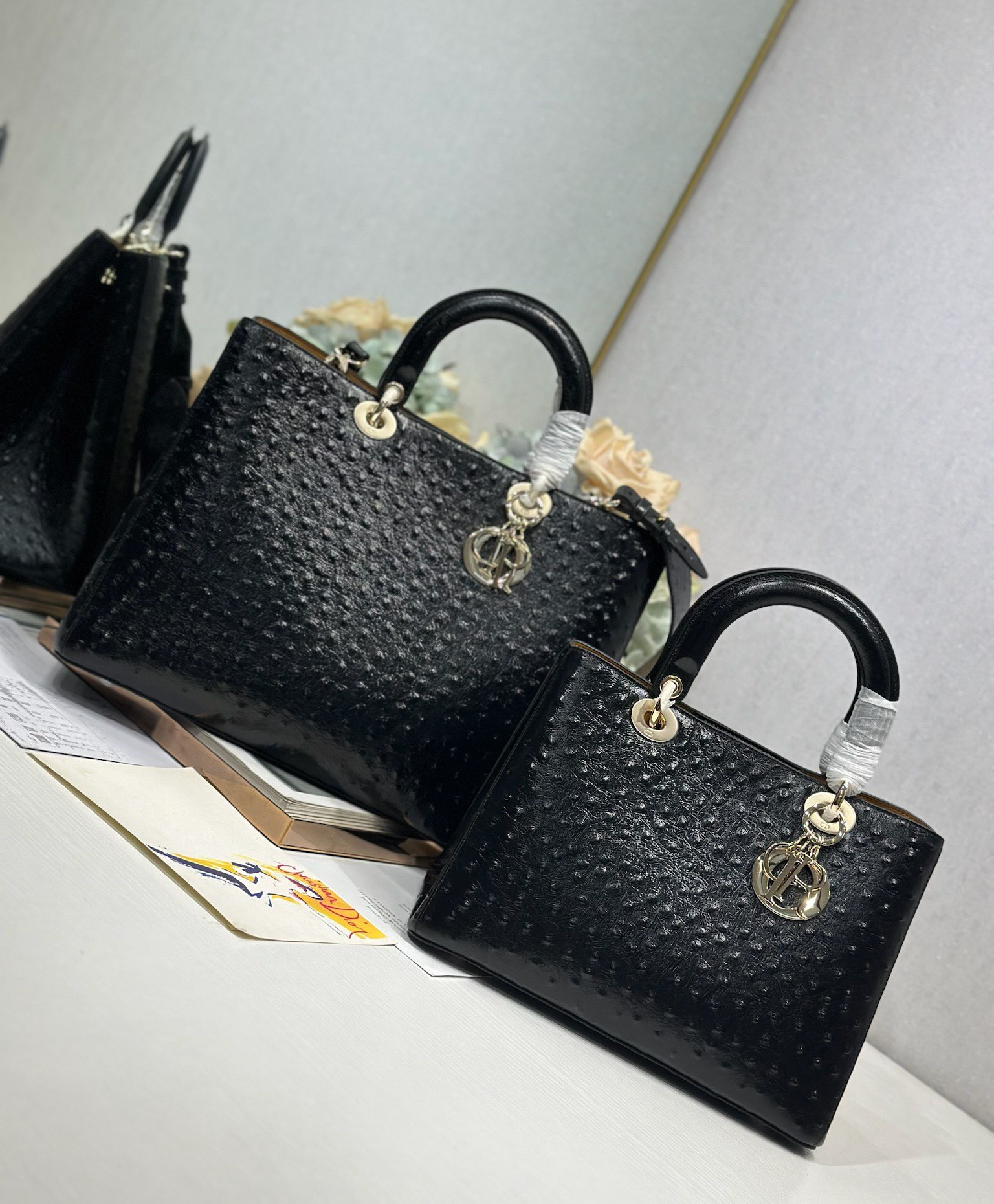 Original Title: Dior Toujours Handbag Black Ostrich Pattern Comparison of Sizes