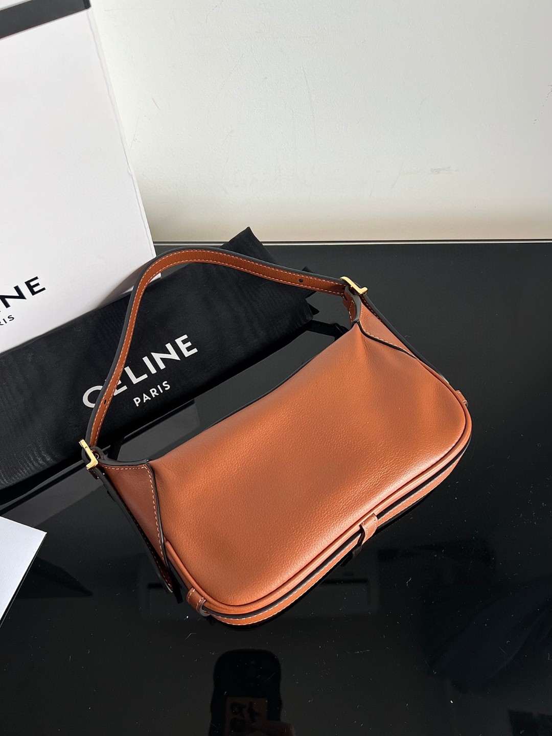 CELINE ROMY Mini Soft Calfskin Handbag [Original Factory Leather, Full Steel Hardware] Dimensions: 19 X 14 X 5cm. This model can fit larger smartphone models like the PLUS. Calfskin, calf suede lining, gold finish, shoulder or underarm carry and hand carry, 1 main zippered compartment, adjustable shoulder strap.