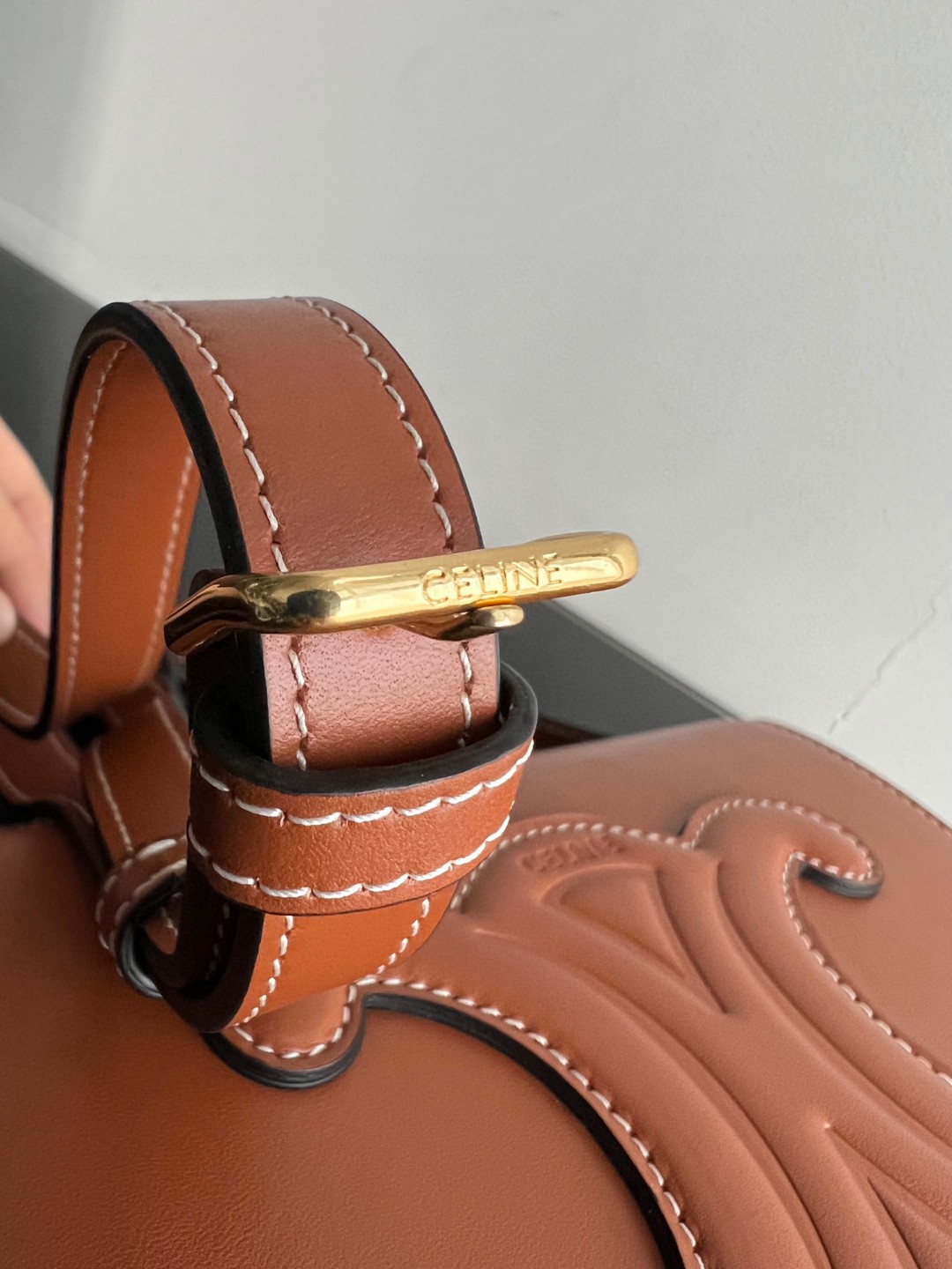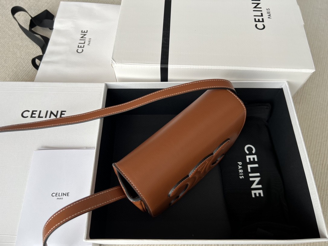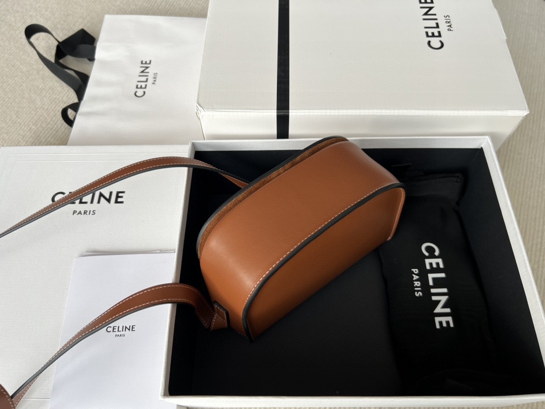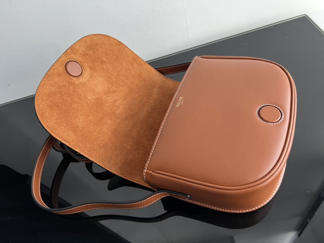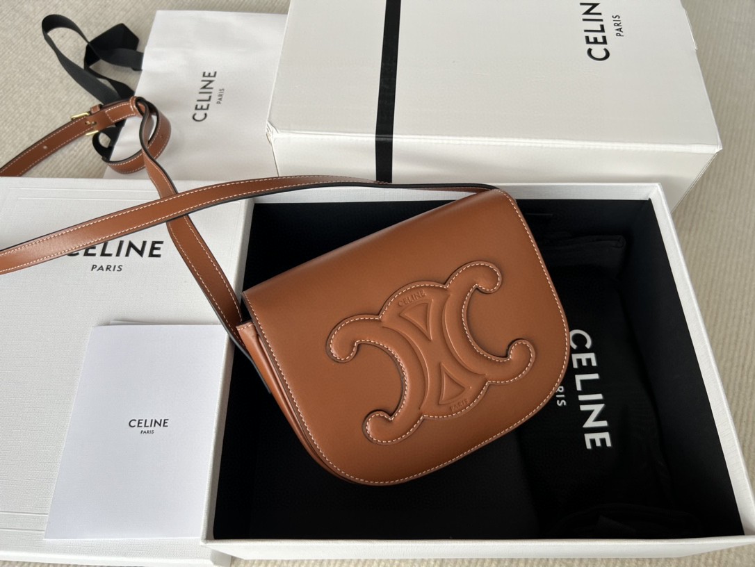 Celine Cuir FOLCO TRIOMPHE Smooth Calfskin Handbag, Full Leather Saddle, Dimensions: 18.5 X 15 X 7cm, Can Be Worn Crossbody or on the Shoulder, Magnetic Buckle Closure, Adjustable Strap