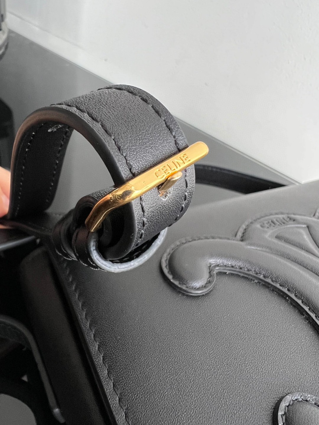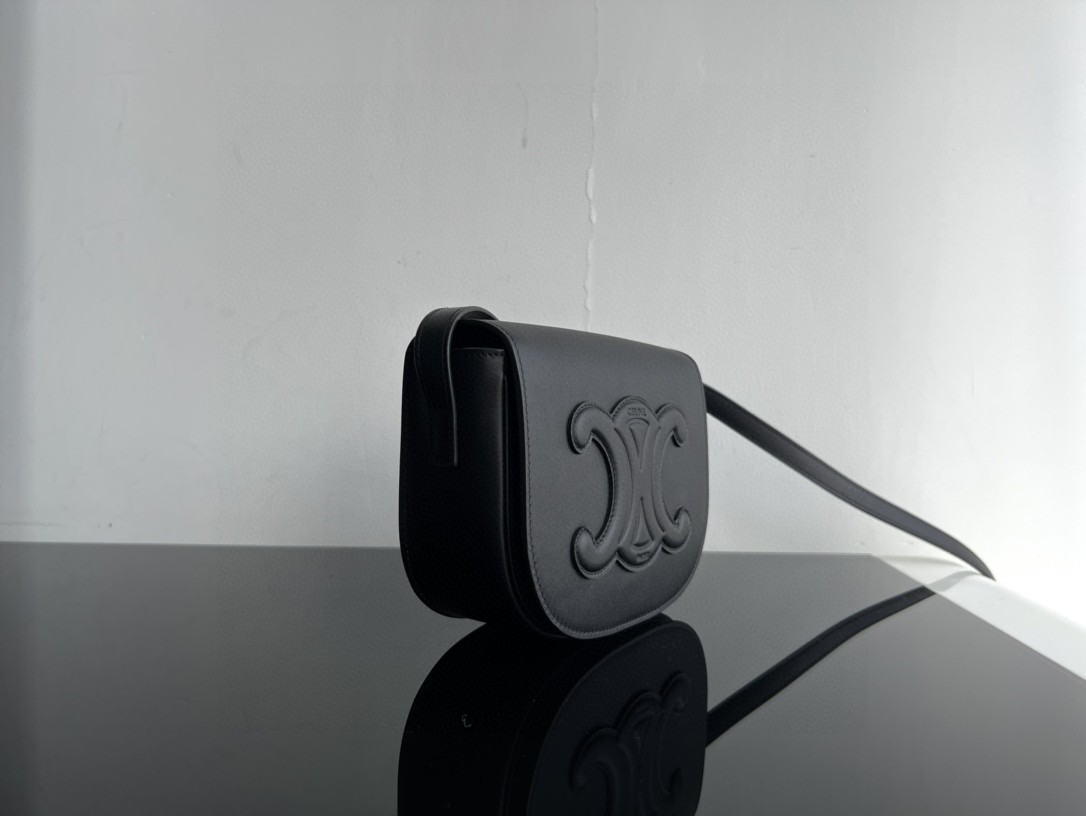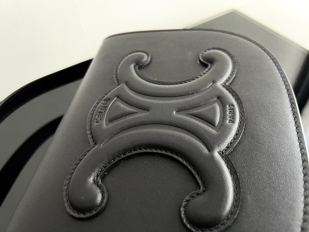 Celine Cuir FOLCO TRIOMPHE Smooth Calfskin Handbag, Full Leather Saddle, Dimensions: 18.5 X 15 X 7cm, Can Be Worn Crossbody or on the Shoulder, Magnetic Buckle Closure, Adjustable Strap