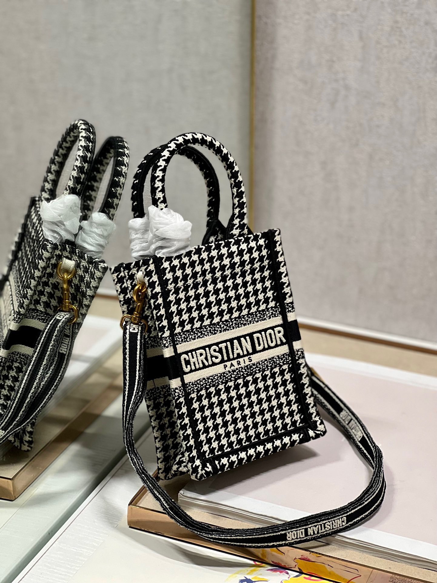 Dior Mini BOOK TOTE phone pouch (Houndstooth)