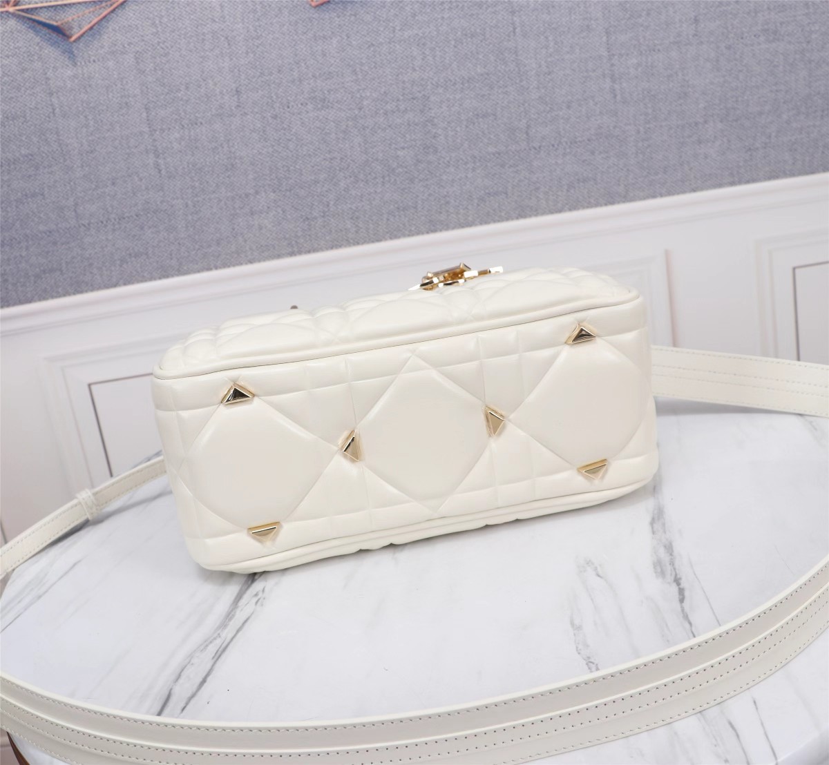 White calfskin leather quilted oversized cannage pattern