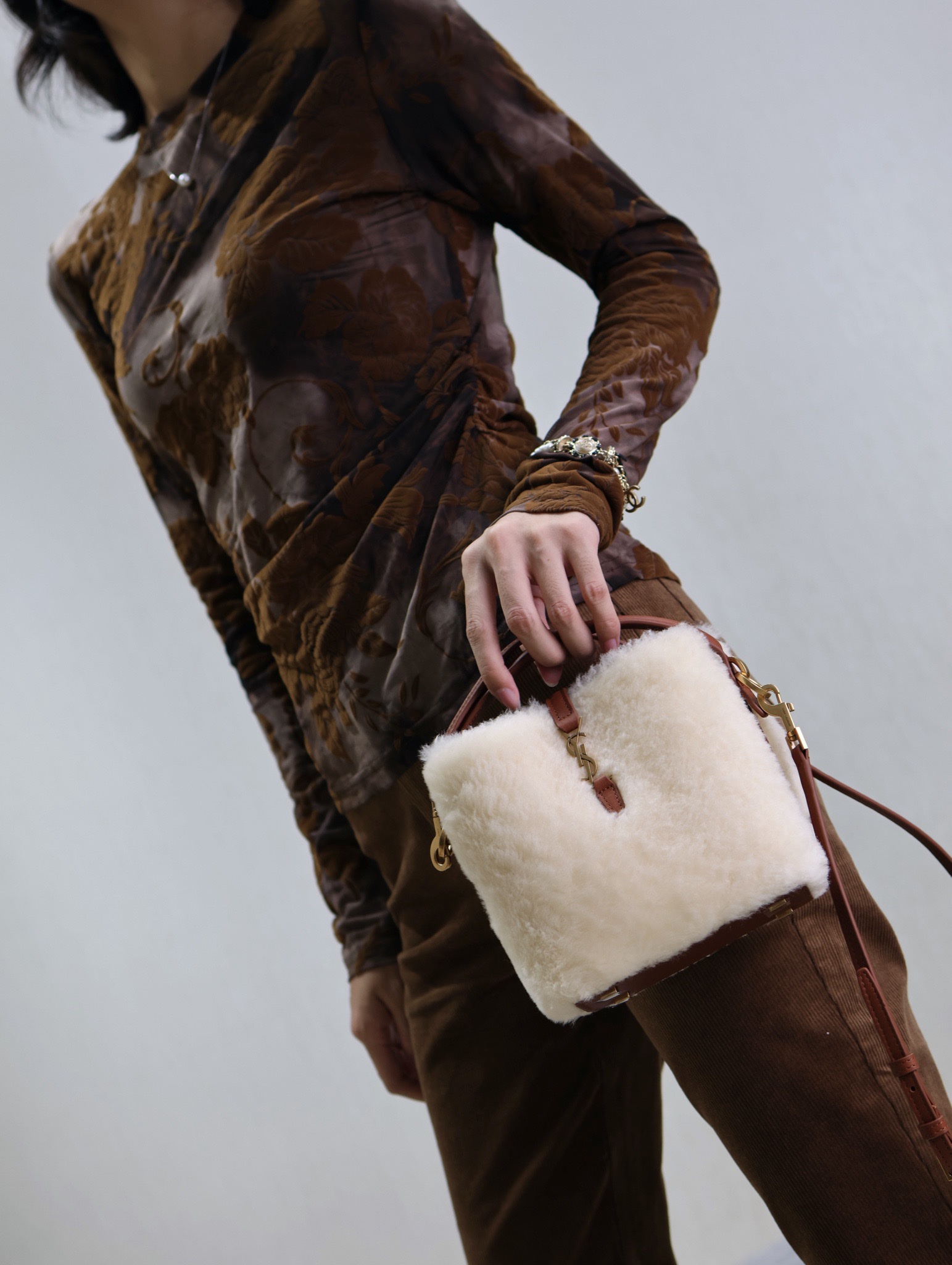 YSL Saint Laurent LE 37 Bucket Bag Lamb Wool 15/20cm