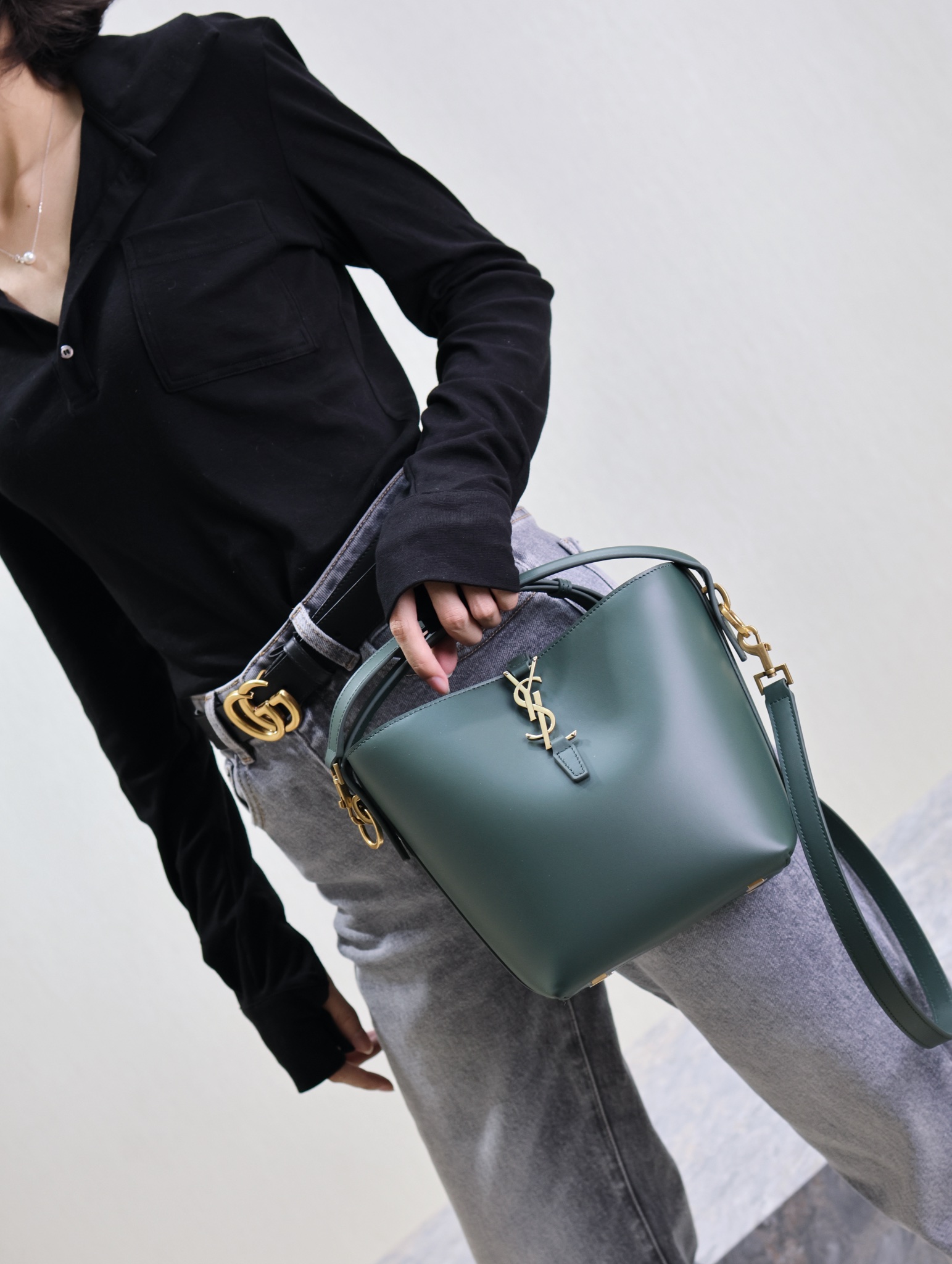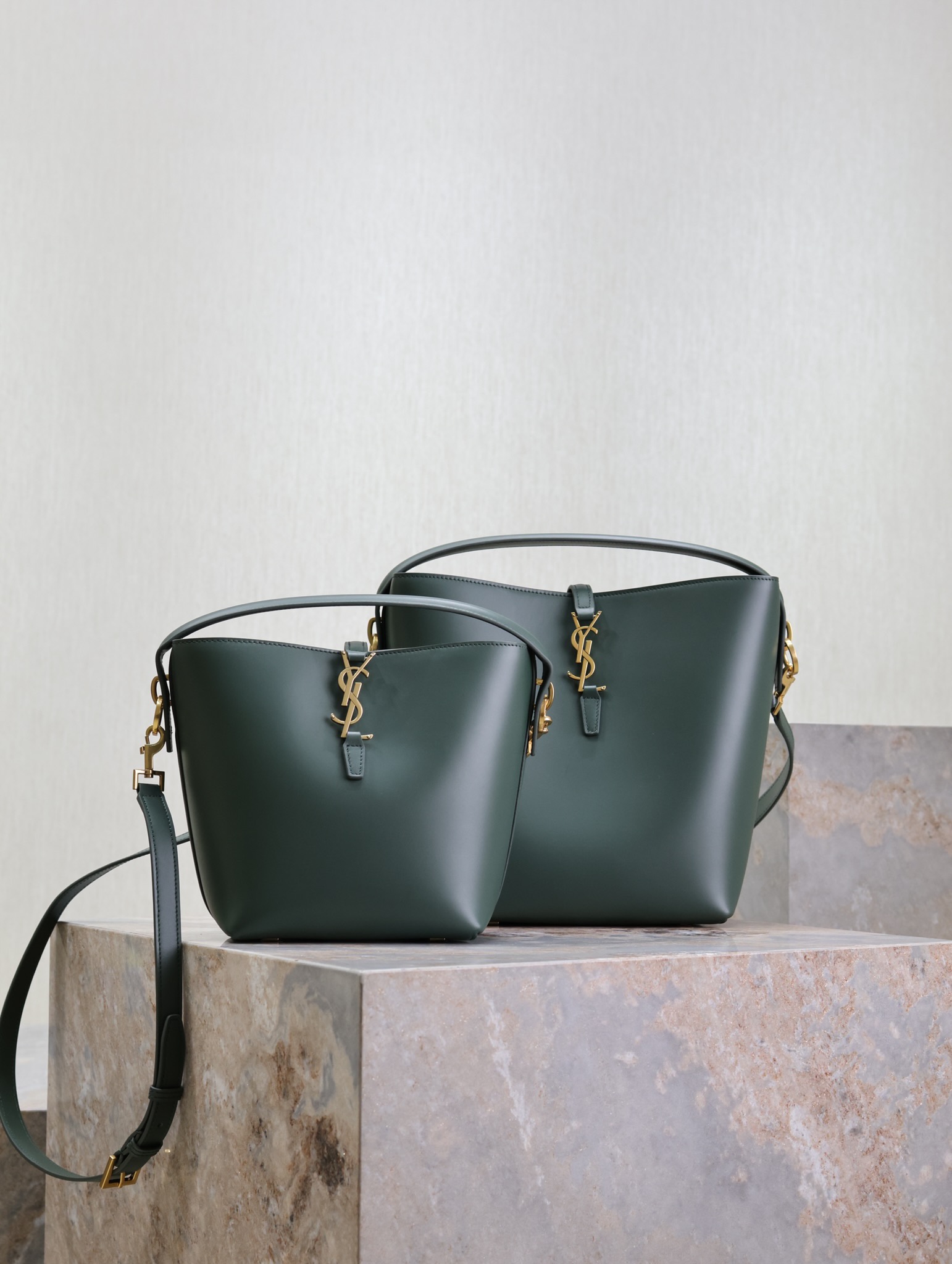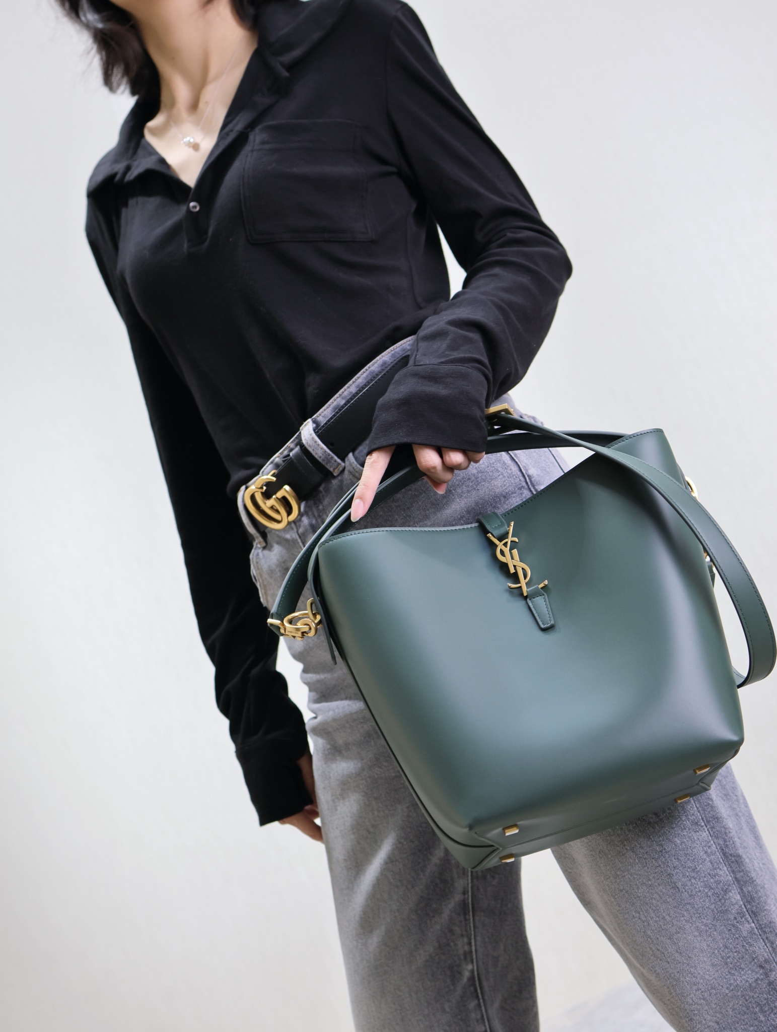 YSL Saint Laurent LE 37 Bucket Bag in Dark Green, 20/26cm