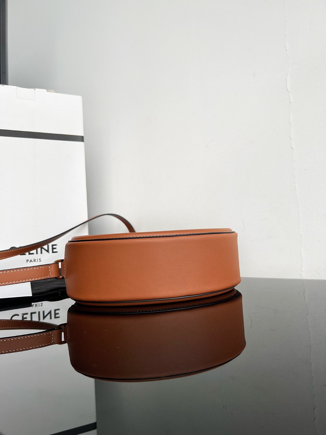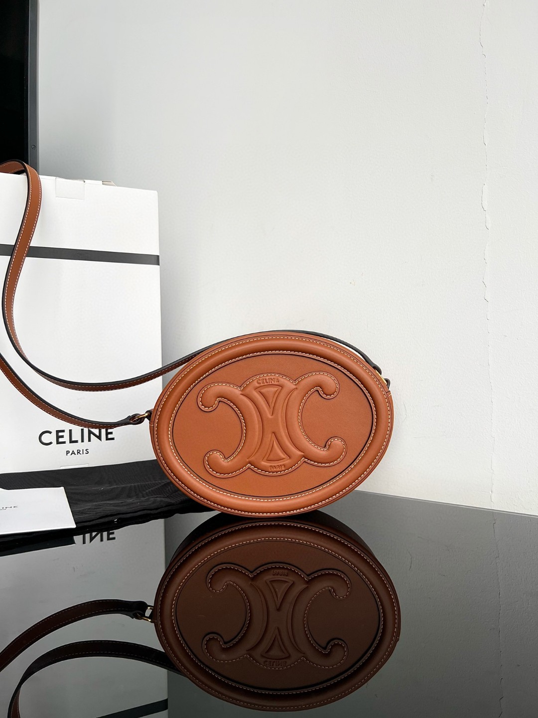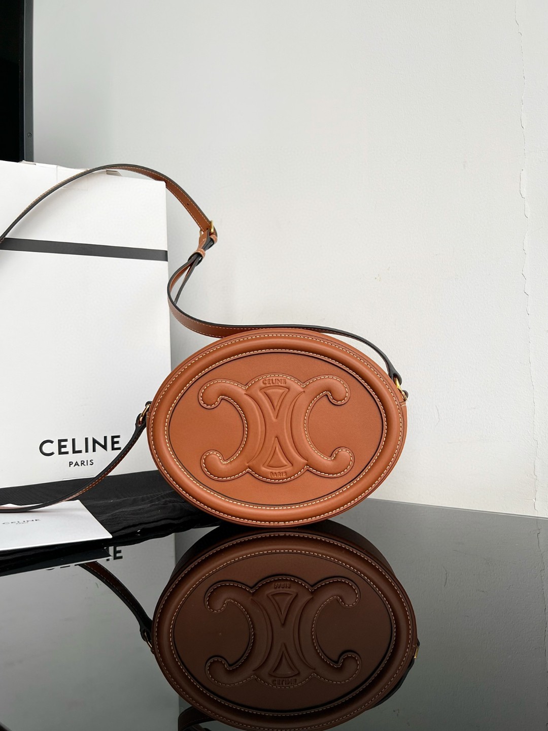 CELINE OVAL CUIR TRIOMPHE round box, original factory leather, top-grade full steel hardware, smooth leather oval handbag,