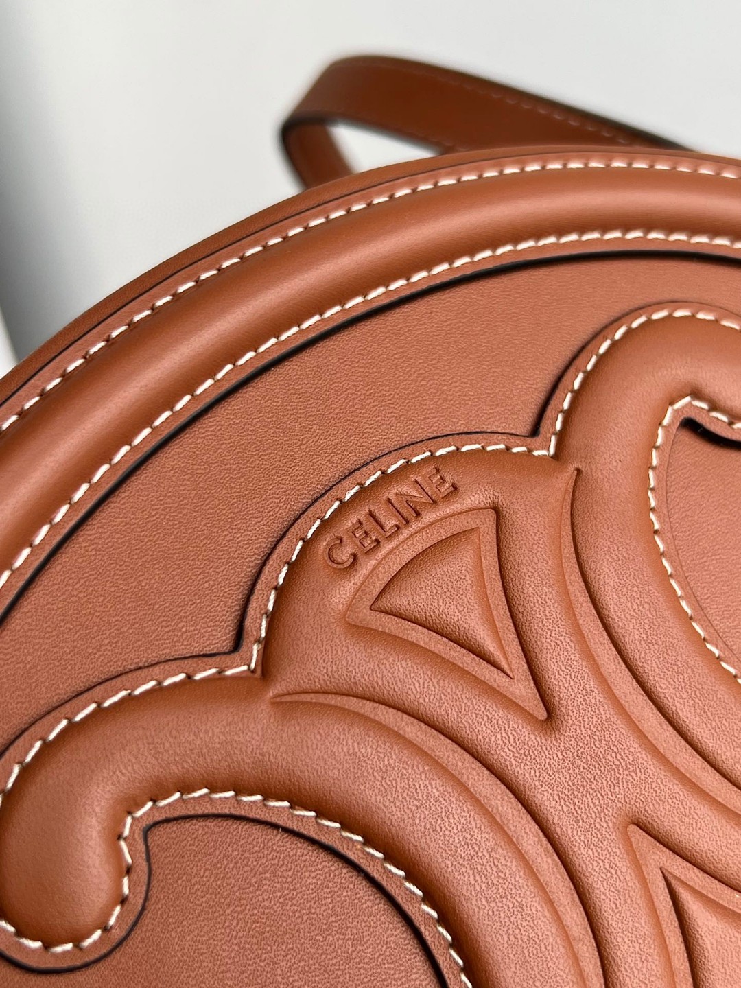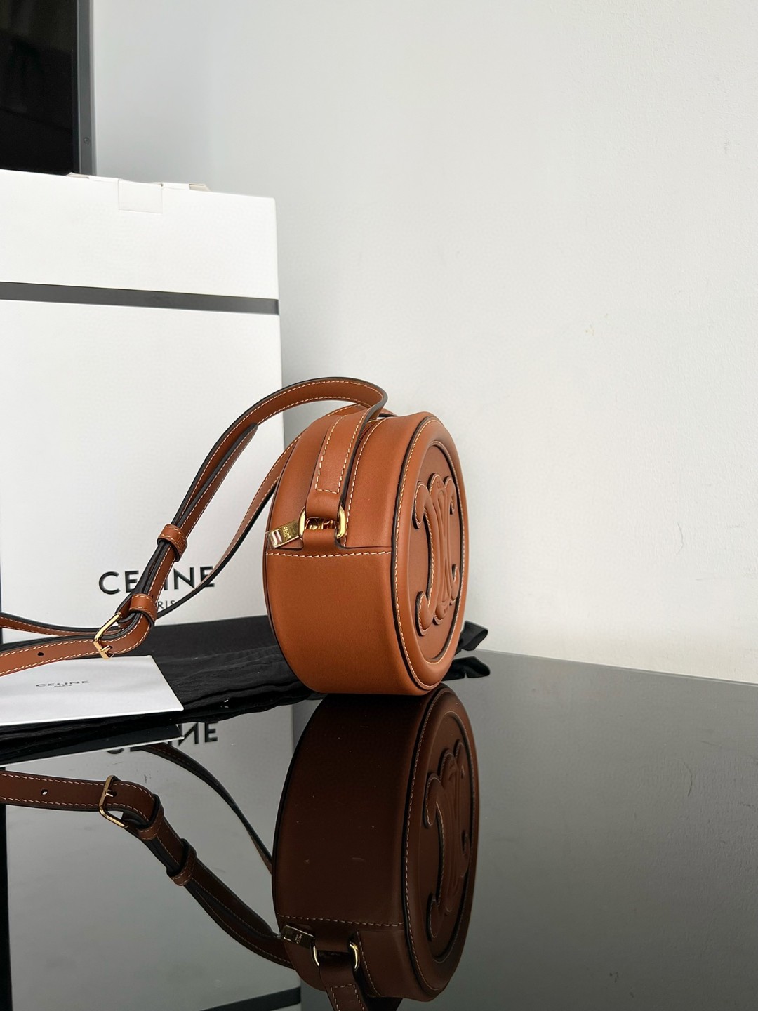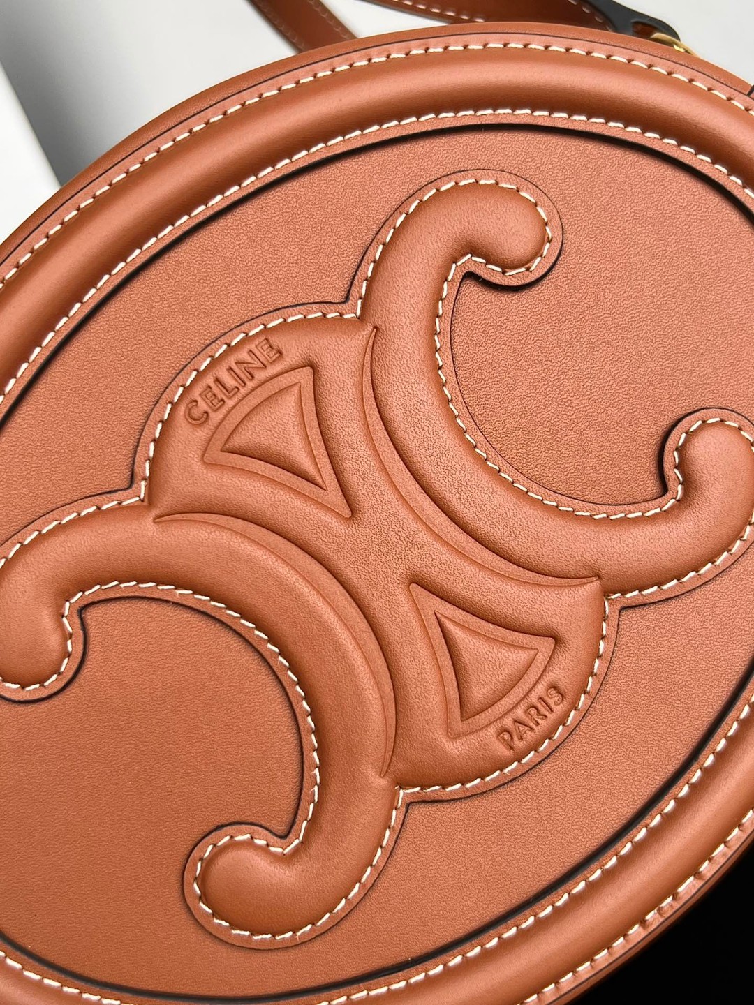 CELINE OVAL CUIR TRIOMPHE round box, original factory leather, top-grade full steel hardware, smooth leather oval handbag,