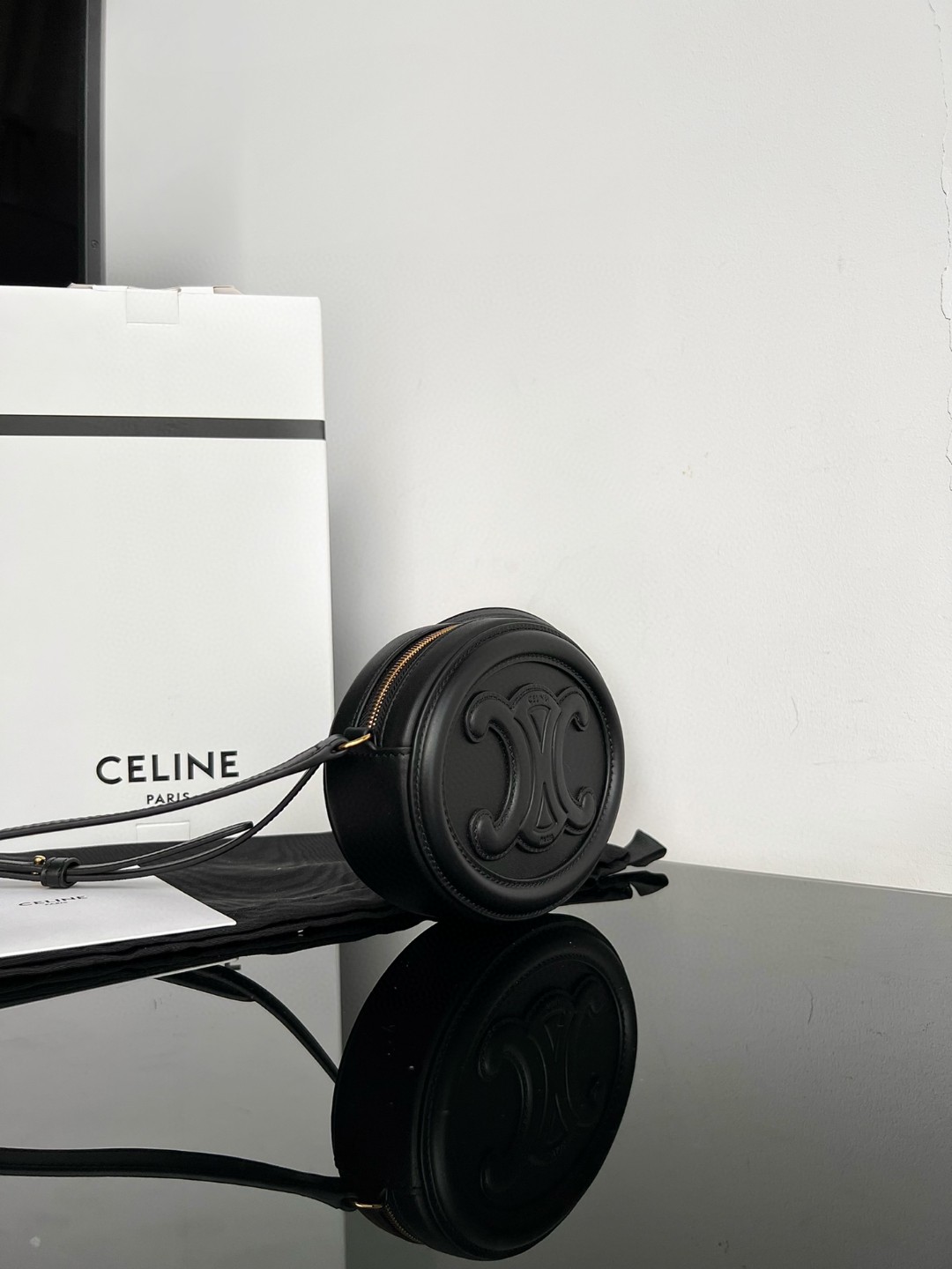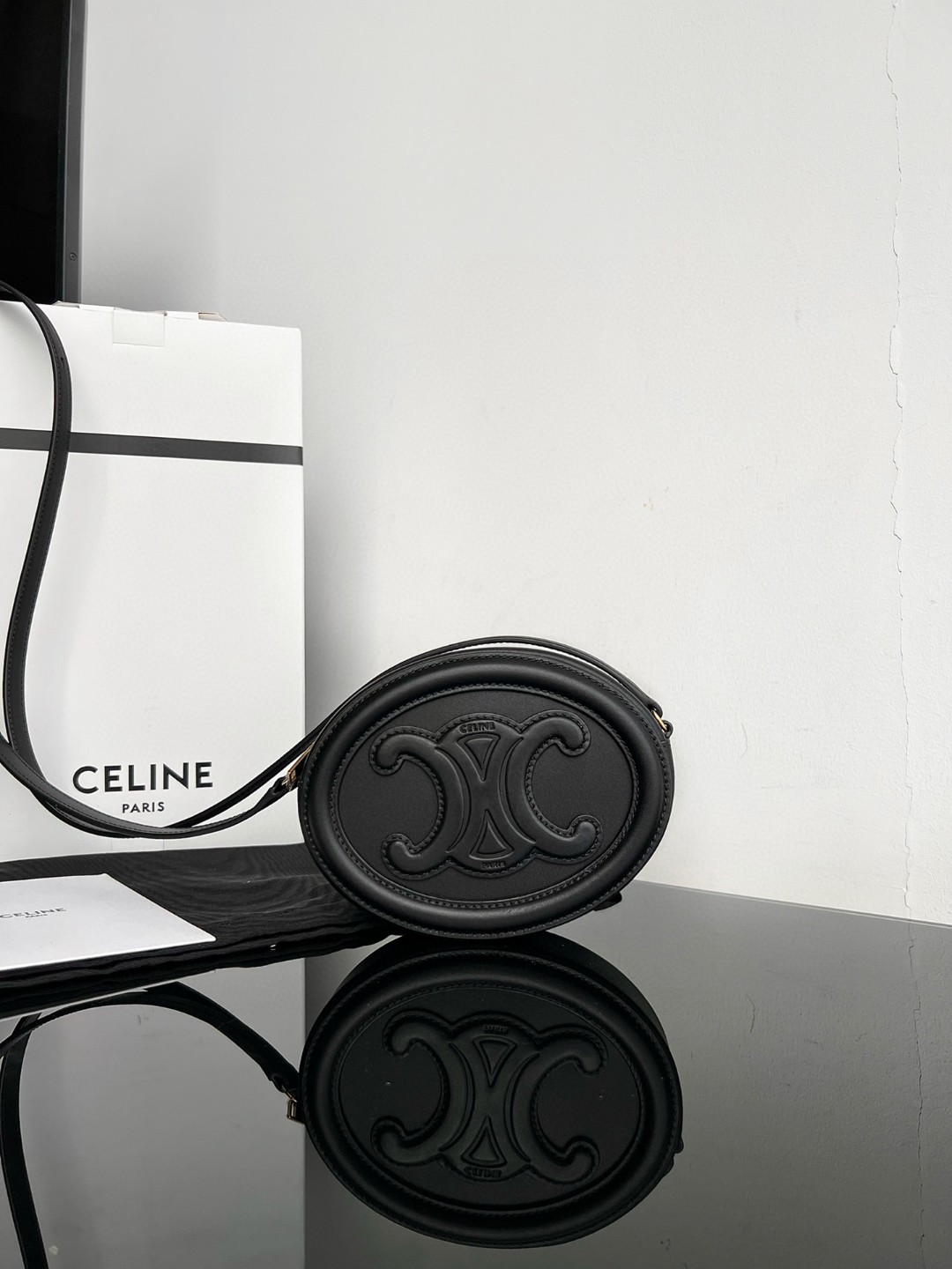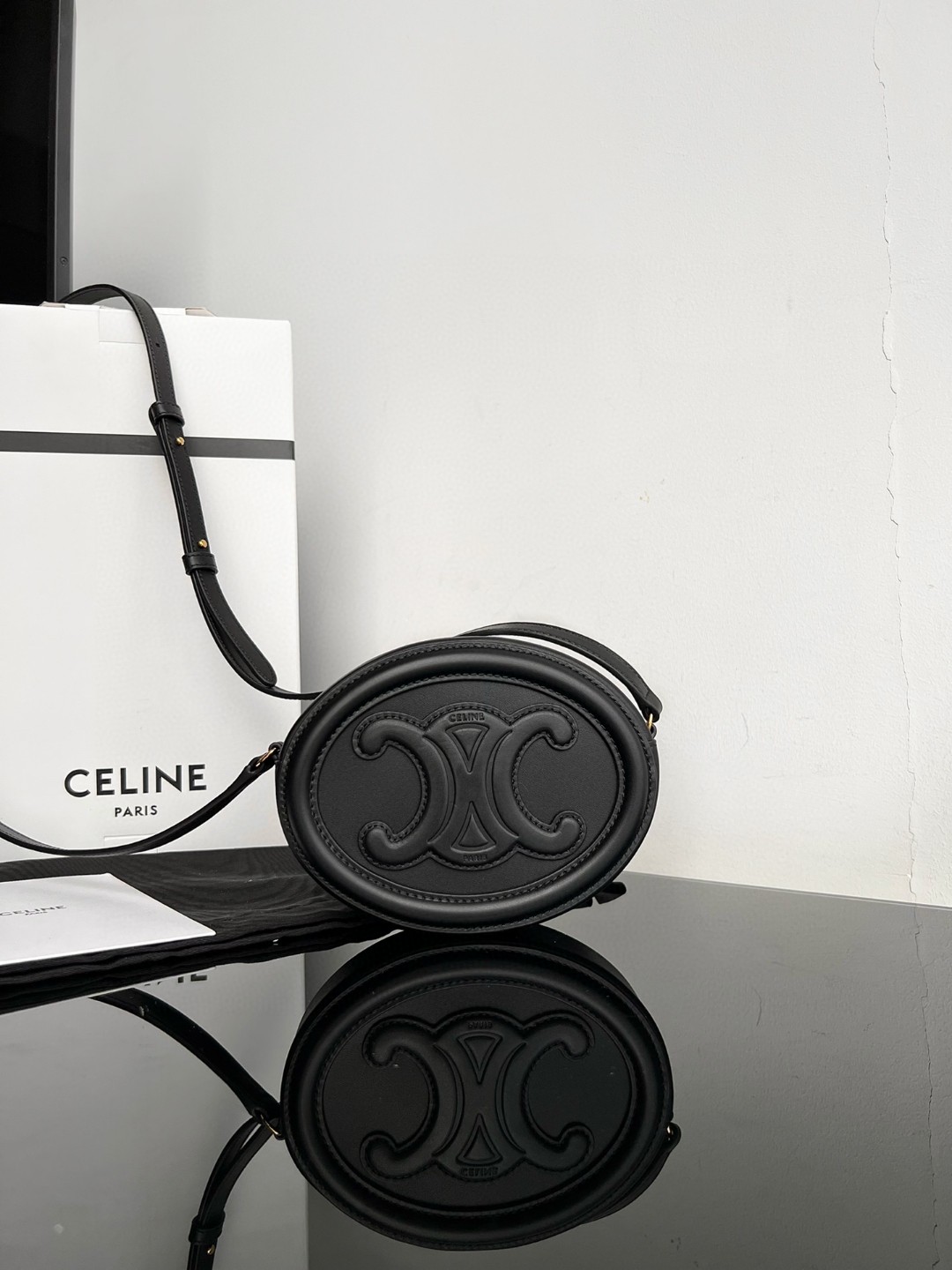 Large CELINE OVAL CUIR TRIOMPHE Round Box, Original factory leather, top-grade full steel hardware, smooth cowhide leather oval handbag,