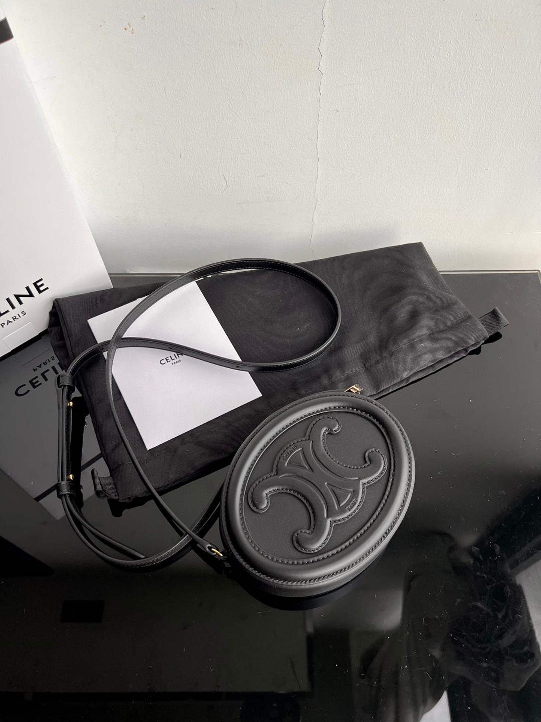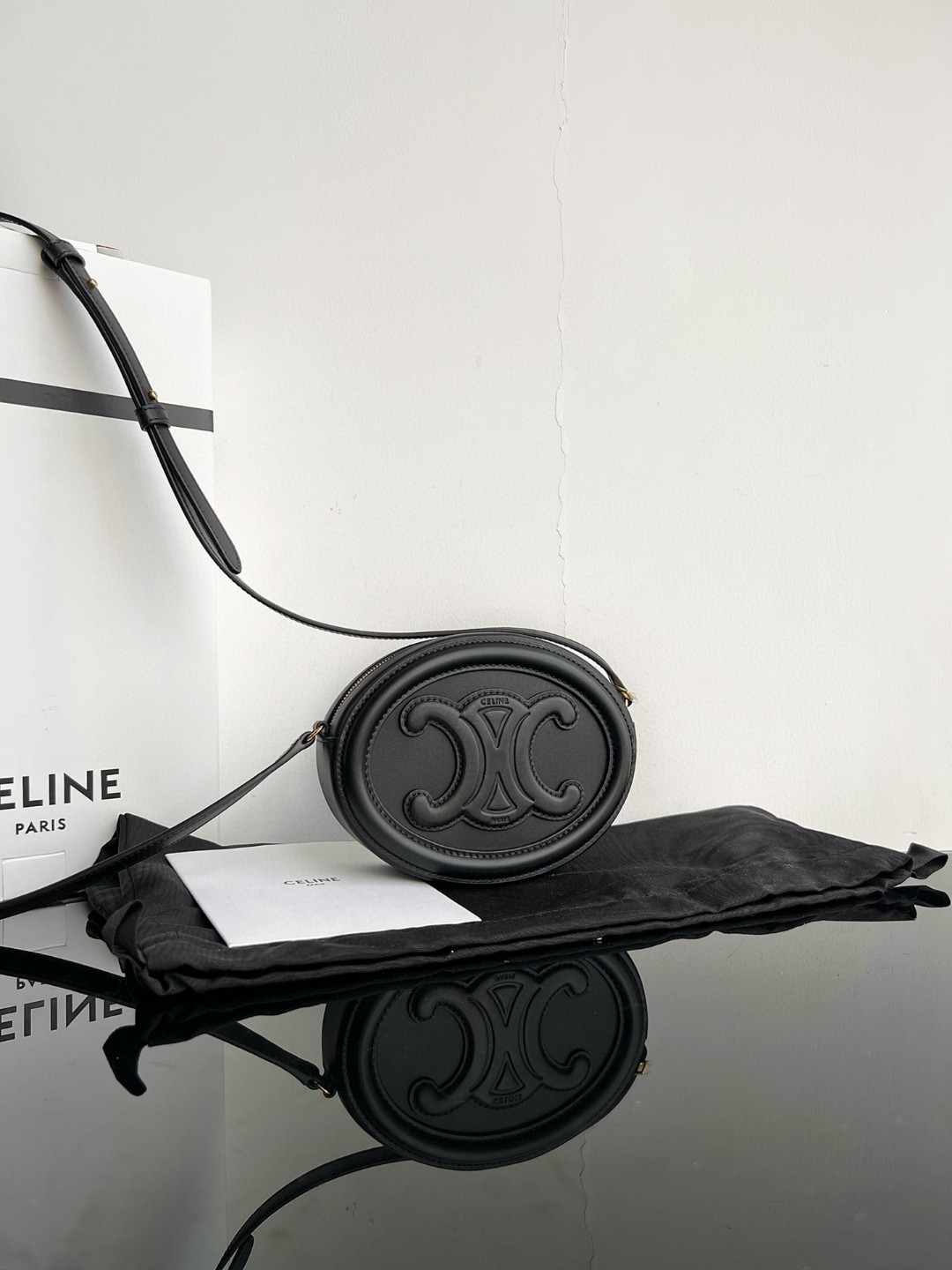 Large CELINE OVAL CUIR TRIOMPHE Round Box, Original Factory Leather, Top-Grade Full Steel Hardware, Smooth Calfskin Leather Oval Handbag,
