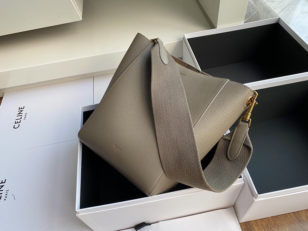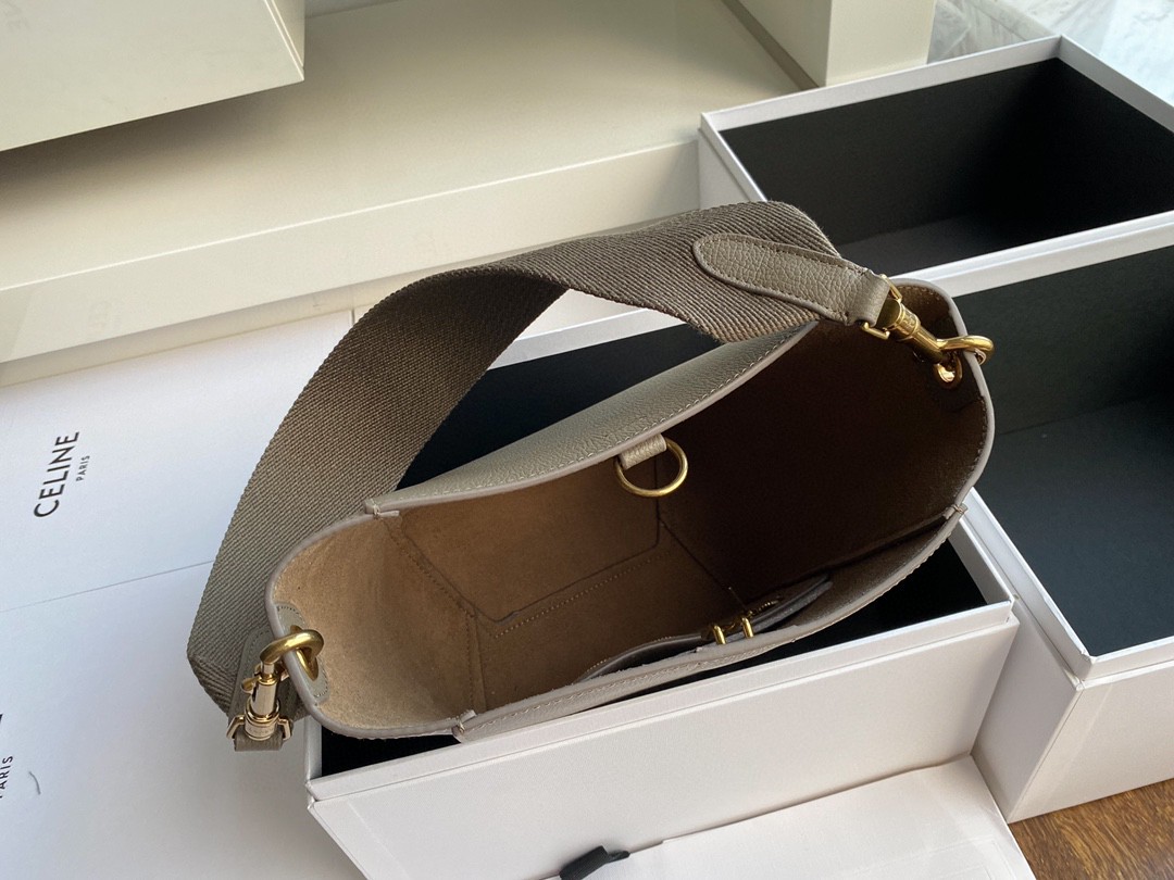 CELINE suau sangle Small Soft Grain Calfskin Lining Matte Shoulder Bucket Bag Detachable Strap Wearing Effect is Excellent! Minimalist style has always been its representative. Dimensions: 17.5x24.5x12..