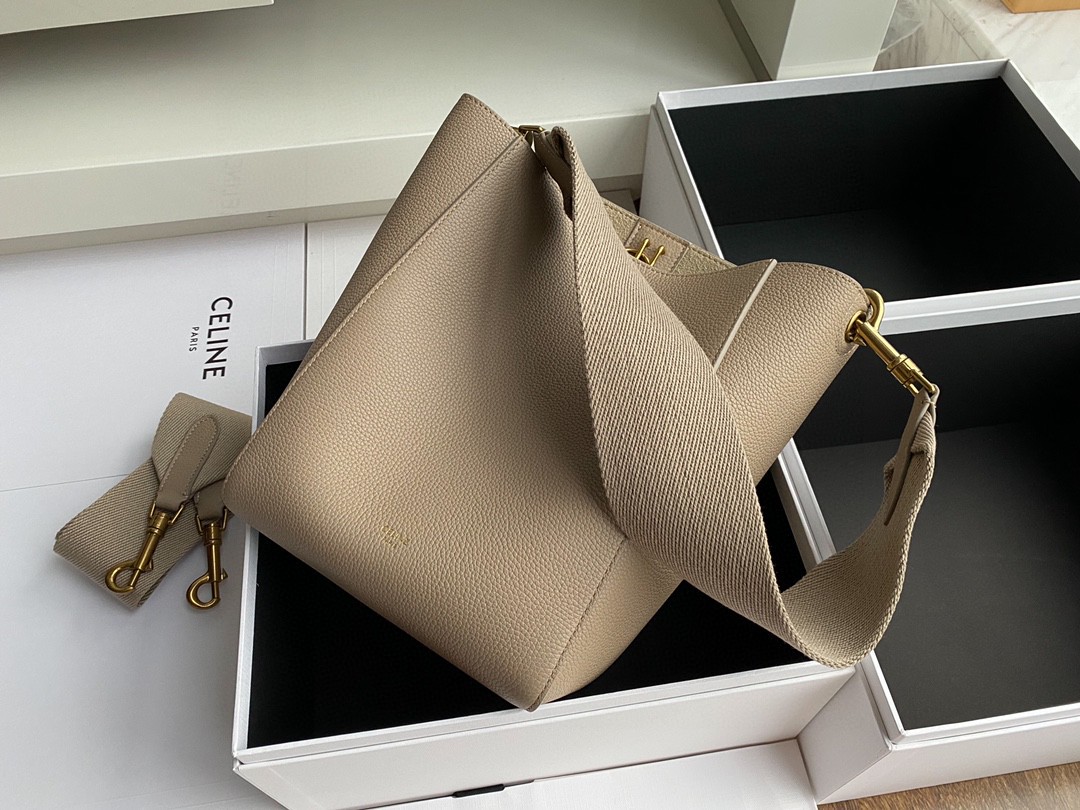 CELINE suau sangle small soft grained calfskin interior matte shoulder bucket bag detachable shoulder strap looks great when worn minimalist style has always been its representative dimensions 17.5x24.5x12