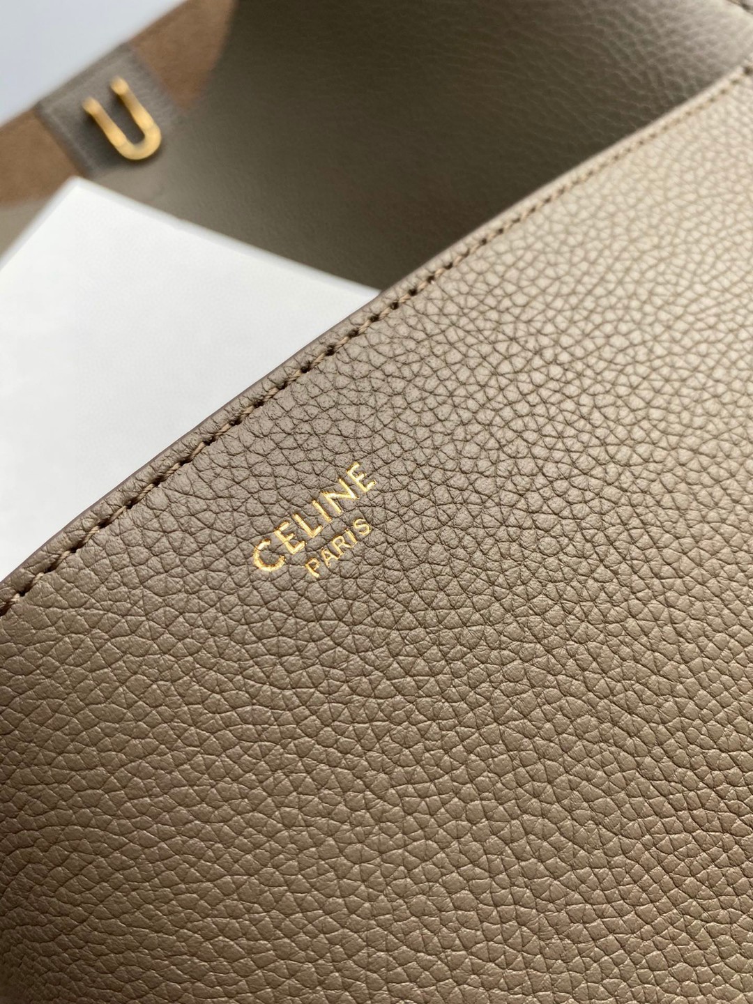 CELINE Sangle Seau Bucket Bag. Genuine factory original leather, Togo calfskin using stitching craftsmanship, inner suede lining, thick shoulder strap woven from wool, includes a small hidden compartment inside, and 4 large external pockets, practical and stylish, completely irresistible. Dimensions: Large 23×33×17.
