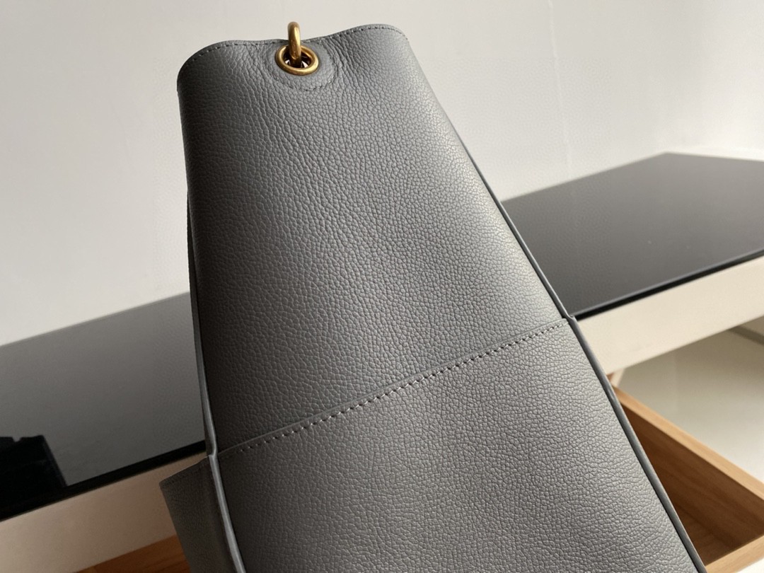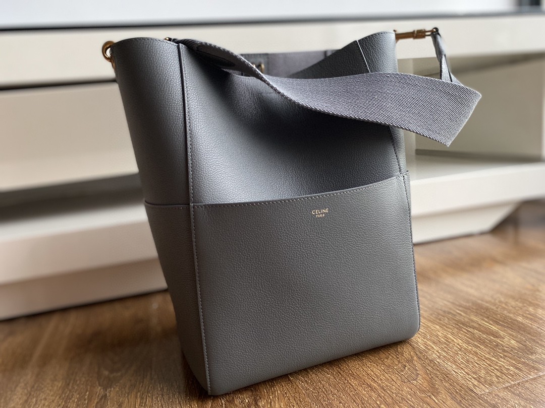 𝐂𝐄𝐋𝐈𝐍𝐄 Sangle Seau Bucket Bag. Genuine factory leather, Togo calfskin, using stitching craftsmanship, with a suede interior. The thick strap is woven from wool, featuring a small hidden compartment inside and 4 large pockets on the outside. Practical and stylish, completely irresistible. Dimensions: Large 23✖️33✖️17..