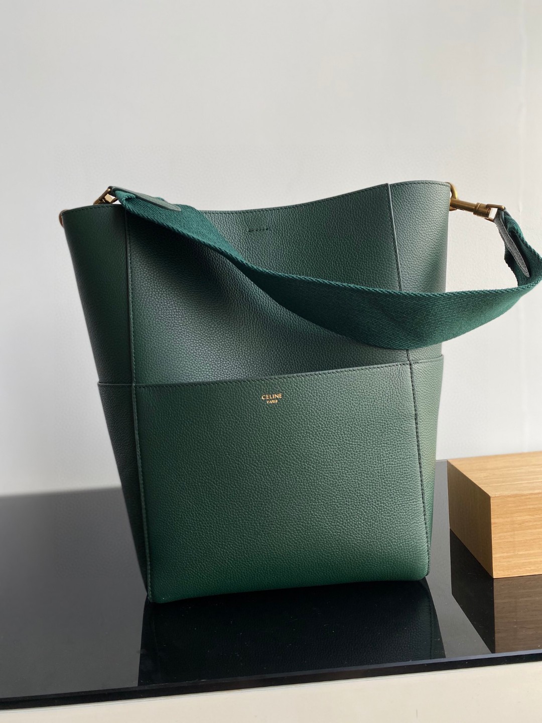 𝐂𝐞𝐥𝐢𝐧𝐞 Sangle Seau Bucket Bag. Genuine factory original leather, Togo calfskin using stitching craftsmanship, inner suede lining, thick shoulder strap woven from wool, featuring a small hidden compartment inside and four large pockets on the outside. Practical and stylish, completely irresistible. Dimensions: Large 23✖️33✖️17