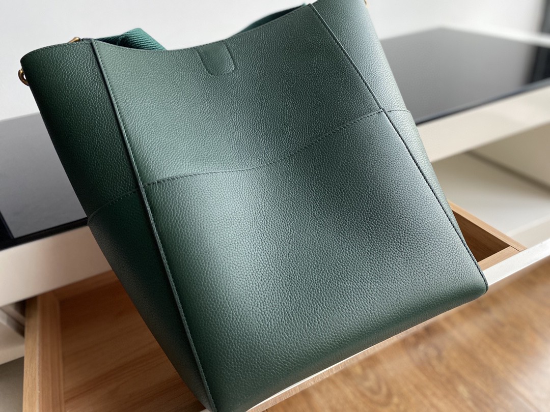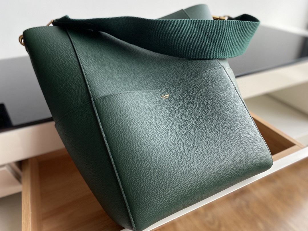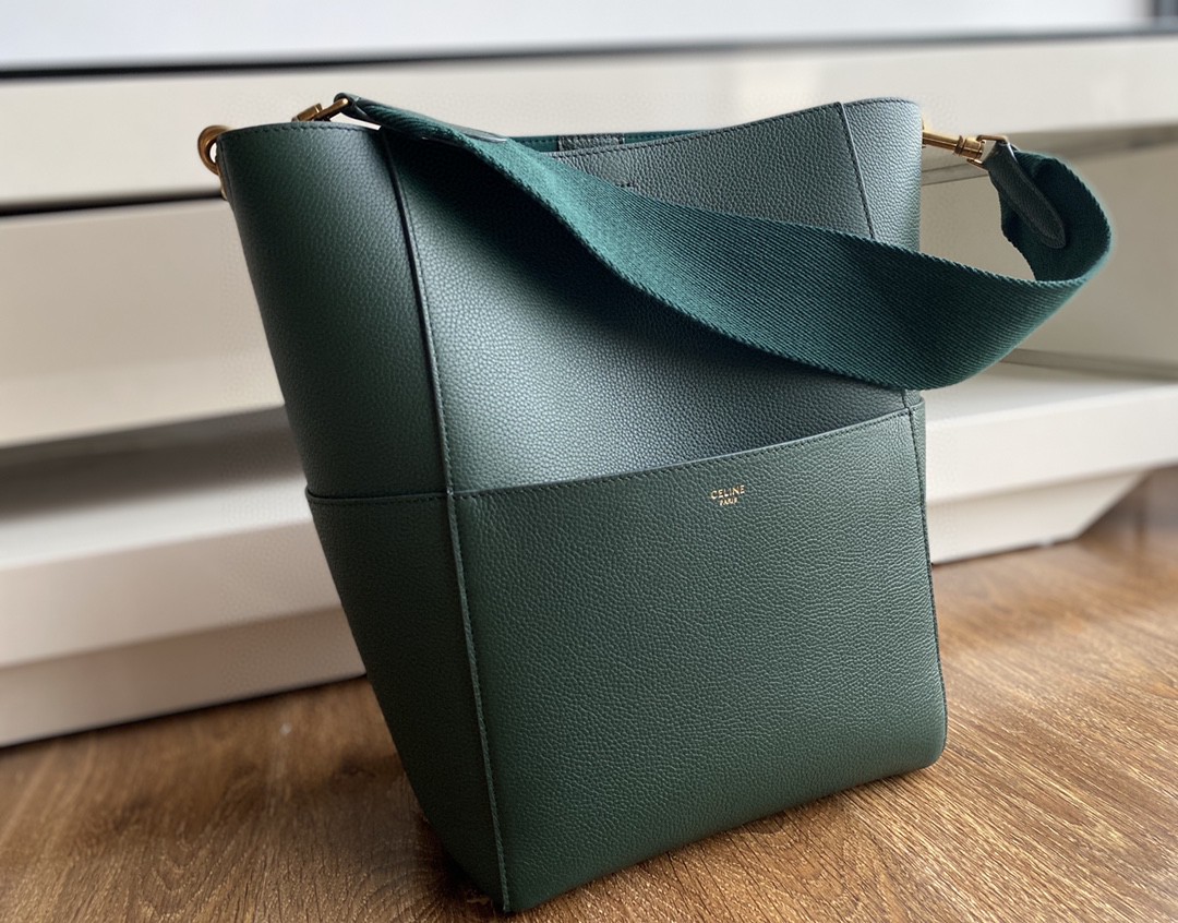 𝐂𝐞𝐥𝐢𝐧𝐞 Sangle Seau Bucket Bag. Genuine factory leather, Togo calfskin using stitching craftsmanship, inner suede lining, thick shoulder strap woven from wool, featuring a small hidden compartment inside and 4 large pockets on the outside. Practical and stylish, completely irresistible. Dimensions: Large 23✖️33✖️17