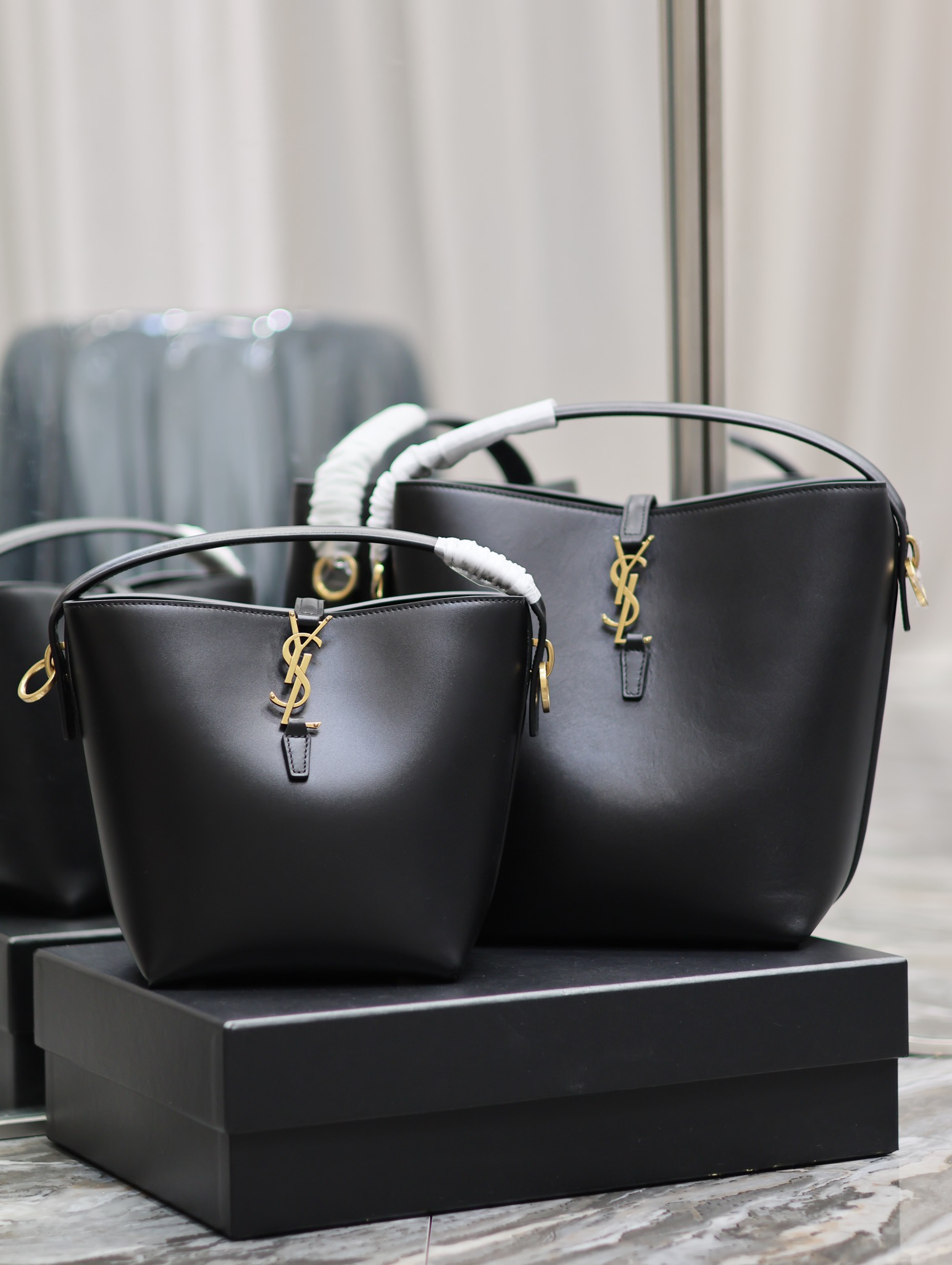 YSL Saint Laurent LE 37 Bucket Bag Black Gold Hardware Calfskin 20/26cm