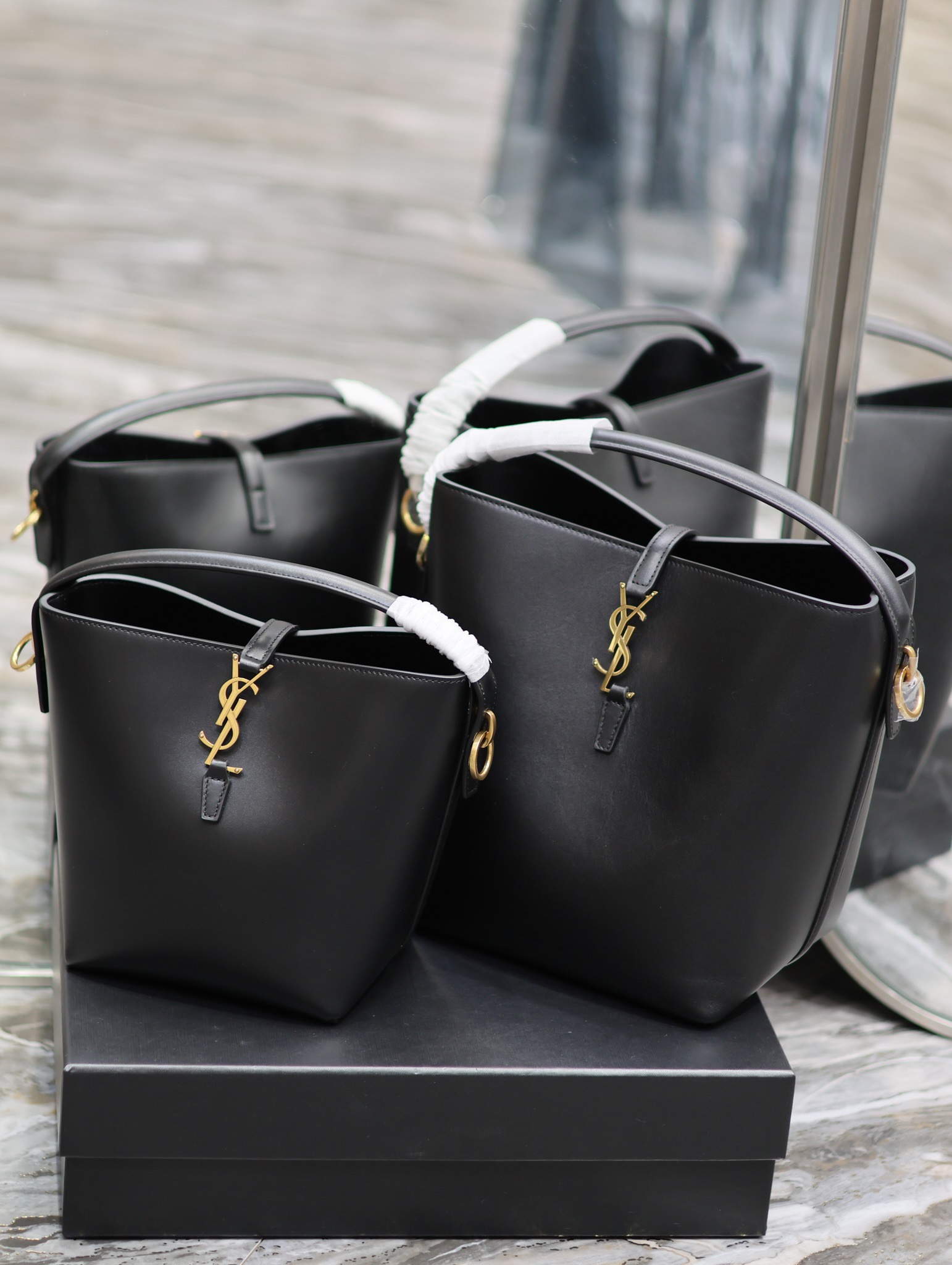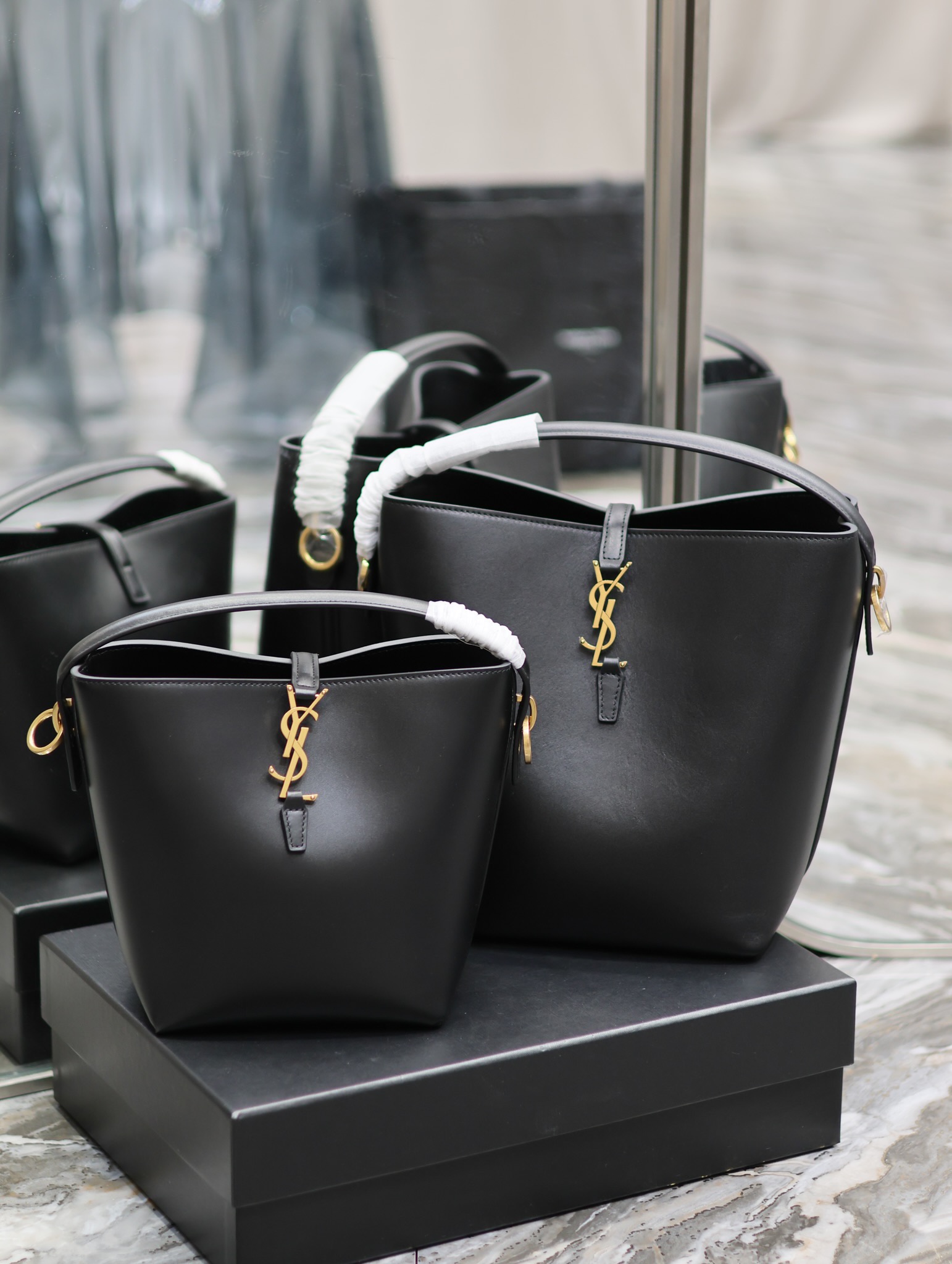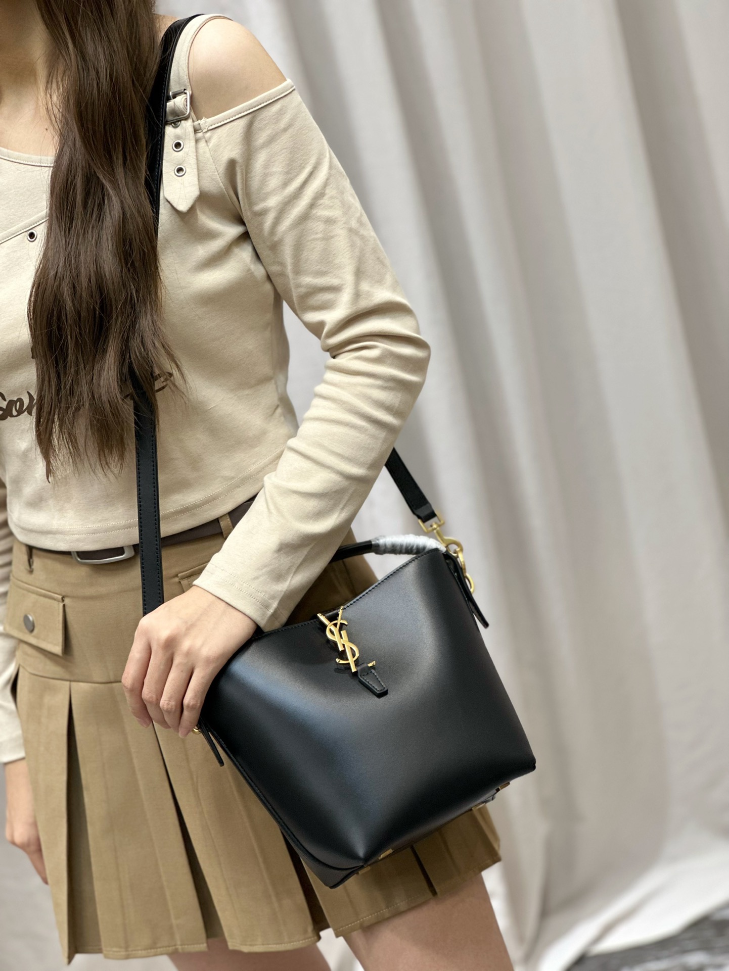 YSL Saint Laurent LE 37 Bucket Bag Black Gold Buckle Calfskin 20/26cm