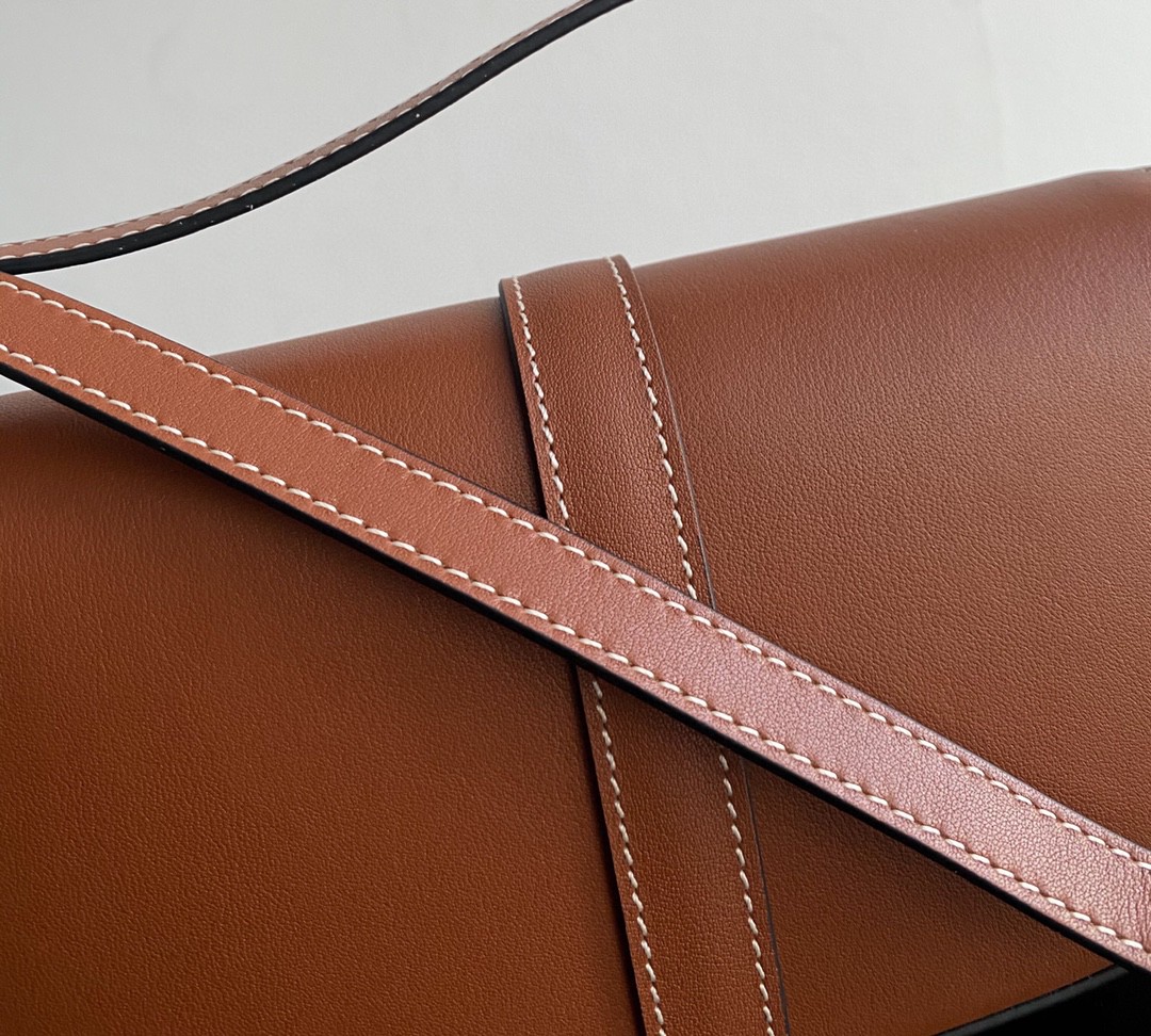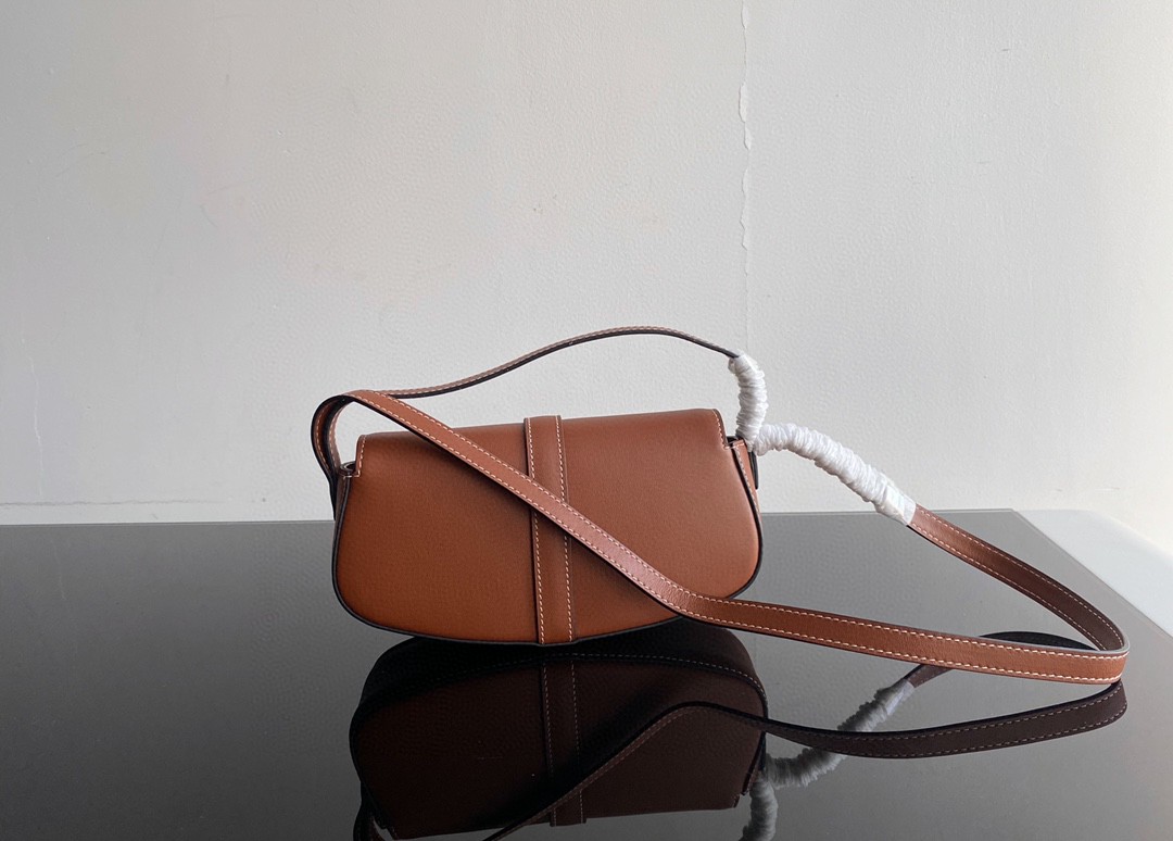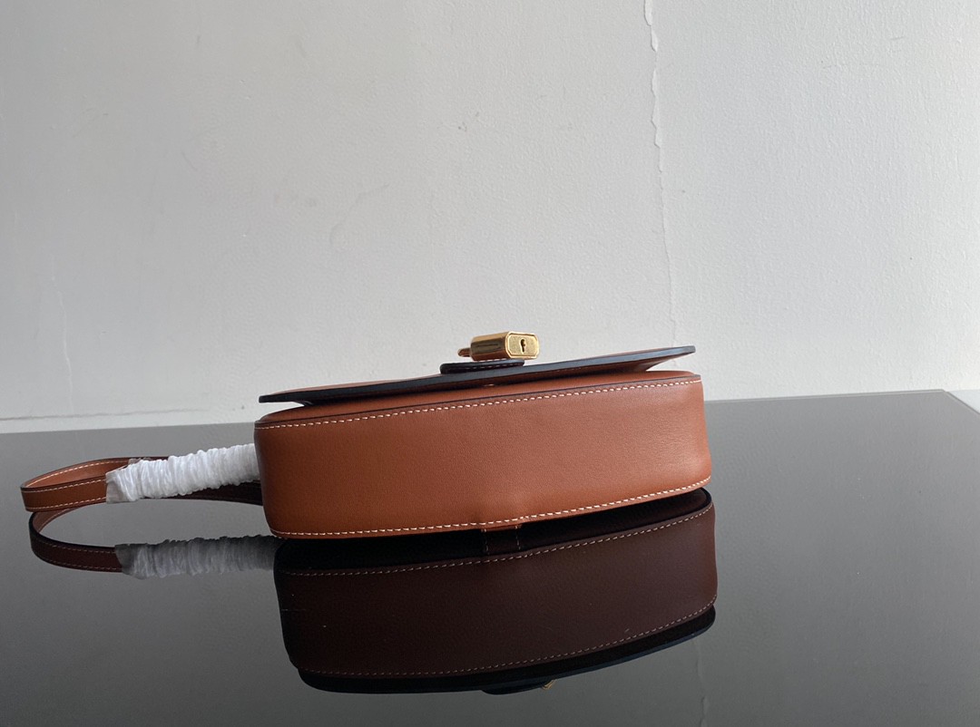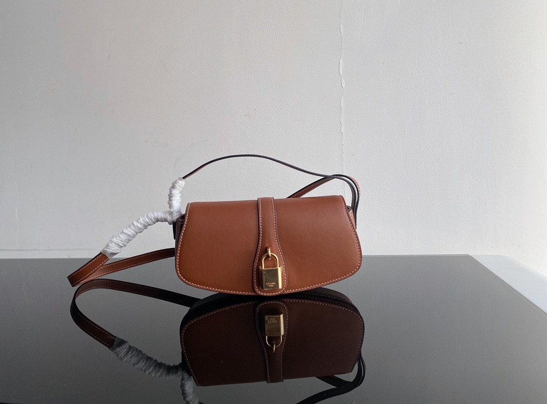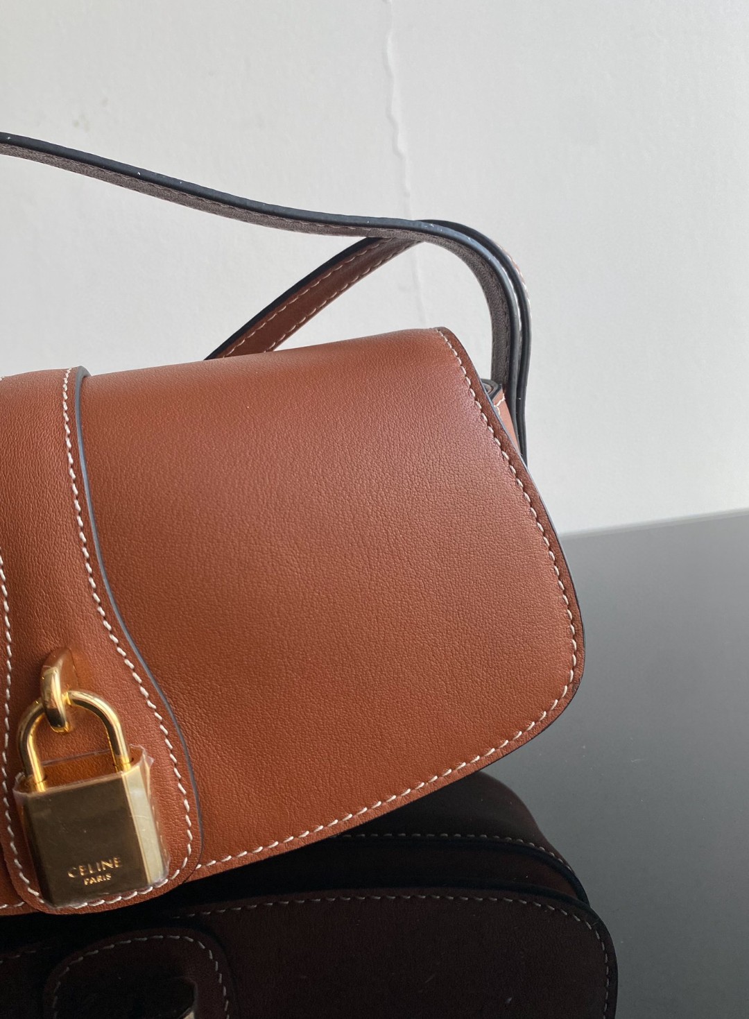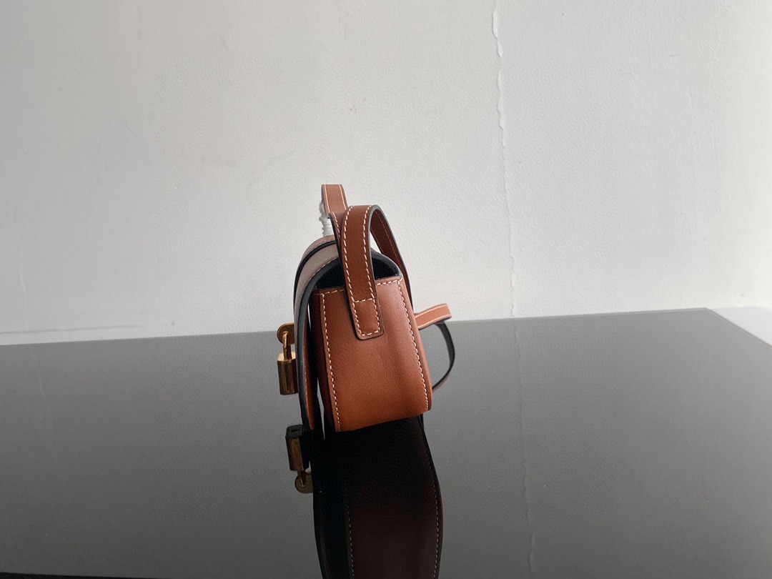 CELINE mini Tabou Clutch on Strap Double Handle Lock Bag TRIOMPHE Canvas Cowhide Fabric Lining Accented Golden Hardware Lock. The bag features one long and one short leather strap, non-adjustable, can be carried by hand or on the shoulder. Dimensions: 18 X 8 X 5 cm..