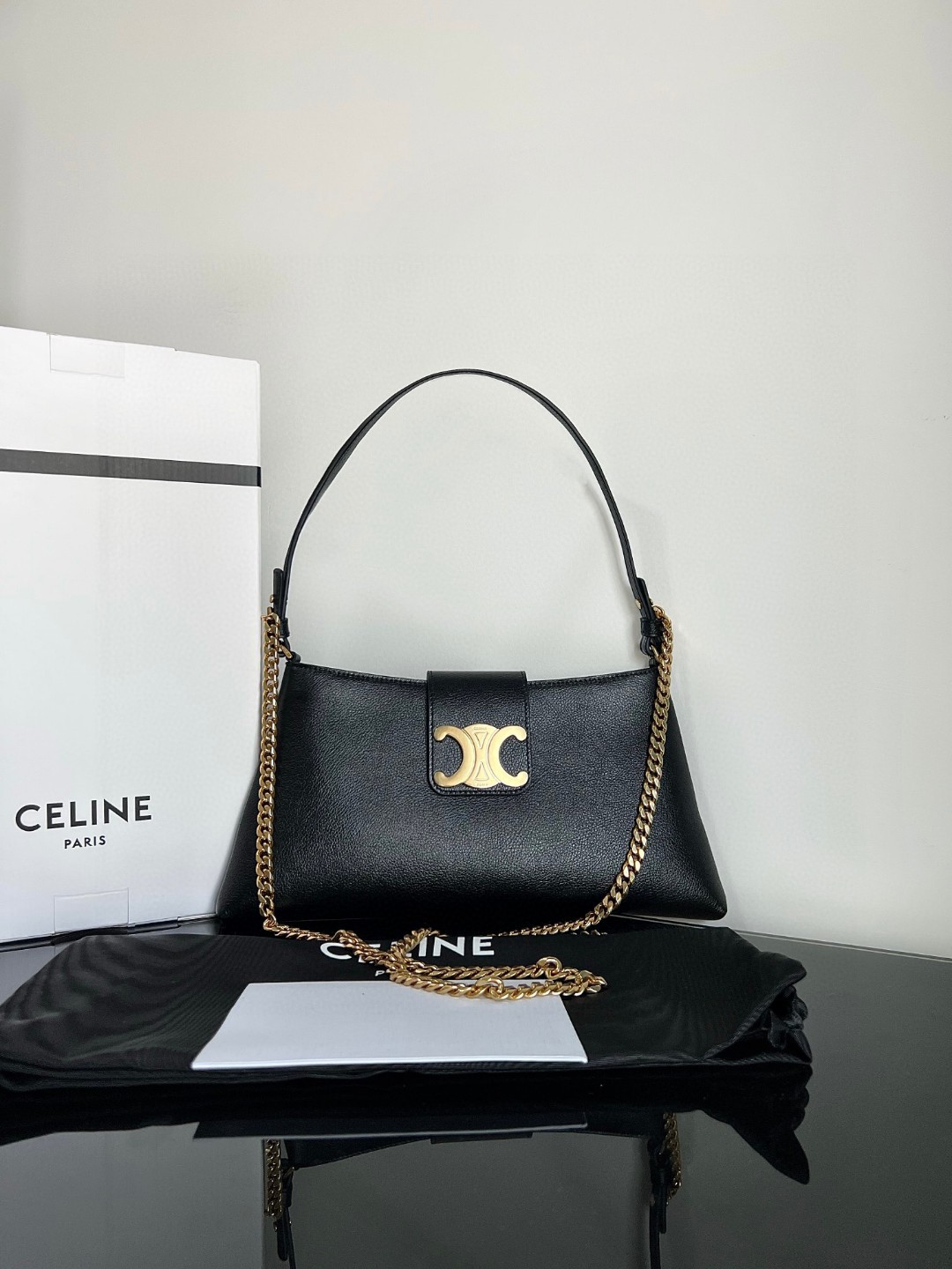CELINE WILTERN TRIOMPHE SOFT smooth calfskin handbag, original factory leather + full steel hardware, dimensions: 31 X 15 X 2cm, calfskin, lambskin lining, versatile bag: can be carried by hand, on the shoulder, crossbody, or as a clutch. Zipper closure, leather flap, equipped with TRIOMPHE magnetic clasp, 1 main compartment, detachable and adjustable leather shoulder strap 22cm~28cm + detachable chain length 45cm, new Triomphe double shoulder strap underarm