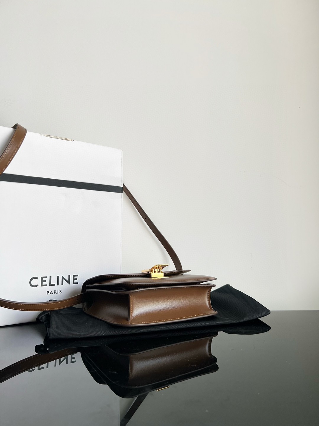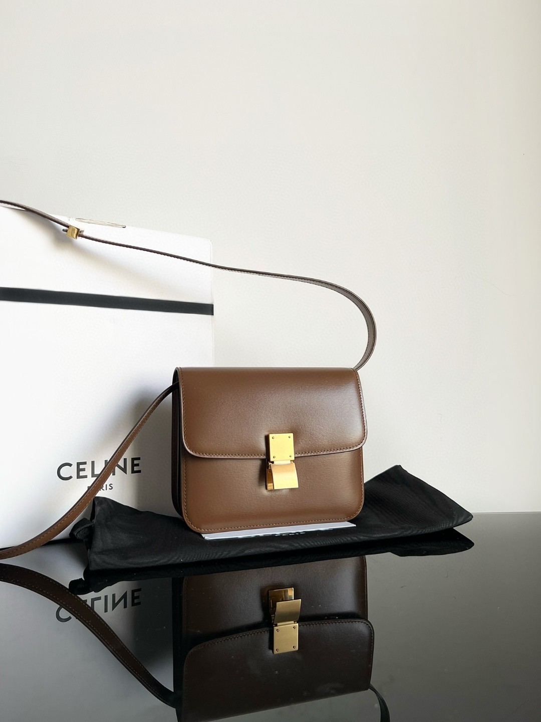 Small size CELINE Classic款CLASSIC BOX polished calfskin handbag hand-rubbed texture, [original genuine leather] [all steel hardware], teen size 18.5 X 14 X 6cm, exterior 100% imported cowhide, interior 100% lambskin lining, gold metal fittings, interior zippered pocket and double-layer flat pocket, detachable and adjustable leather shoulder strap, number: 192523