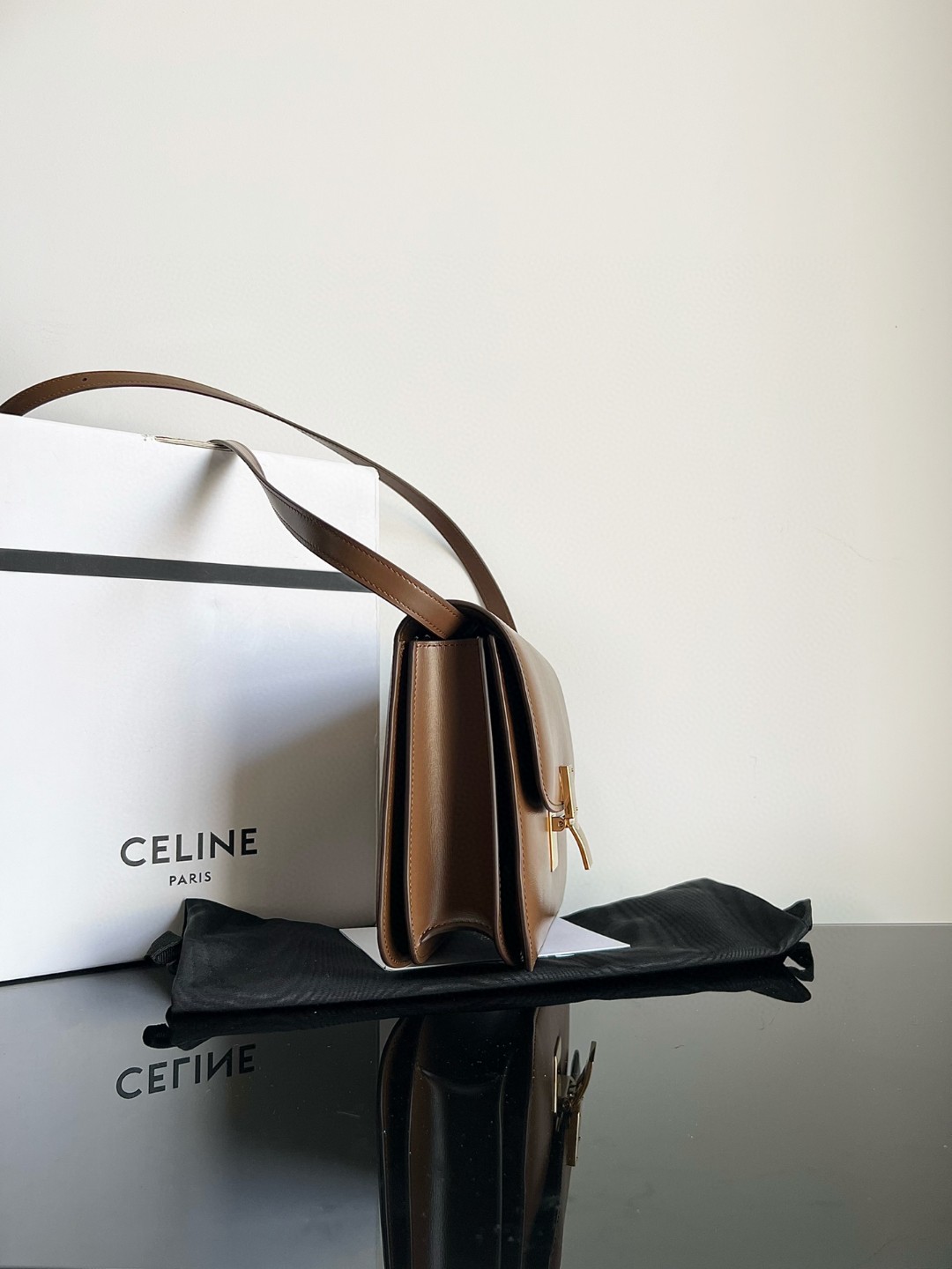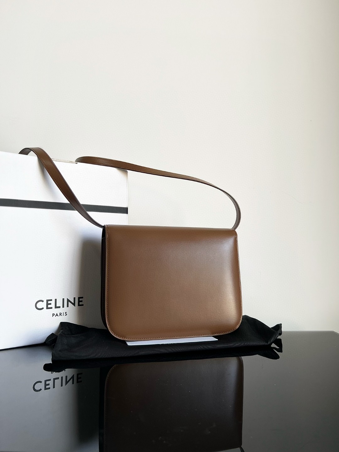 CELINE Classic CLASSIC BOX Polished Calfskin Handbag Hand-rubbed Grain, [Original Genuine Leather] [Full Steel Hardware], Dimensions 24 X 18 X 7cm, Exterior 100% Imported Cattlehide, Interior 100% Lambskin Lining, Golden Metal Parts, Inner Zippered Pocket and Double Layer Flat Pocket, Detachable and Adjustable Leather Strap, Number: 88007