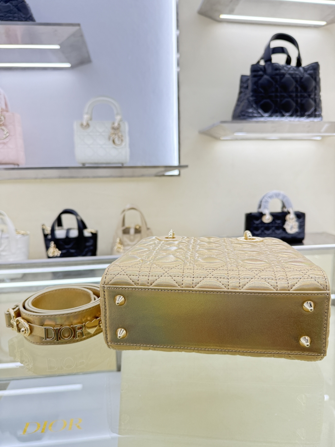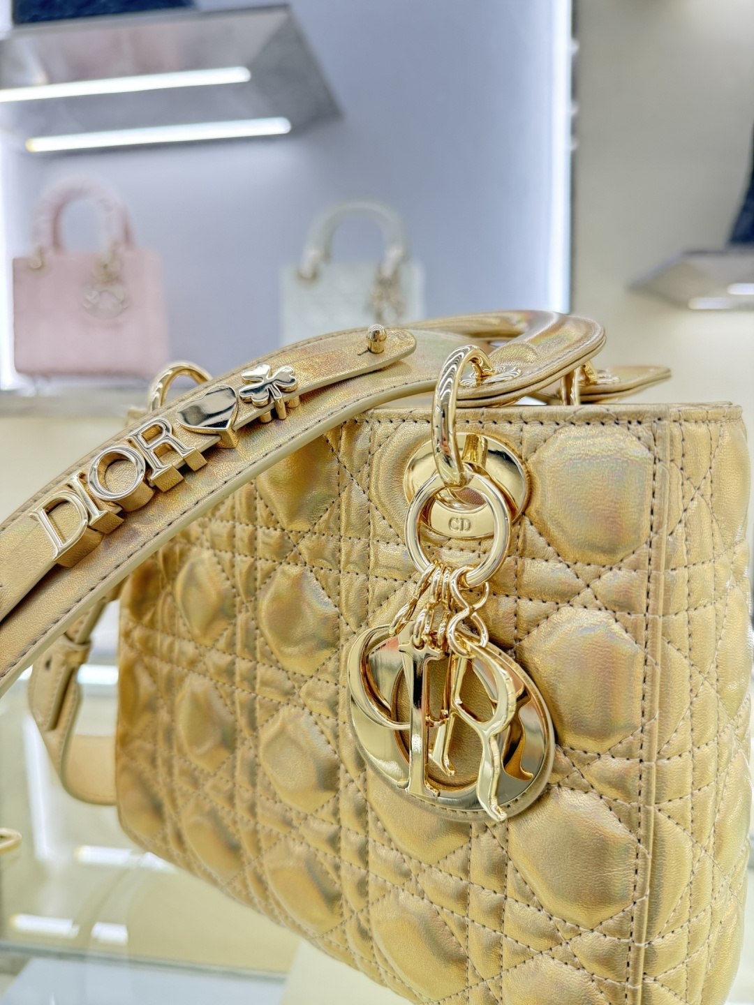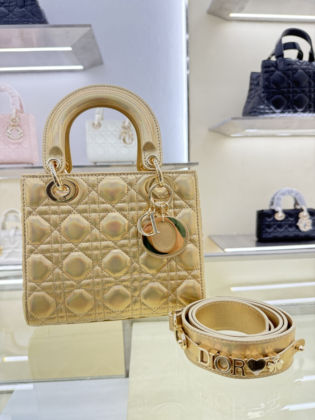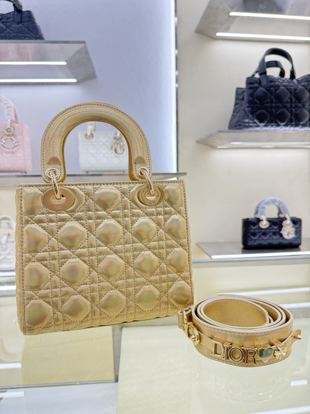 Four-Grid Badge A profound insight into elegance and beauty. Fashionable and soft, timeless yet modern. Carefully crafted from lambskin and cowhide leather, covered with iconic cannage stitching, highlighting exquisite sewing craftsmanship. Adorned with a tonal iconic "D.I.O.R." charm, adding a touch of dynamism to the classic silhouette. Tonal symbolic badges can be added to the shoulder strap to embellish daily or evening looks, highlighting distinct personality.