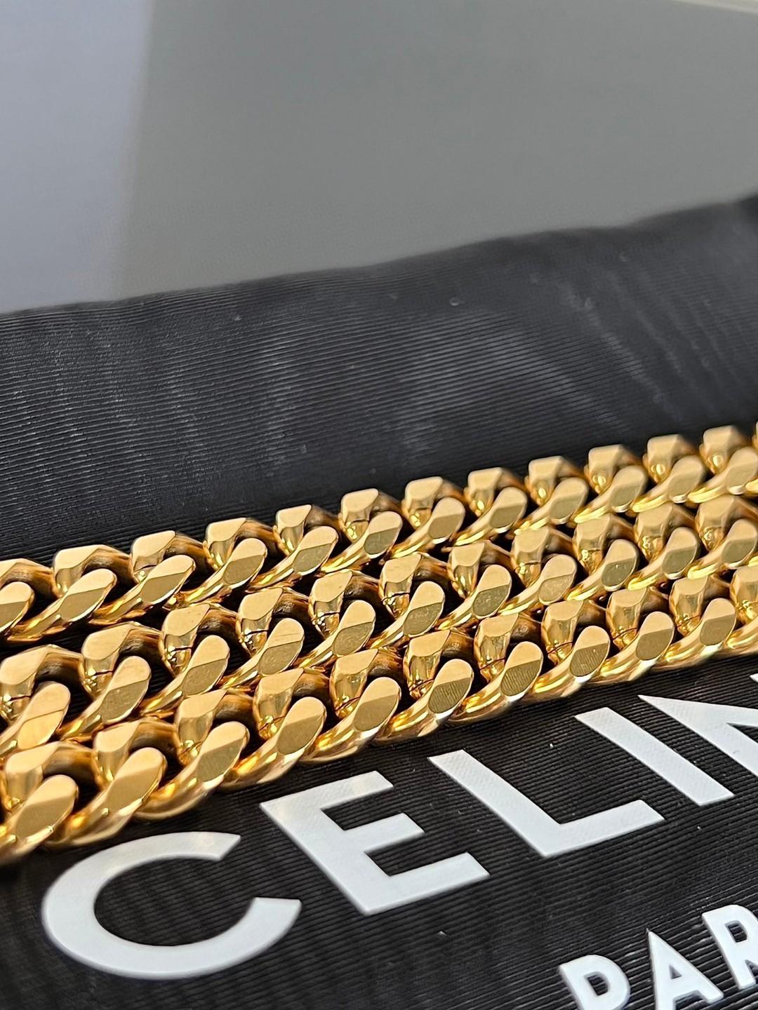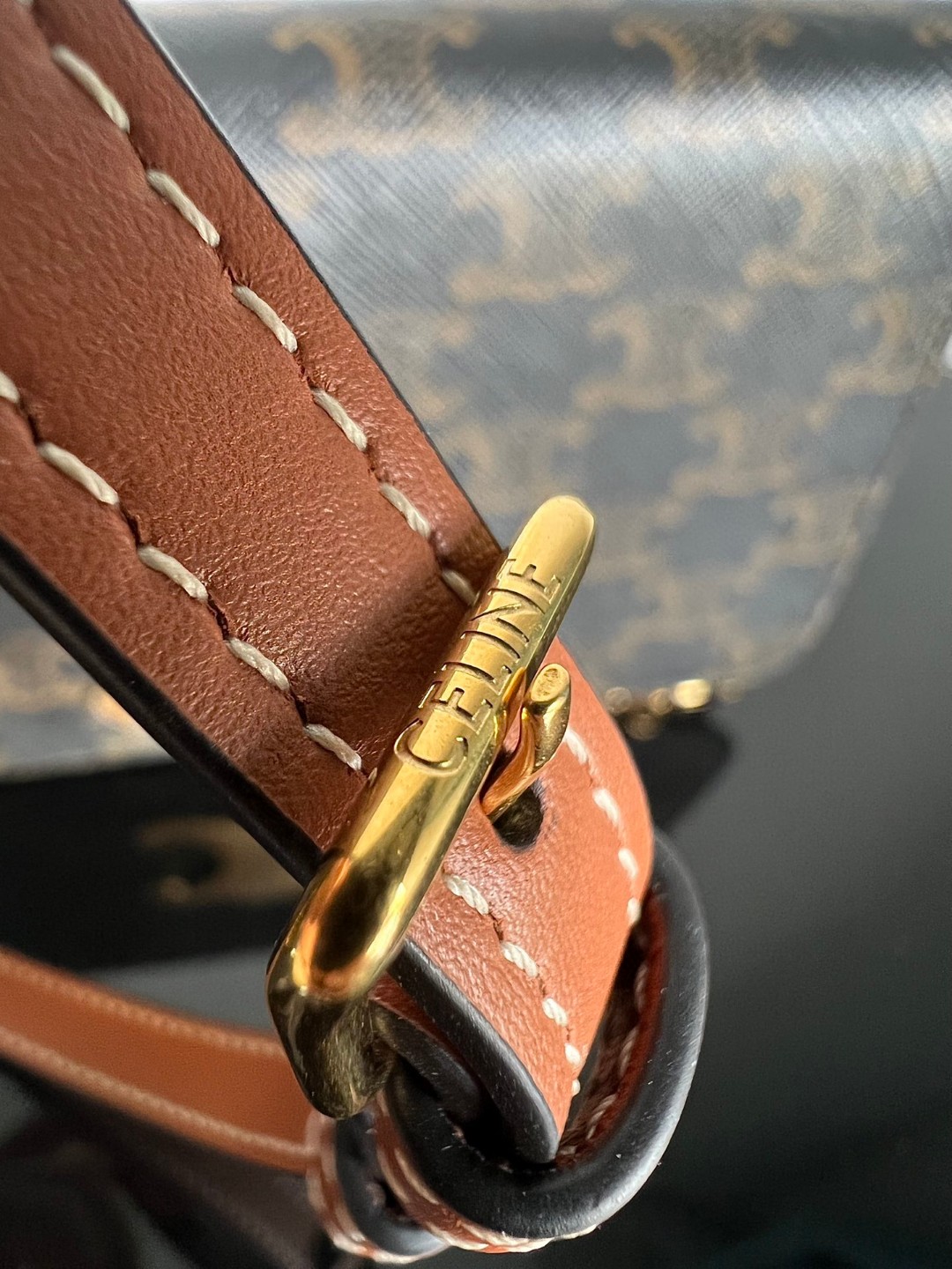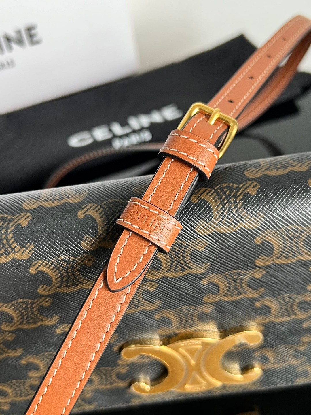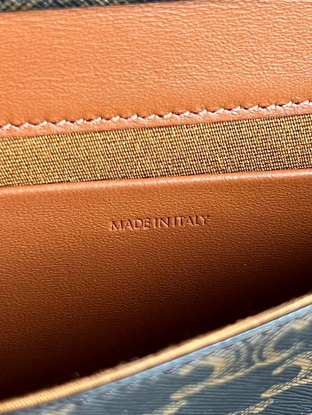CELINE New Arch of Triumph Print Double Strap Chain WOC [Top Grade Full Steel Hardware, Original Factory Leather] MULTIPOCHETTE Signature Printed Calfskin Mini Handbag, Dimensions 20.5 x 11 x 4cm Mini Handbag, This model can accommodate larger smartphone models like PLUS, TRIOMPHE CANVAS signature print, Fabric material and calfskin lining, Can be carried by hand, shoulder, or cross-body, Flap with decorative TRIOMPHE clasp, Snap closure, 1 main compartment, 1 flat pocket, 2 removable shoulder straps