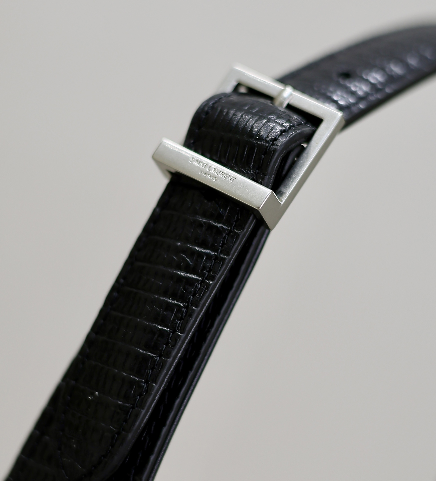 Black Lizard Pattern Silver Buckle