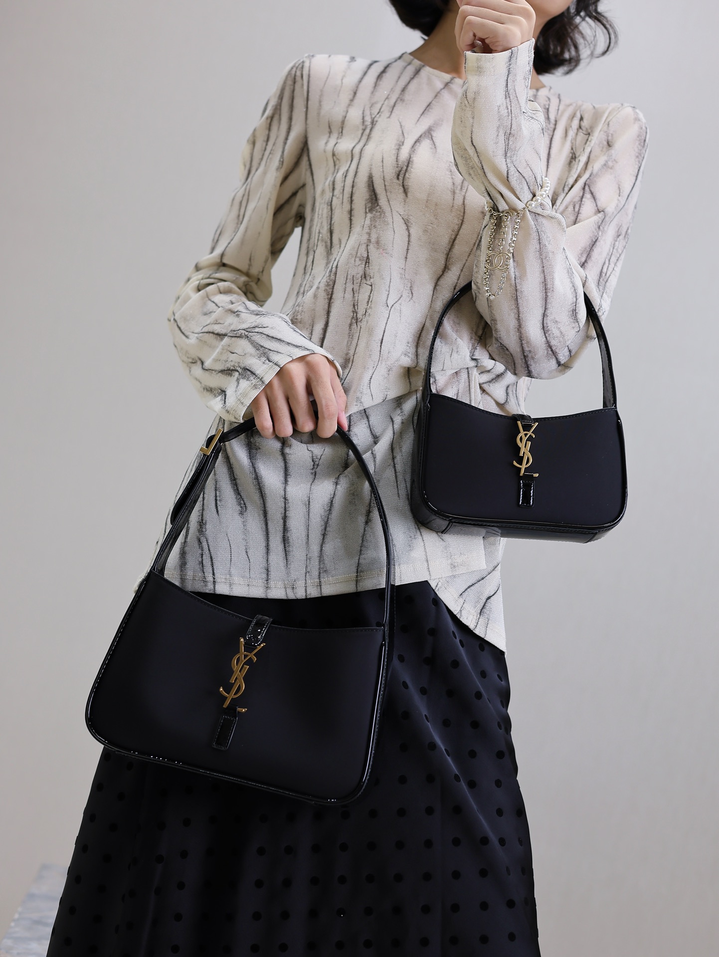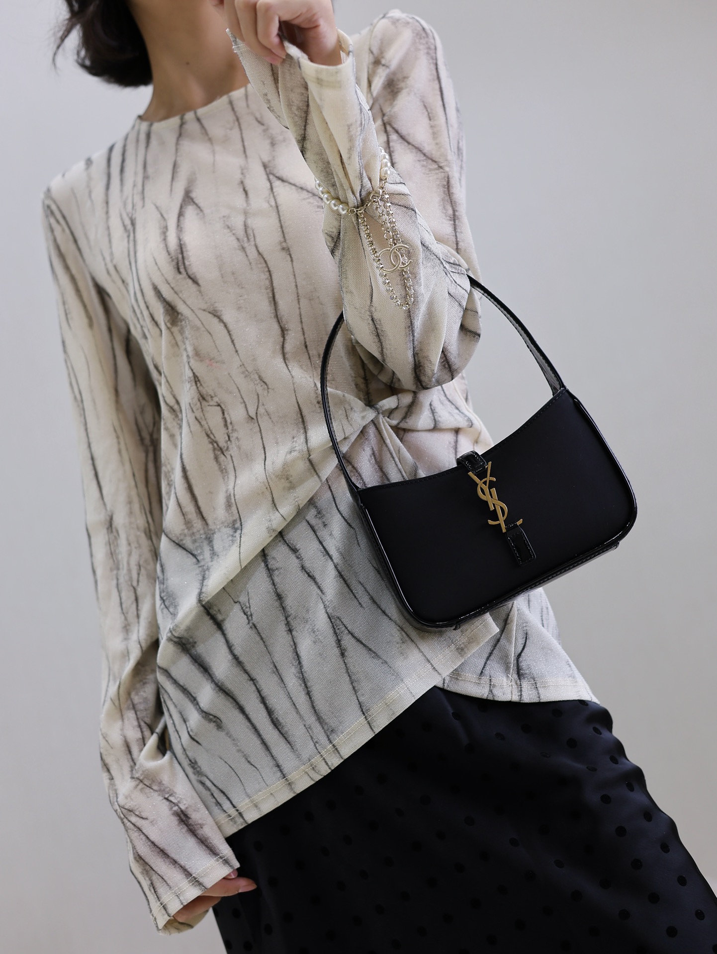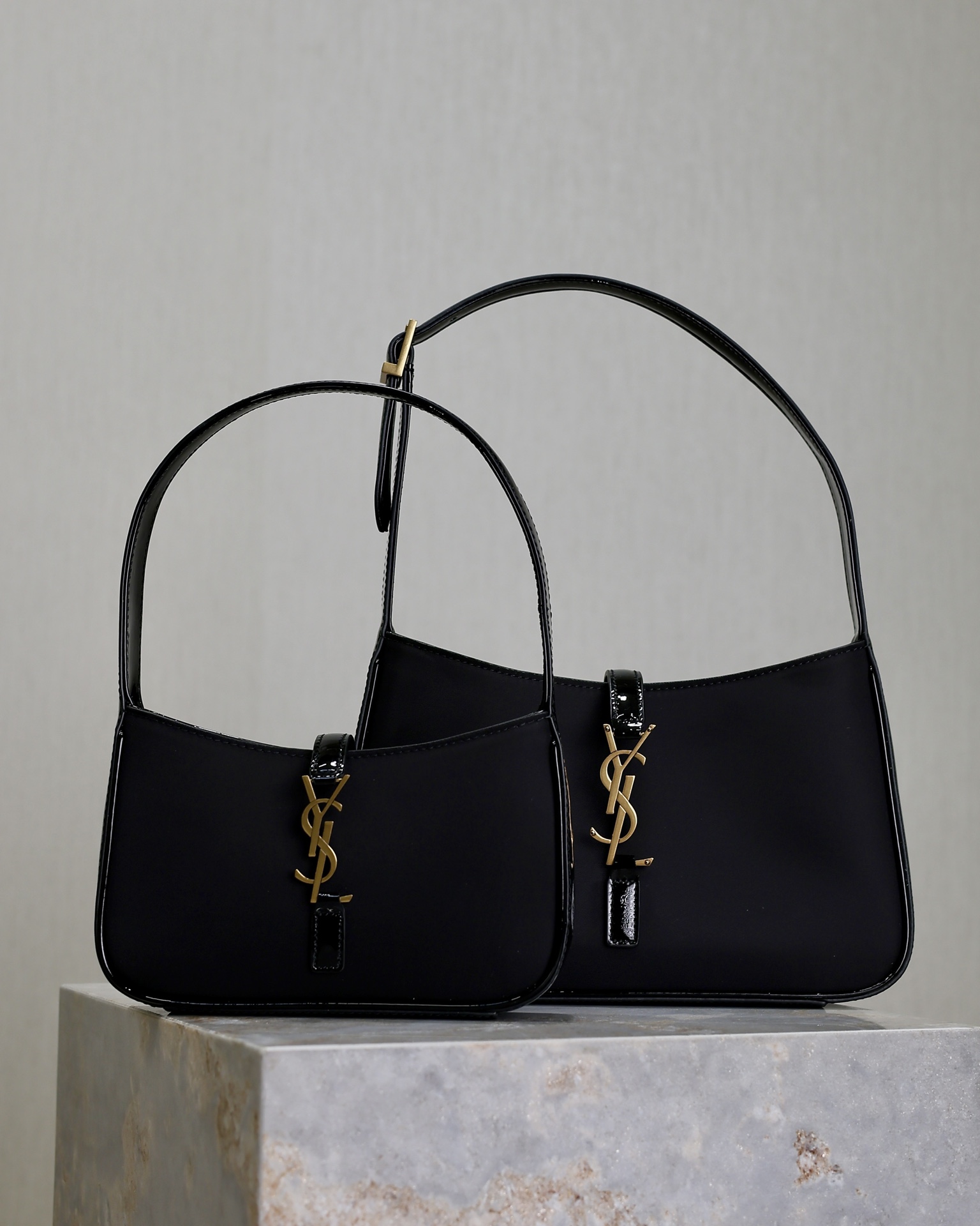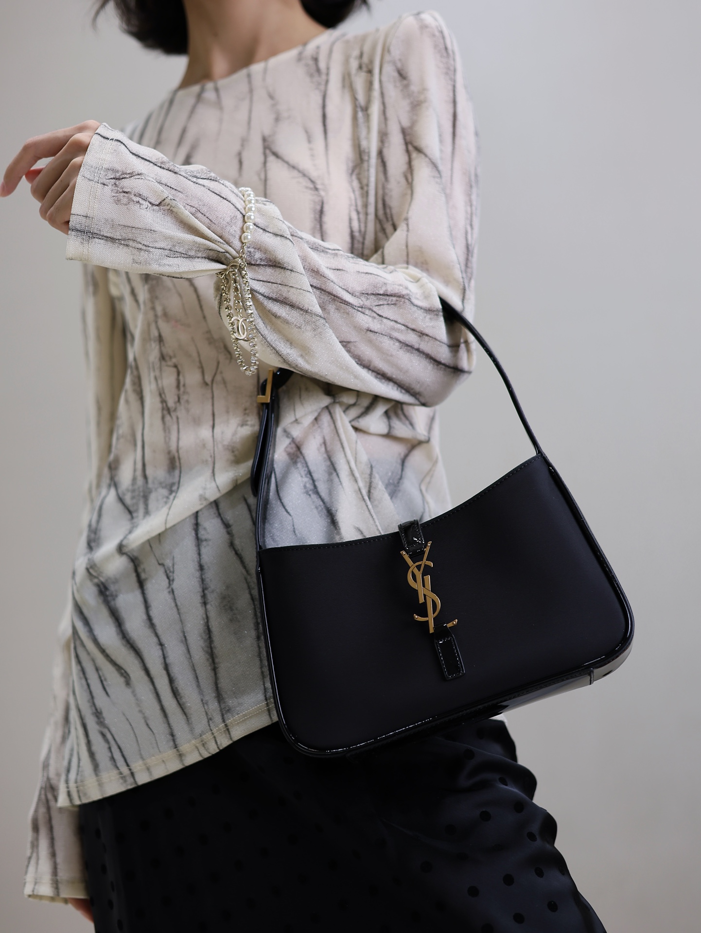 Black ox tendon satin with patent leather