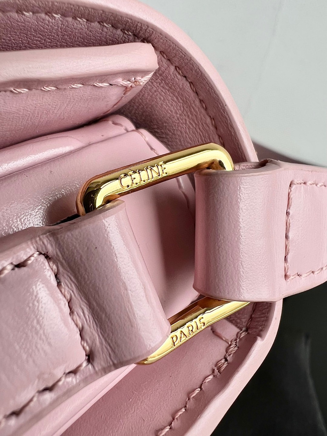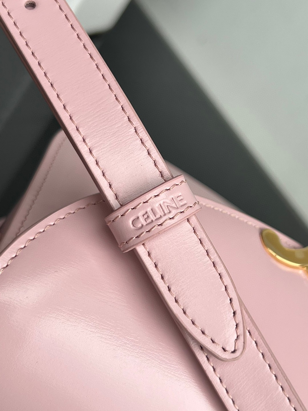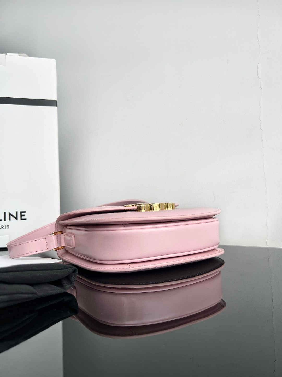 CELINE TEEN BESACE TRIOMPHE glossy calfskin handbag, Triumph saddle bag, original leather + full steel hardware, dimensions: 18.5 X 16 X 6cm, exterior original calfskin, original lambskin lining, can be worn crossbody or on the shoulder, metal TRIOMPHE logo closure, 3 interior compartments, 1 interior zippered pocket, 1 interior flat pocket, adjustable long shoulder strap